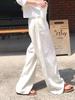 Pantalones de lino de algodón blanco para mujer verano delgados estilo japonés holgados casuales rectos tipo mopa pantalones de lino de pierna ancha