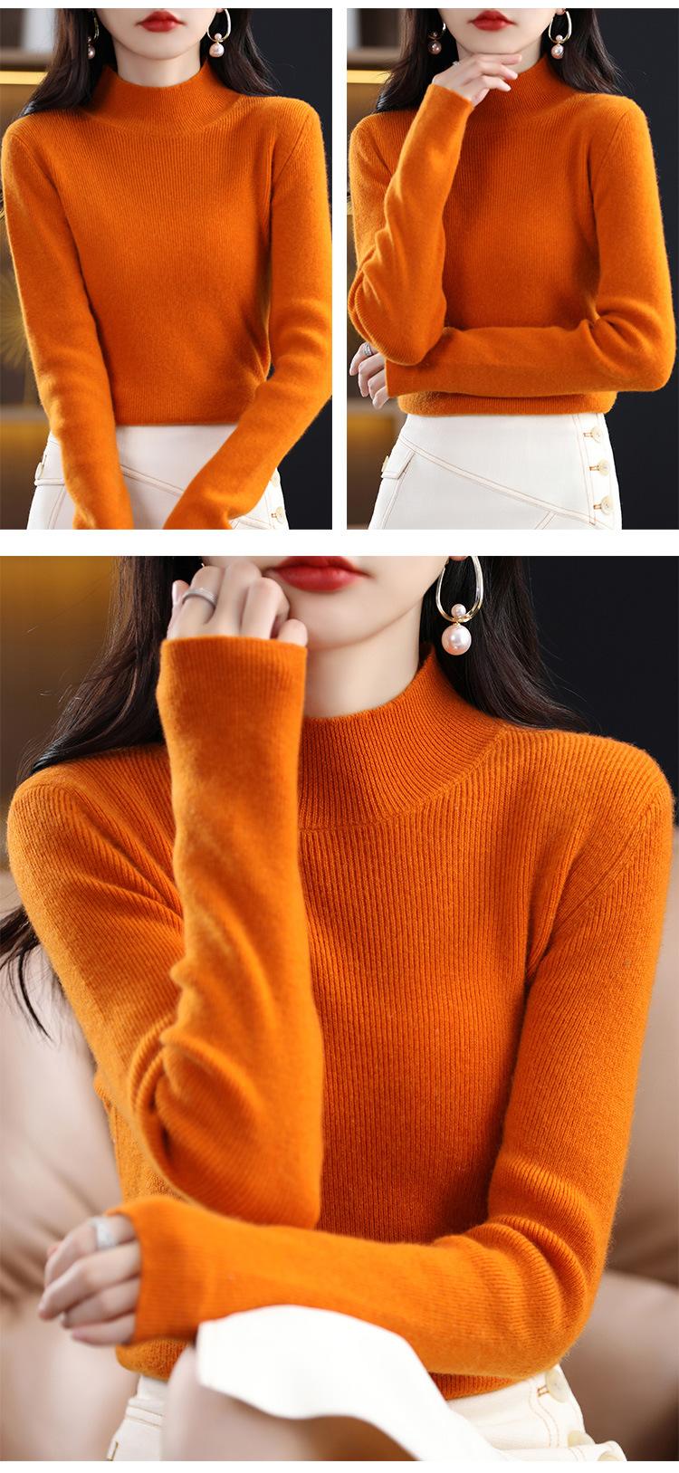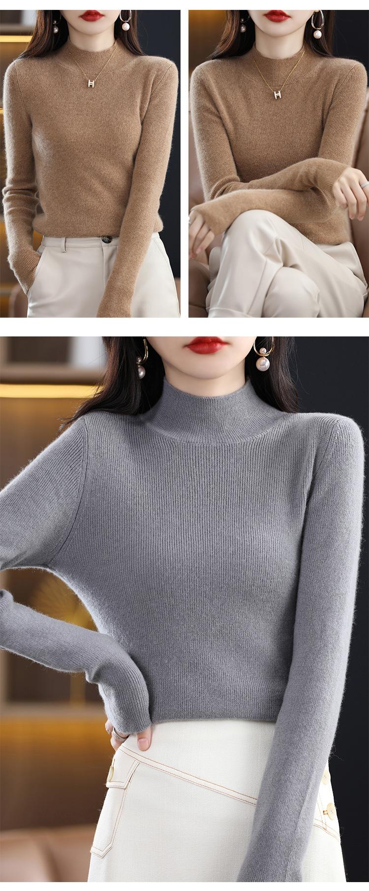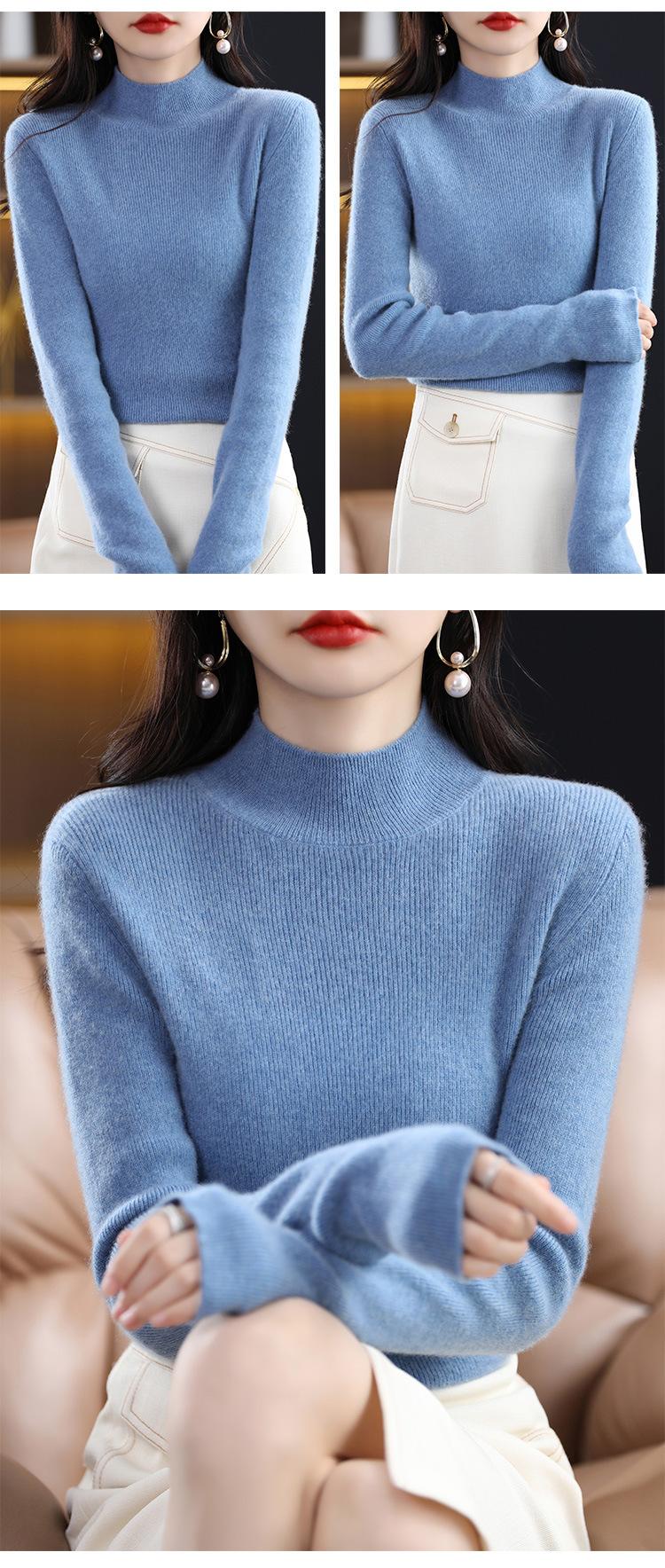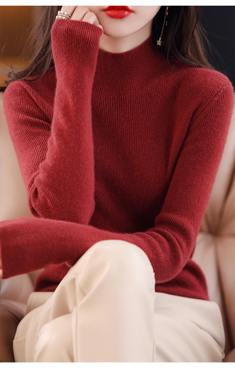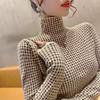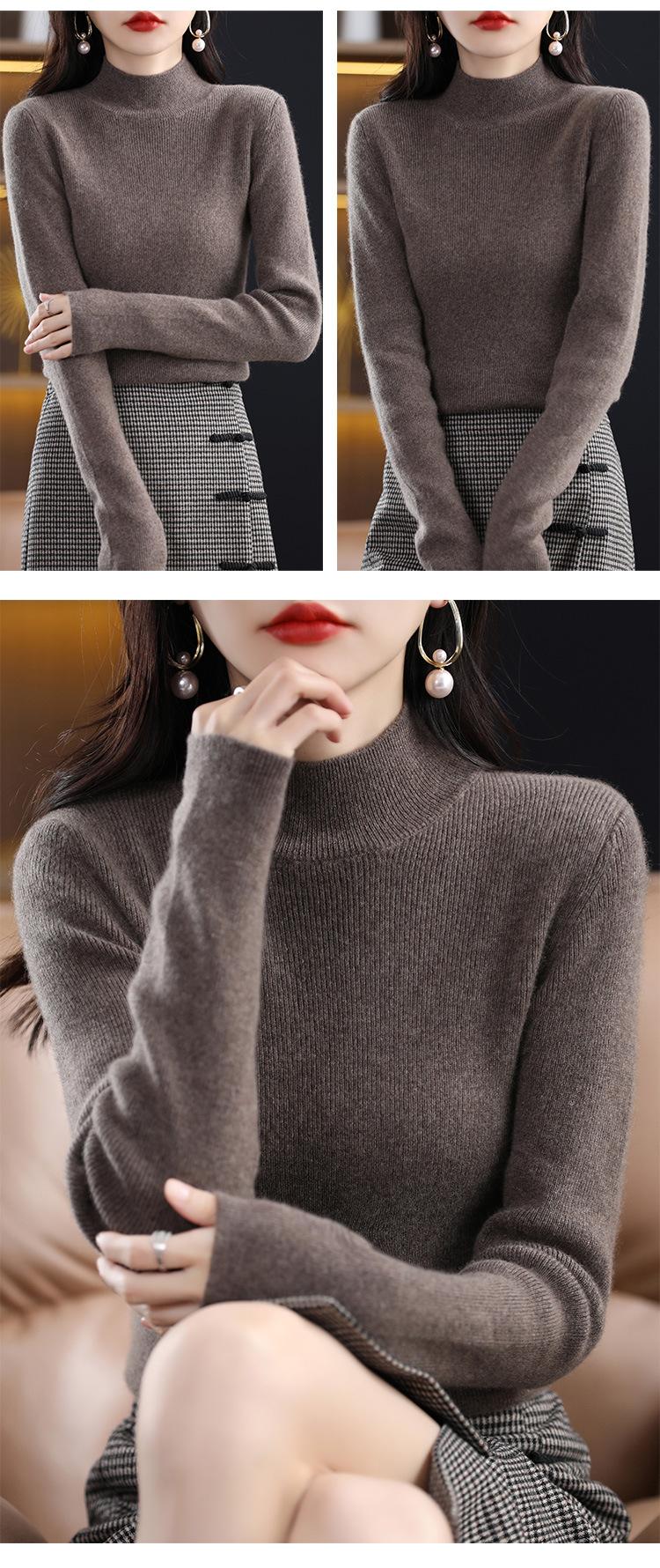 Otoño e Invierno Nuevo Estilo Cuello Alto Tejido de Punto Suéter Delgado para Mujer Color Puro Aspecto Adelgazante Camiseta Básica Mangas Largas con Tejido de Punto Ajustado