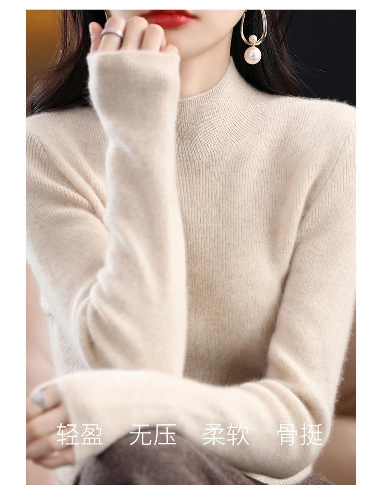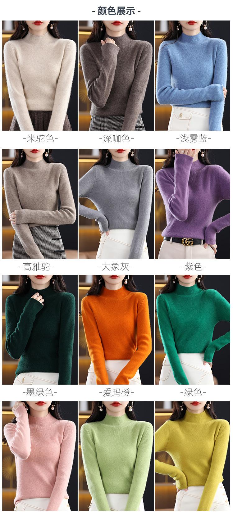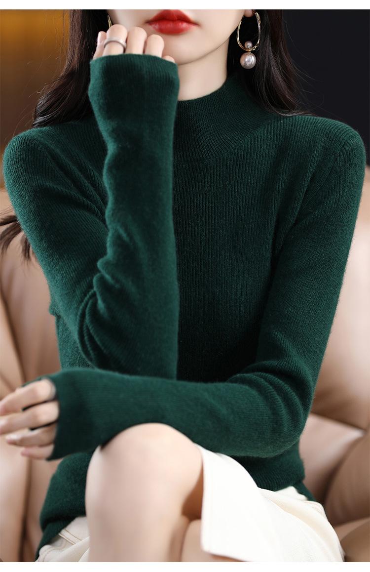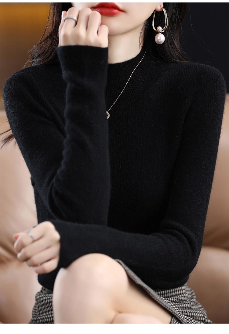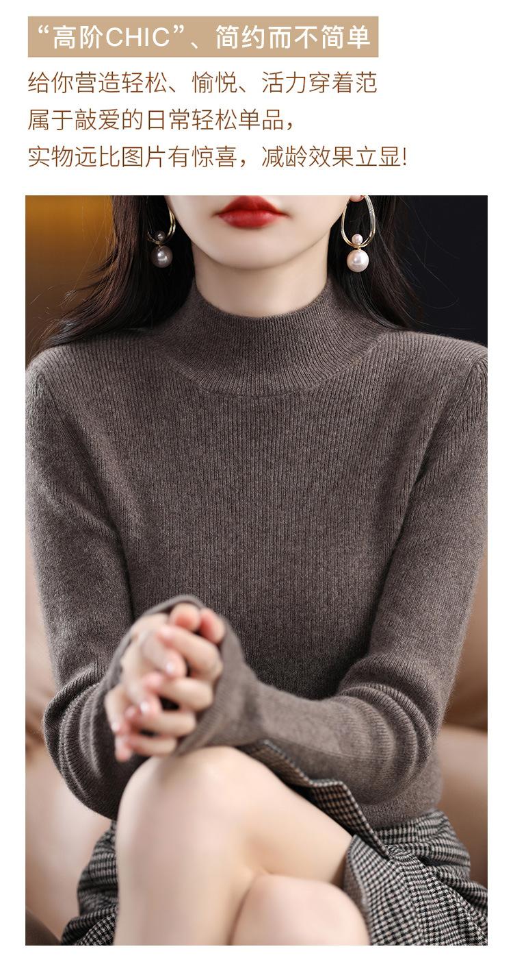 Otoño e Invierno Nuevo Estilo Cuello Alto Tejido de Punto Suéter Delgado para Mujer Color Puro Aspecto Adelgazante Camiseta Básica Mangas Largas con Tejido de Punto Ajustado