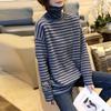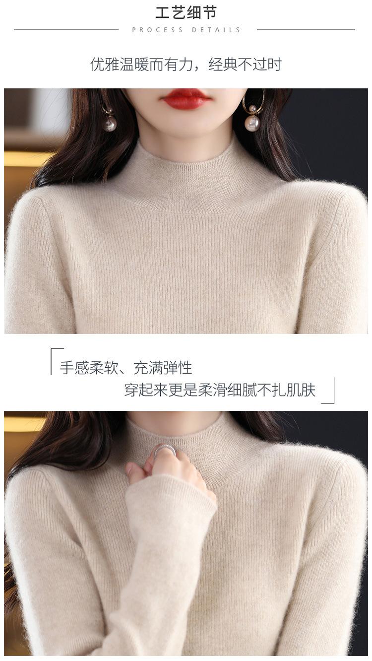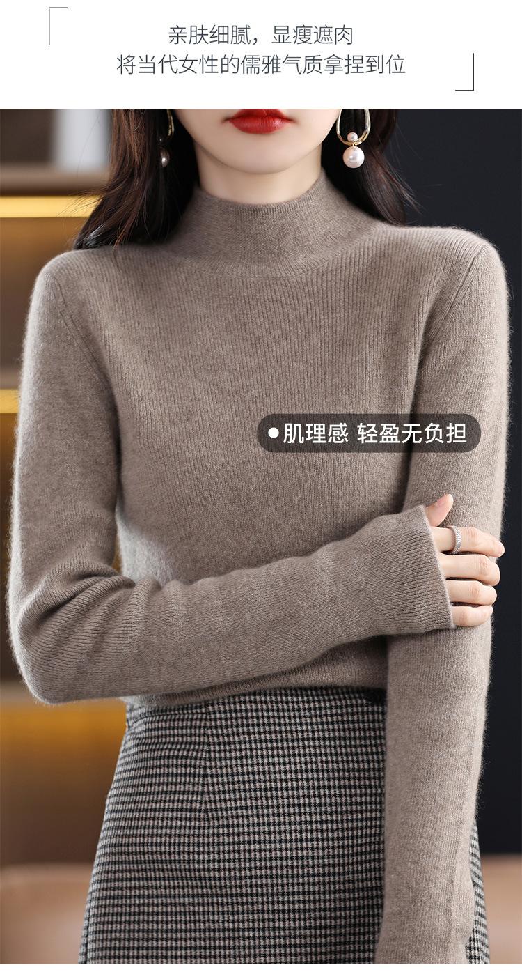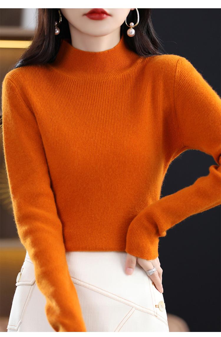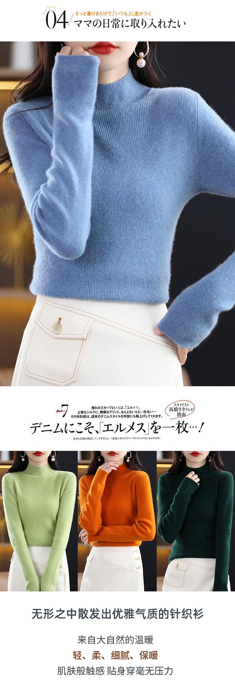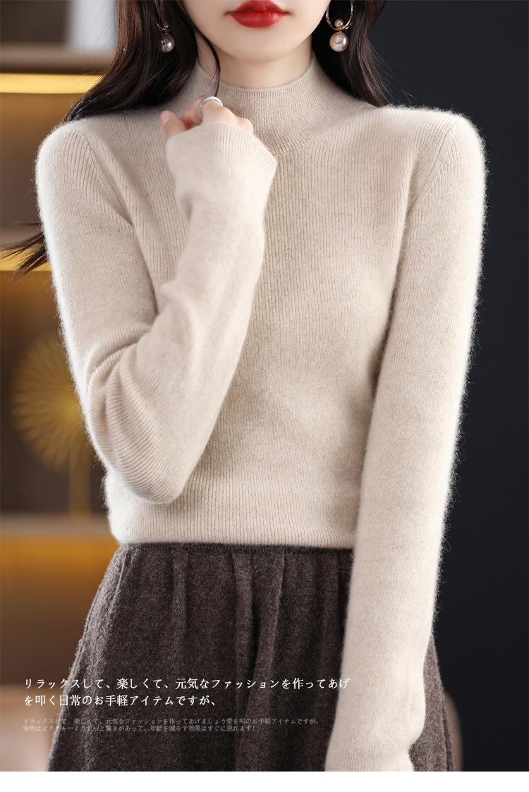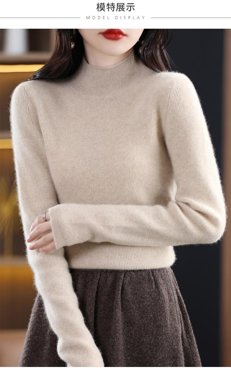 Otoño e Invierno Nuevo Estilo Cuello Alto Tejido de Punto Suéter Delgado para Mujer Color Puro Aspecto Adelgazante Camiseta Básica Mangas Largas con Tejido de Punto Ajustado