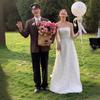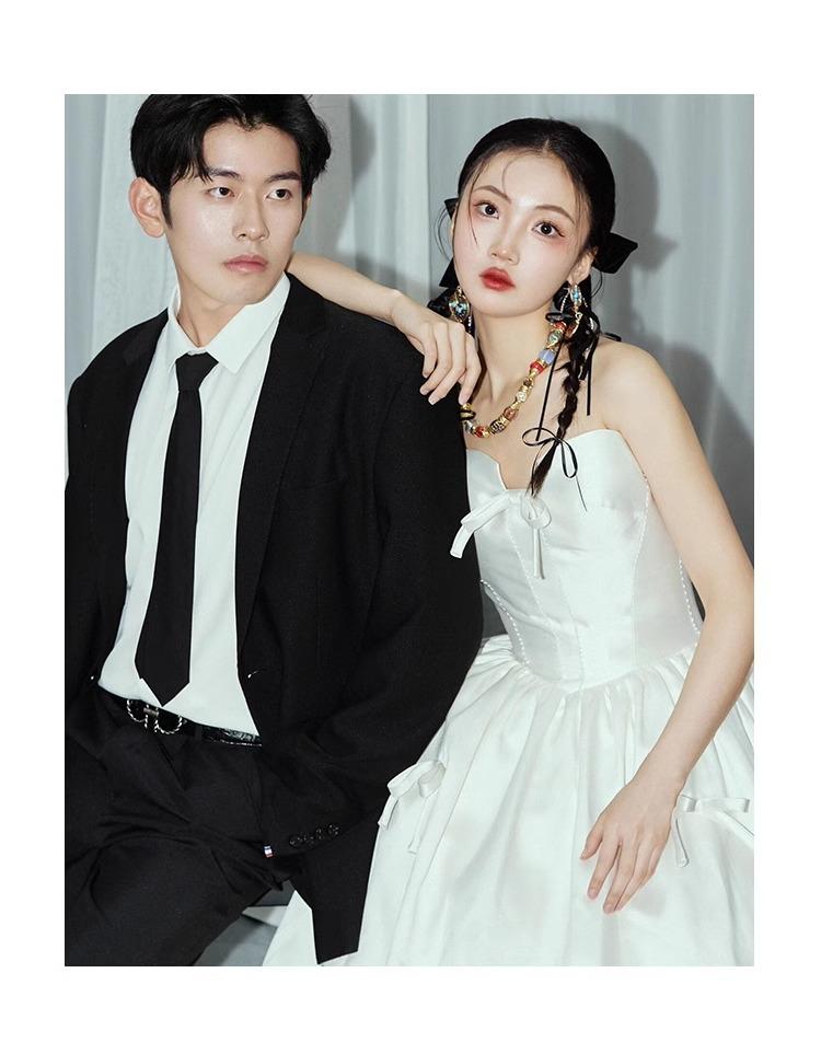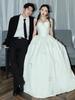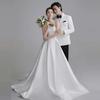 Vestido de Novia Ligero Francés de Tubo 2025 Nueva Novia Sencillo Largo hasta el Piso Satén Salida Gasa Blanco Nicho Vestido de Compromiso