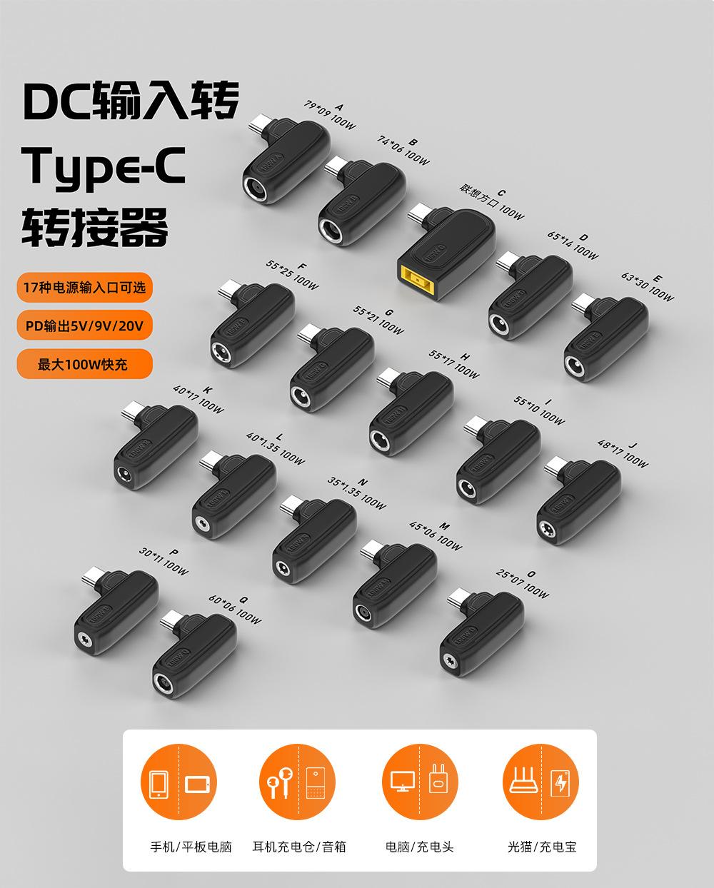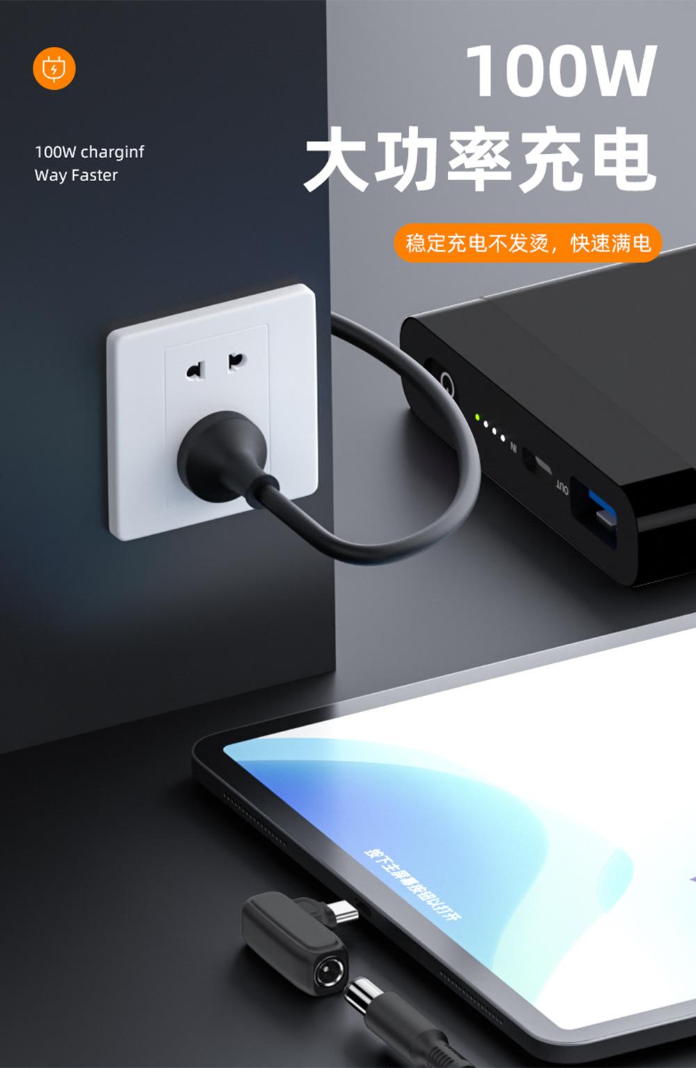 Adaptador hembra de CC a macho TIPO C de 100 W, conversión de adaptador para portátil de carga rápida, salida TIPO C de carga