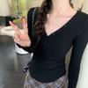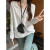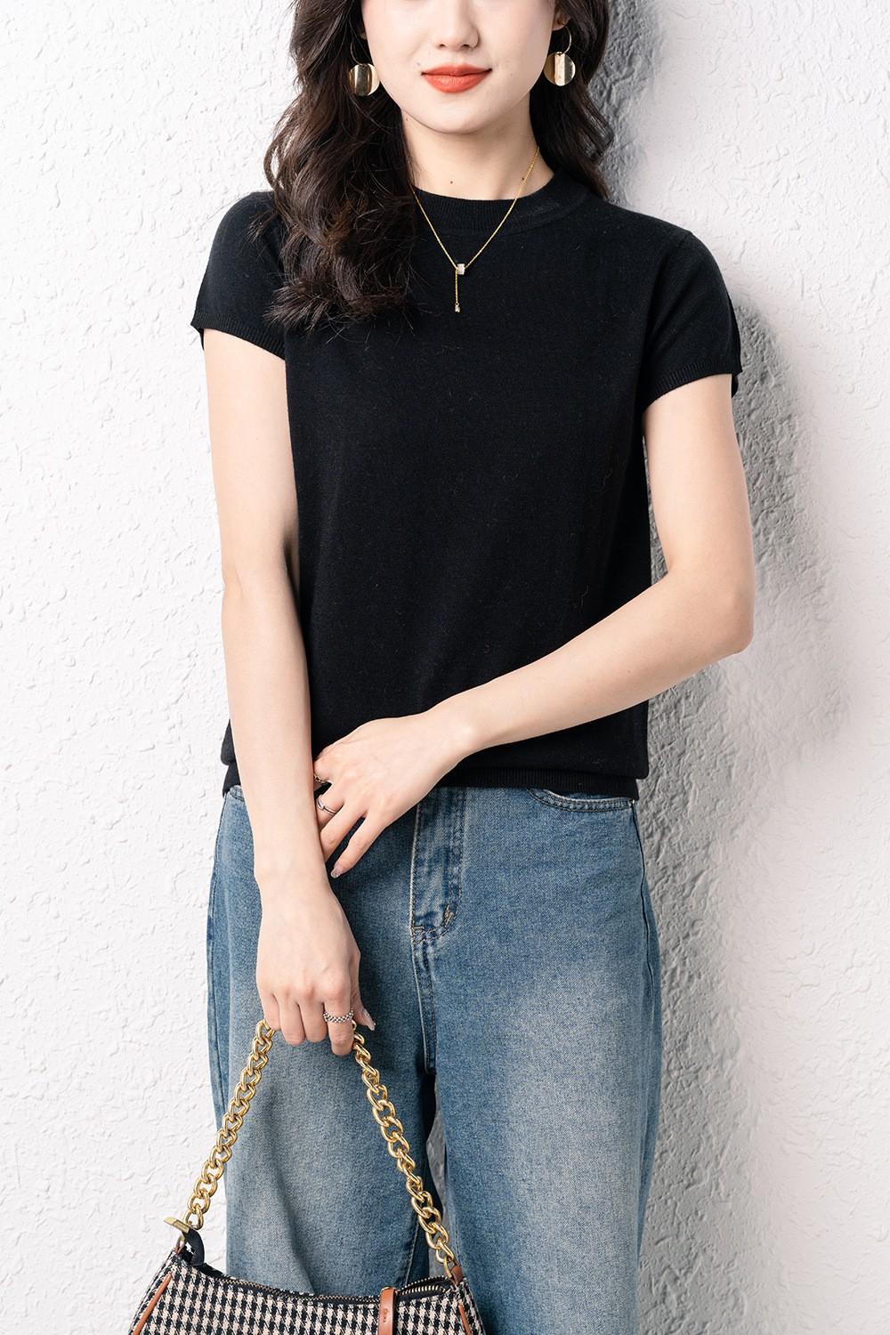 2024 nueva camiseta popular de verano de color sólido para mujer, holgada para combinar con todo, interior casual, cuello medio abierto para mujer