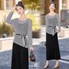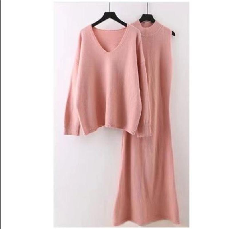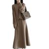 Vestido de Diseño Inspirado Cuello en V Manga Larga Tejido de Punto Conjunto de Suéter Otoño 2025 Nueva Moda Comercio Exterior Conjunto de Vestido de Dos Piezas