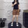 Black Top, brown Shorts, Black Top brown Shorts