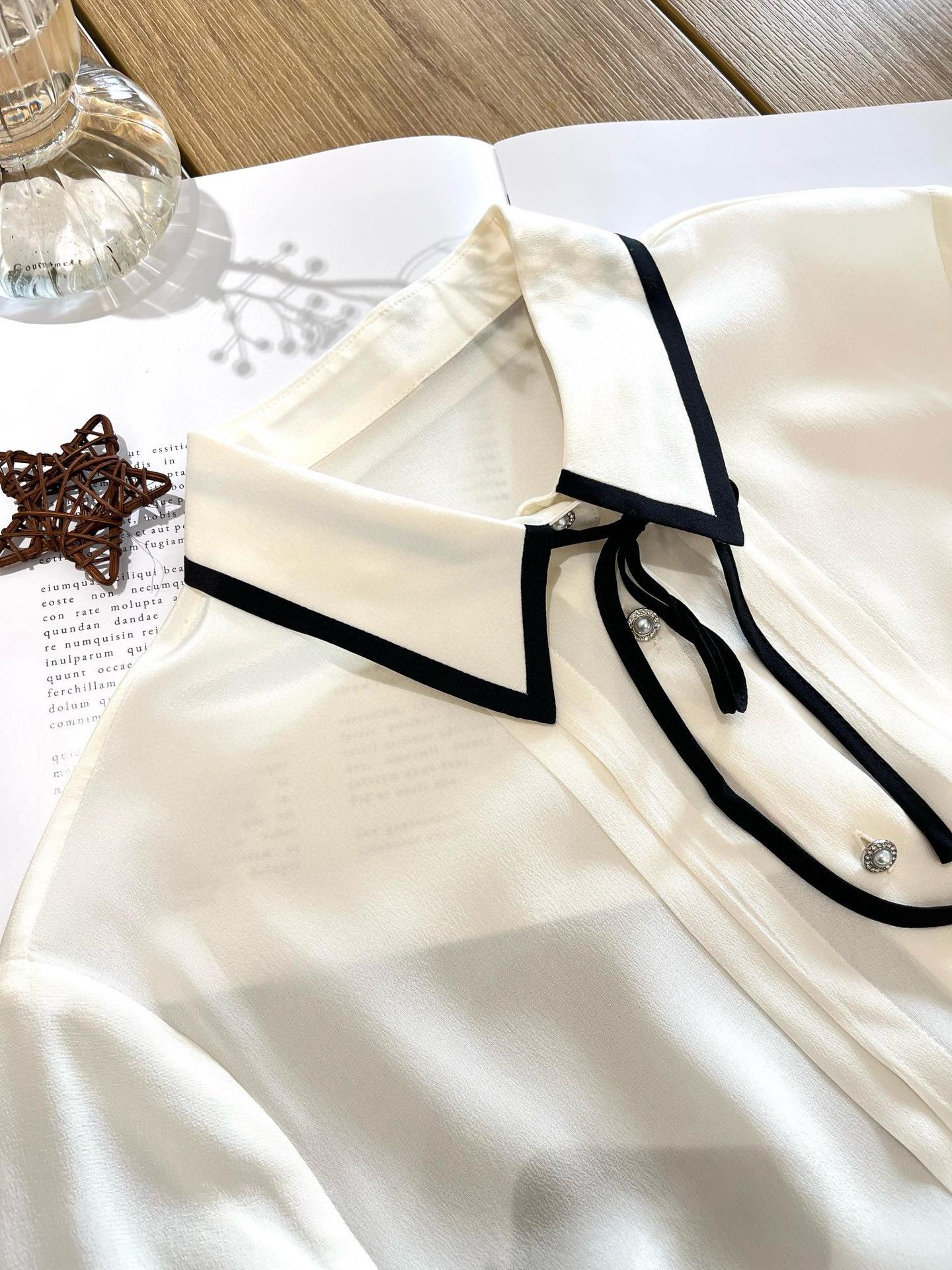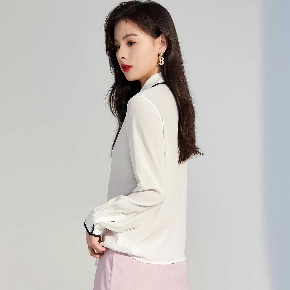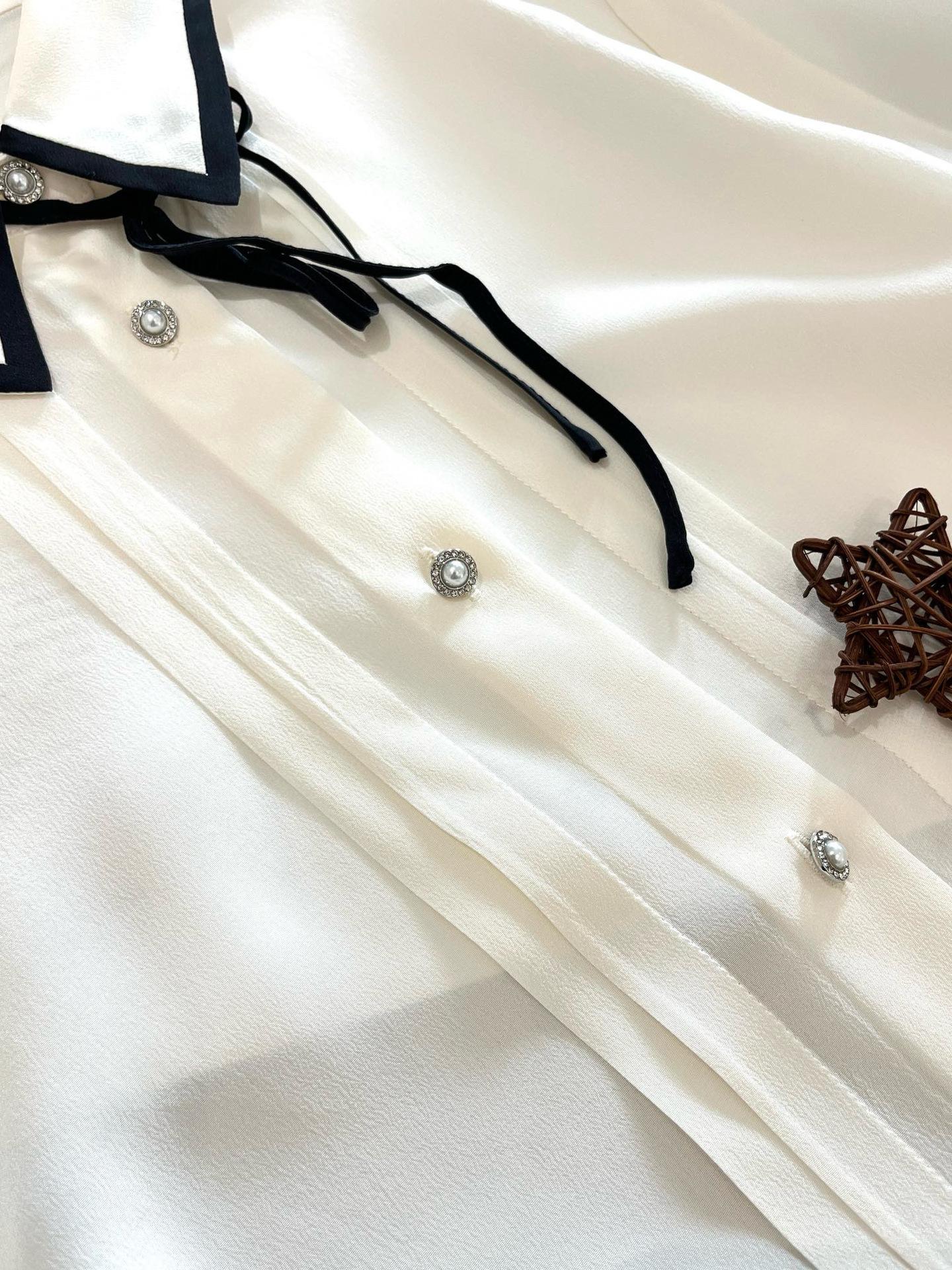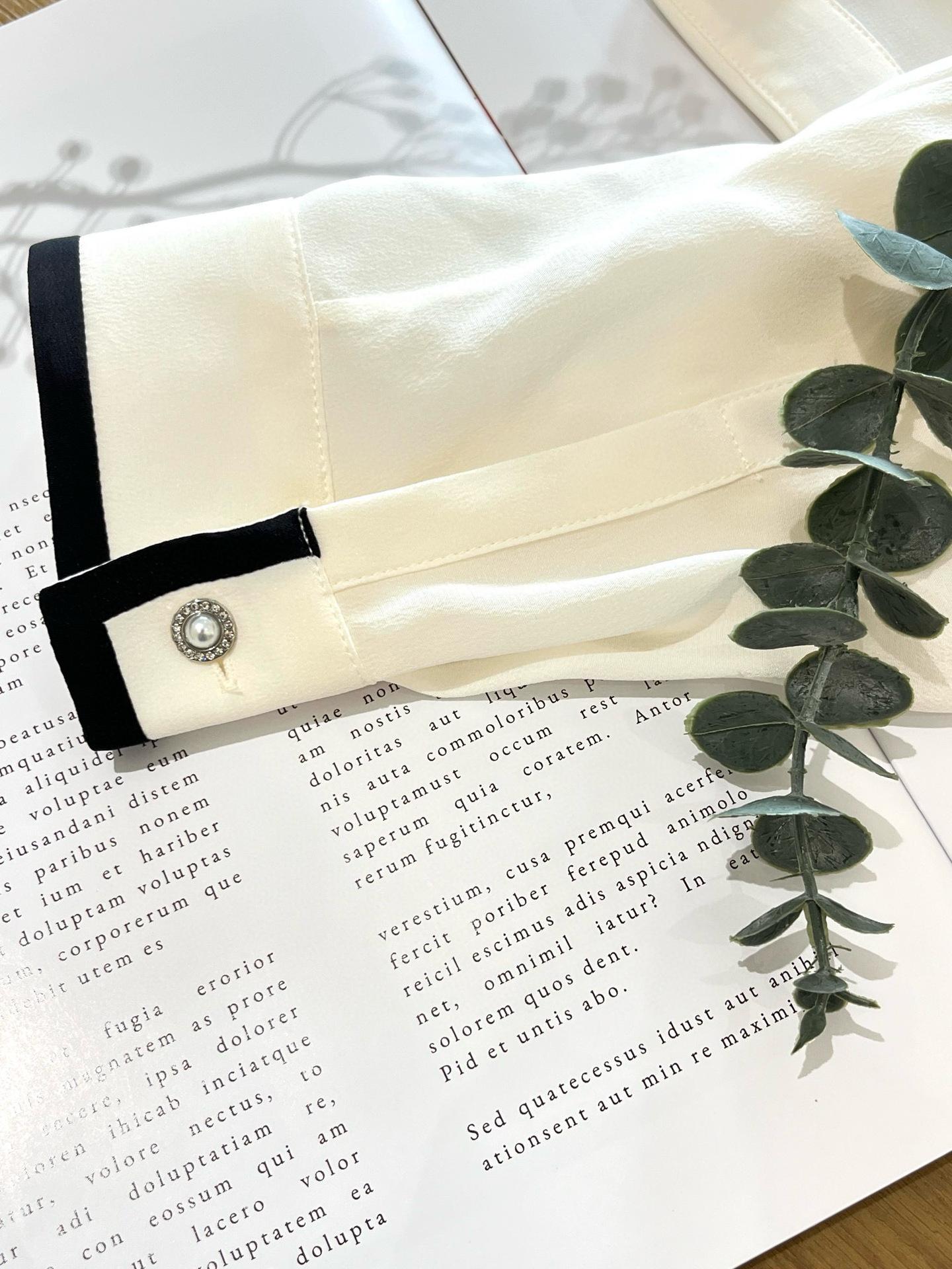 Camisa de seda para mujer, primavera/verano 2025, elegante, con encaje de mariposa, manga larga, 18 mm, crepé de China, 100% seda morera.