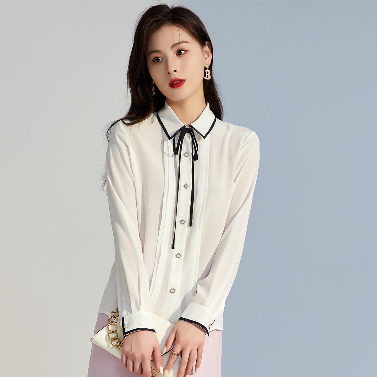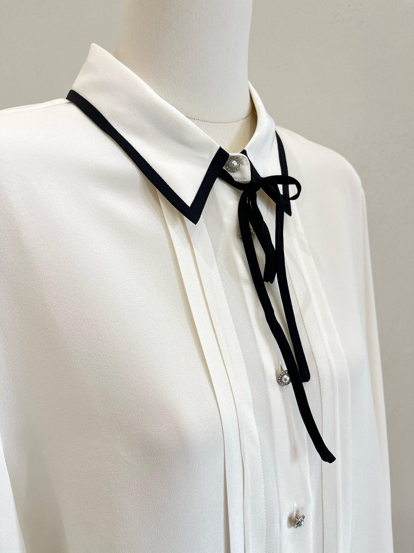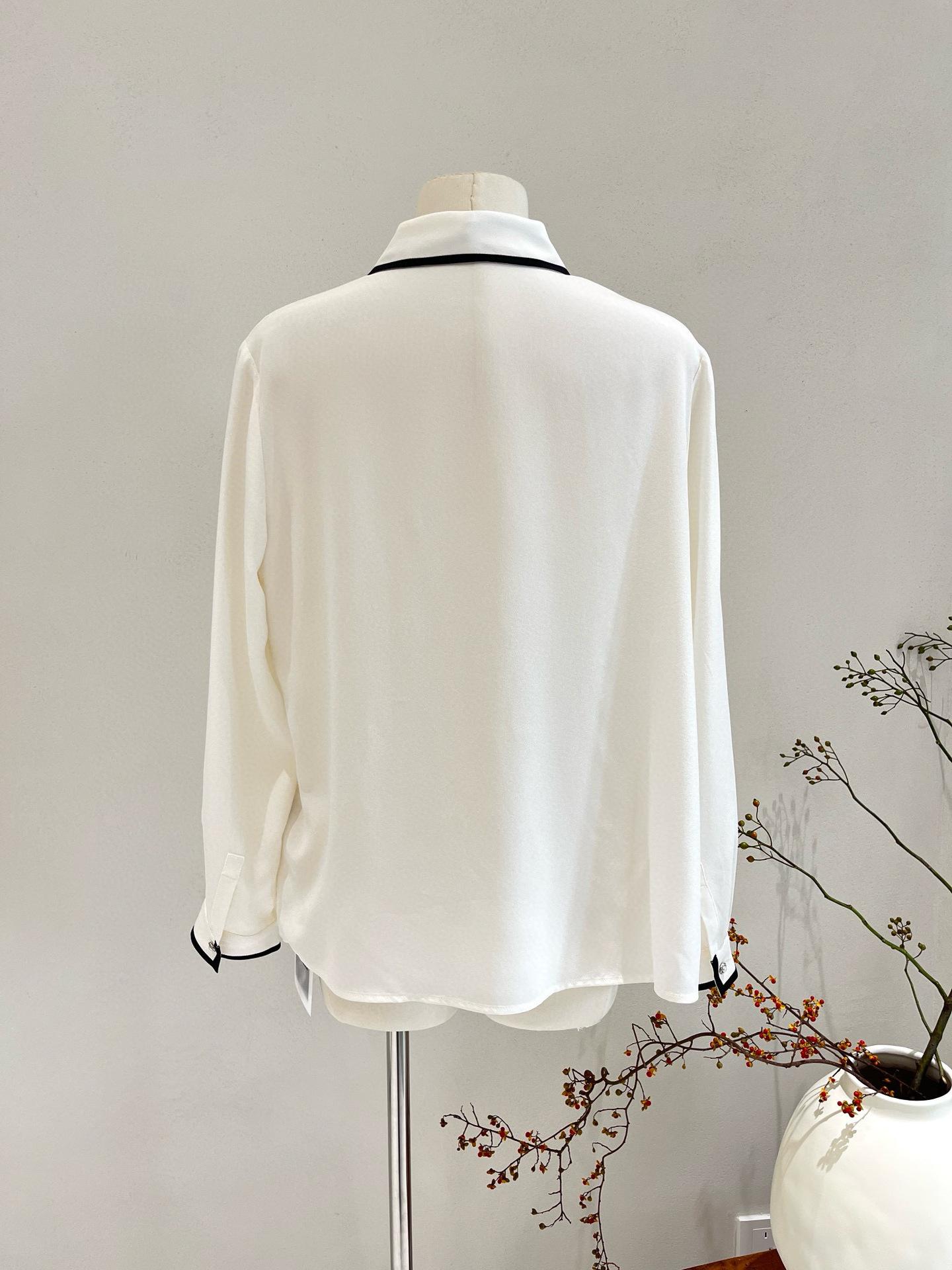 Camisa de seda para mujer, primavera/verano 2025, elegante, con encaje de mariposa, manga larga, 18 mm, crepé de China, 100% seda morera.