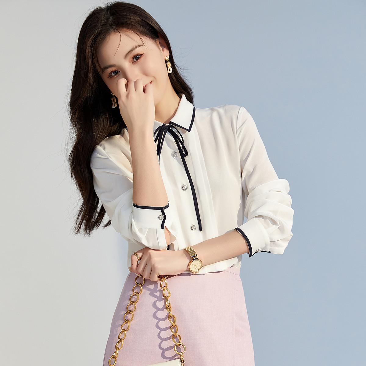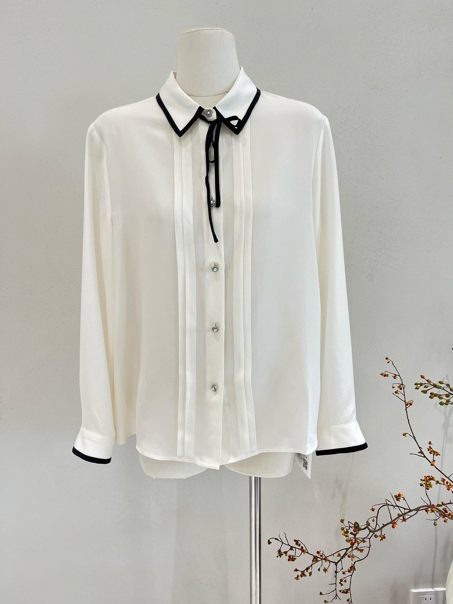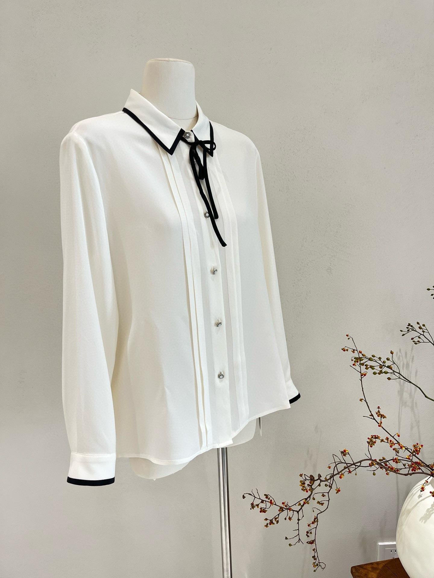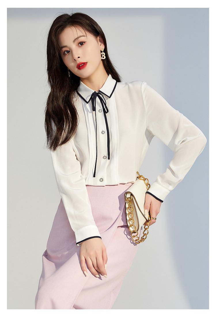 Camisa de seda para mujer, primavera/verano 2025, elegante, con encaje de mariposa, manga larga, 18 mm, crepé de China, 100% seda morera.