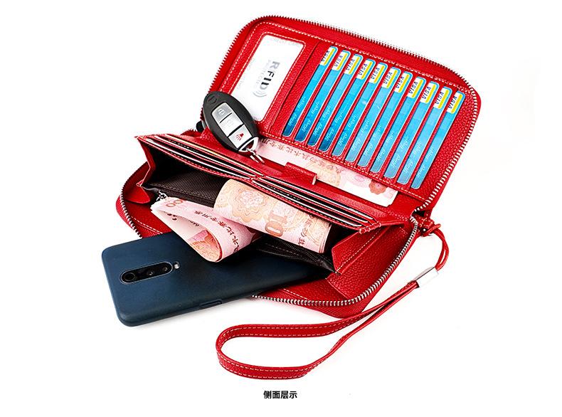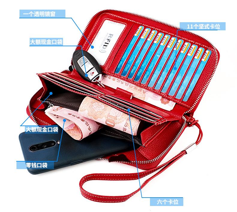 Amazon nueva bolsa con cremallera RFID multi-tarjeta multifunción clutch de cuero para mujer bolsa para teléfono monedero