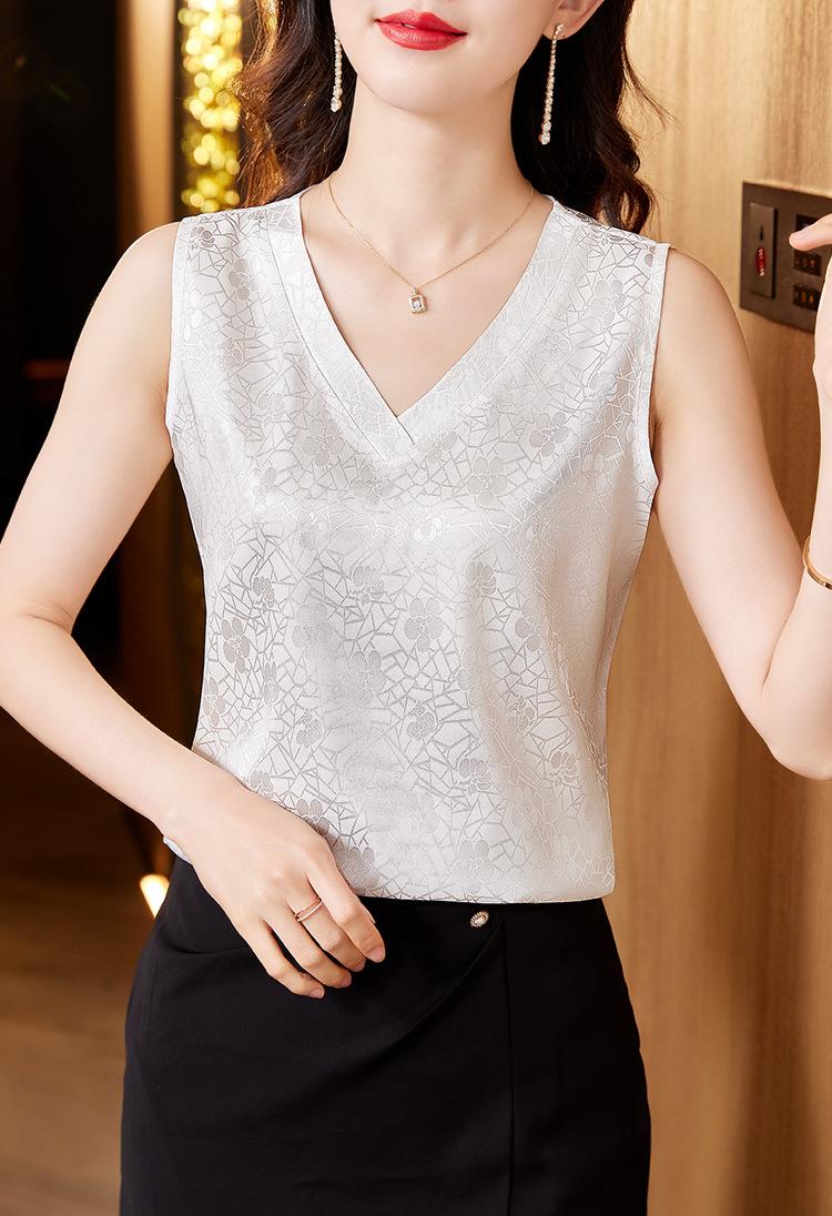 Camisola Ropa Interior de Mujer 2024 Verano Nuevo Cuello en V Sin Mangas Ropa Exterior Suelta Cubre Vientre Camiseta Base Top