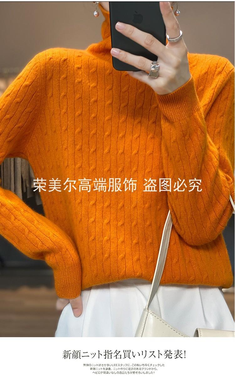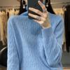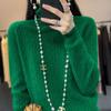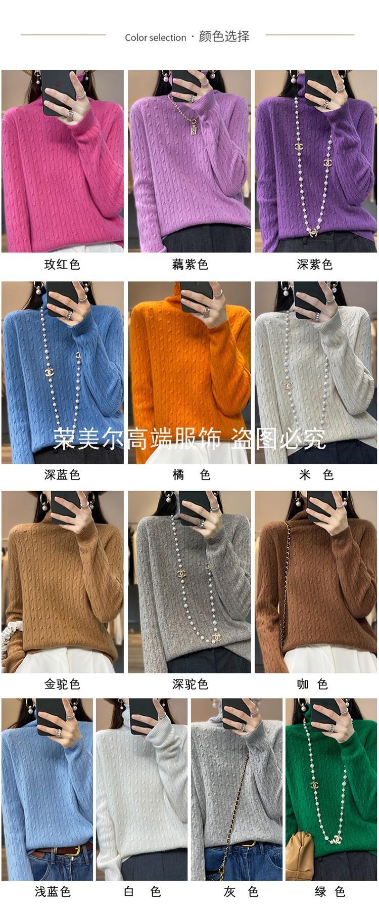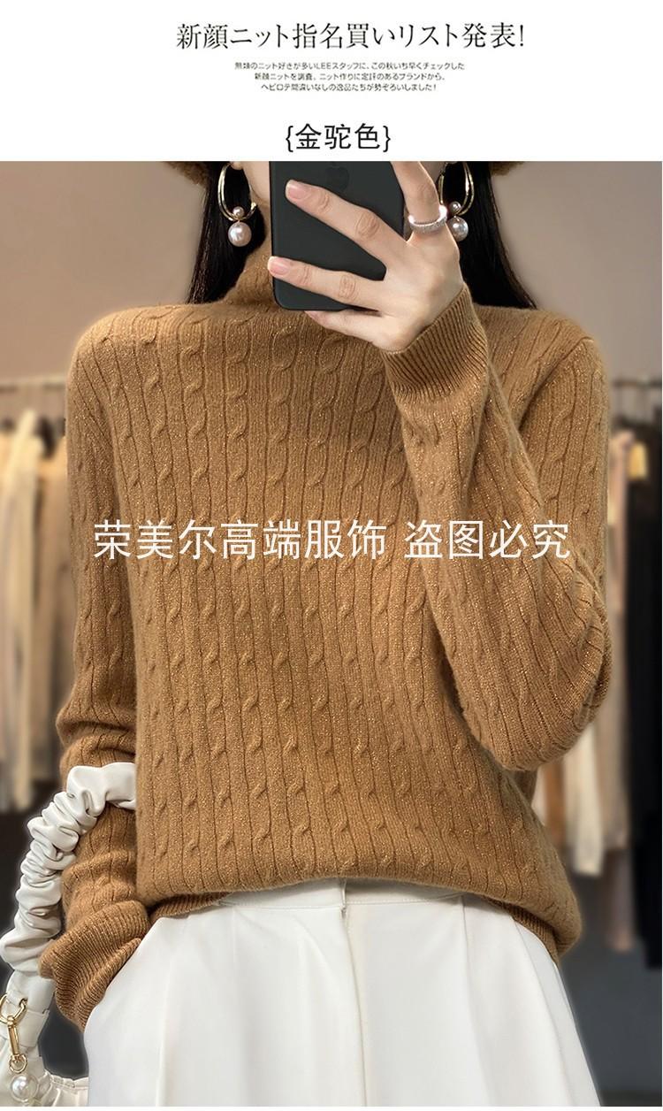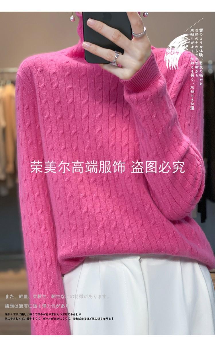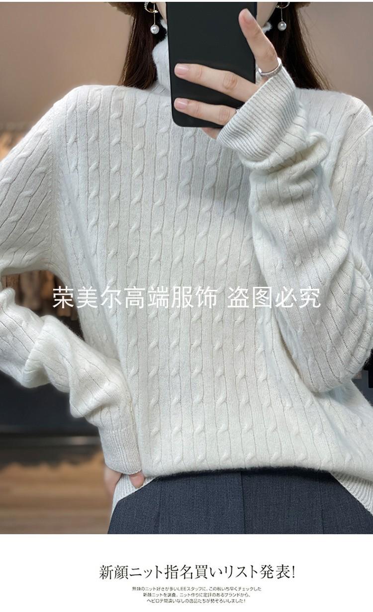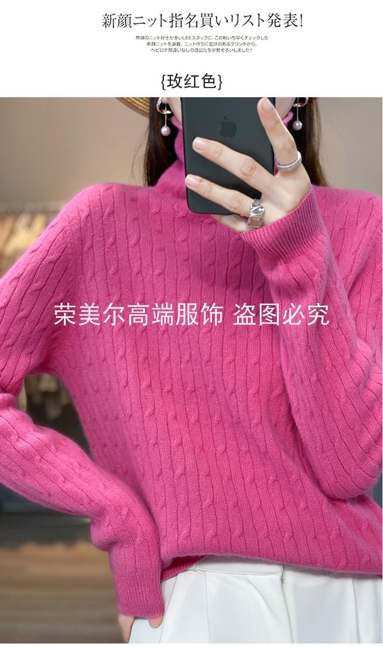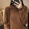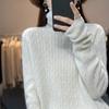 Otoño e invierno Nuevo suéter de cachemira para mujer cuello alto trenzado flor suéter pulóver moda coreana suelto lana tejido camiseta básica