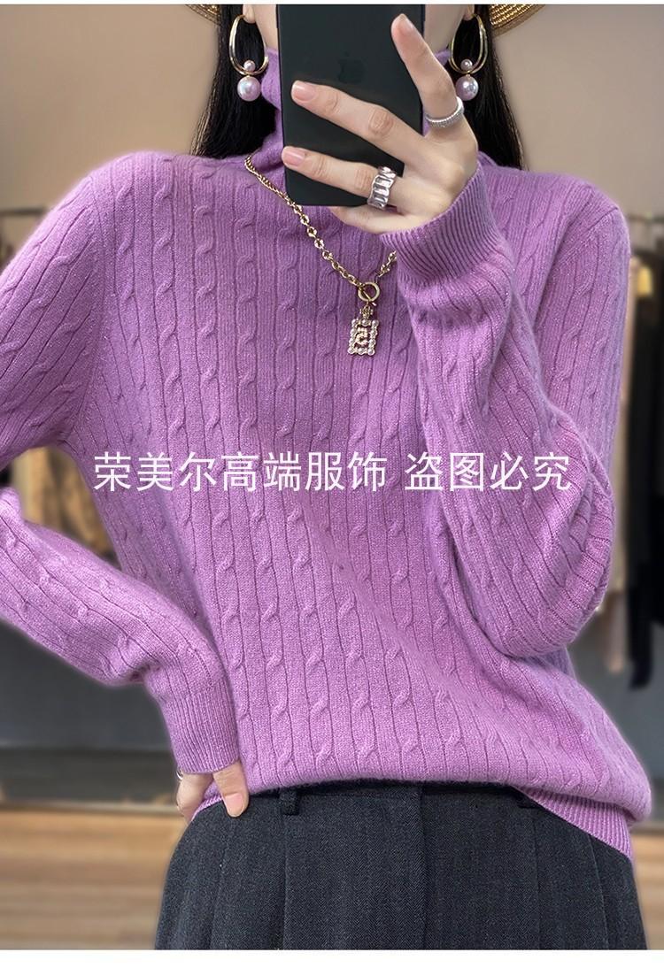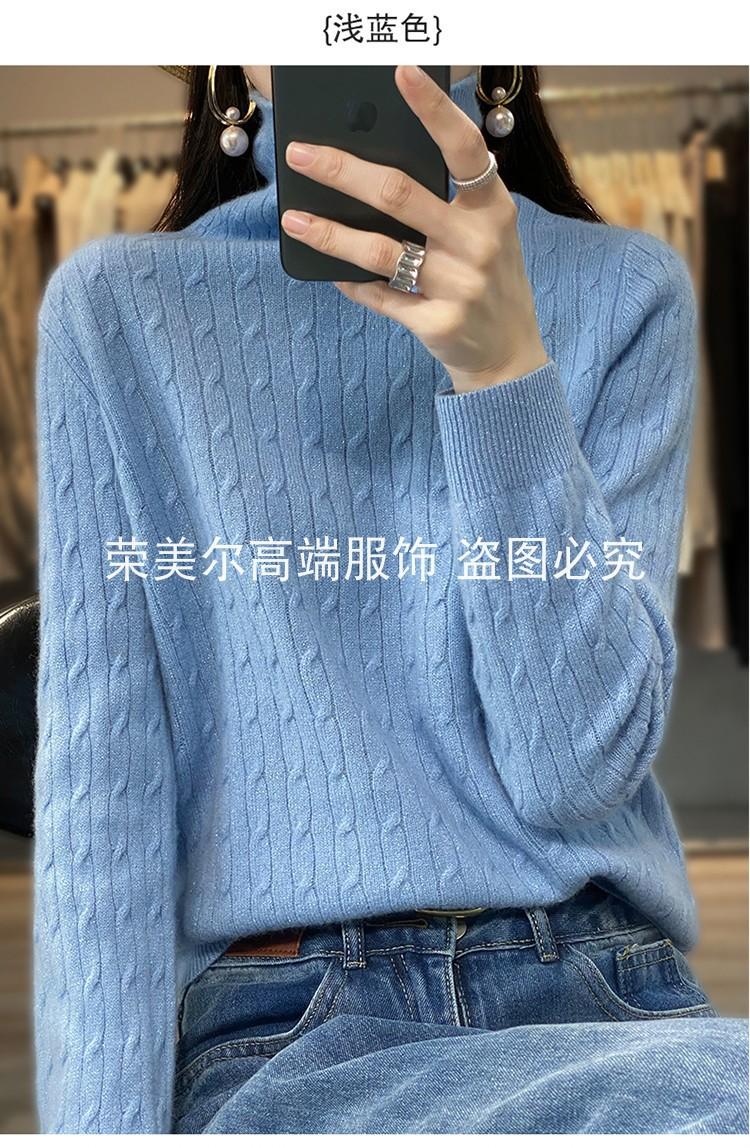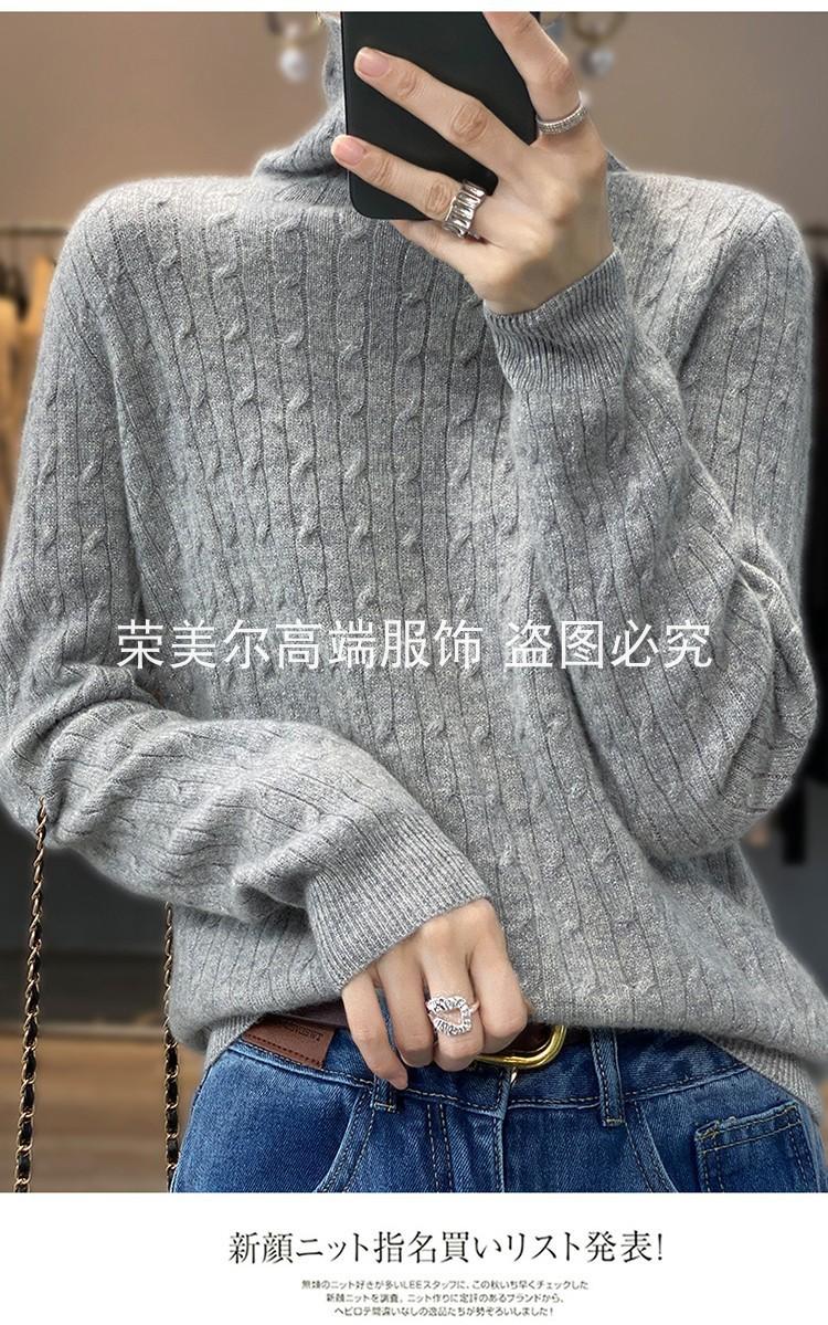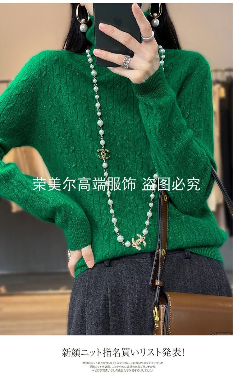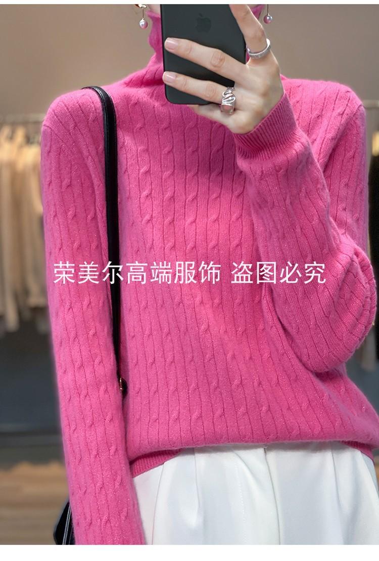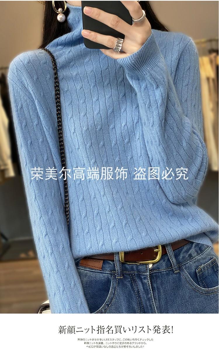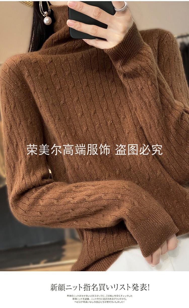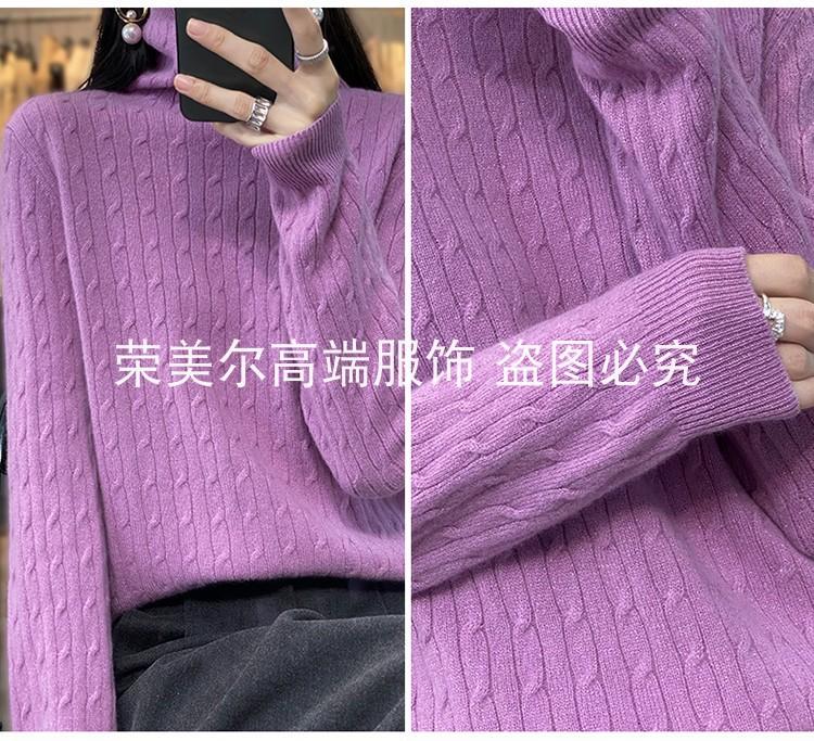 Otoño e invierno Nuevo suéter de cachemira para mujer cuello alto trenzado flor suéter pulóver moda coreana suelto lana tejido camiseta básica