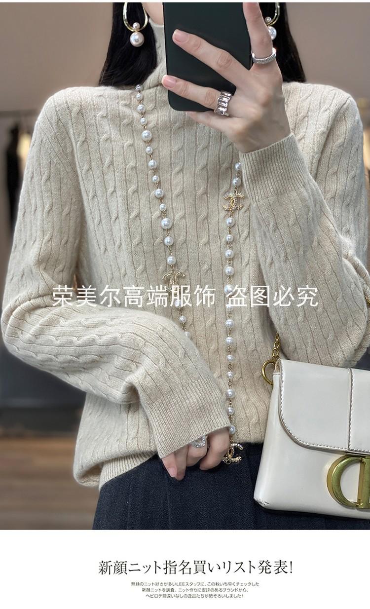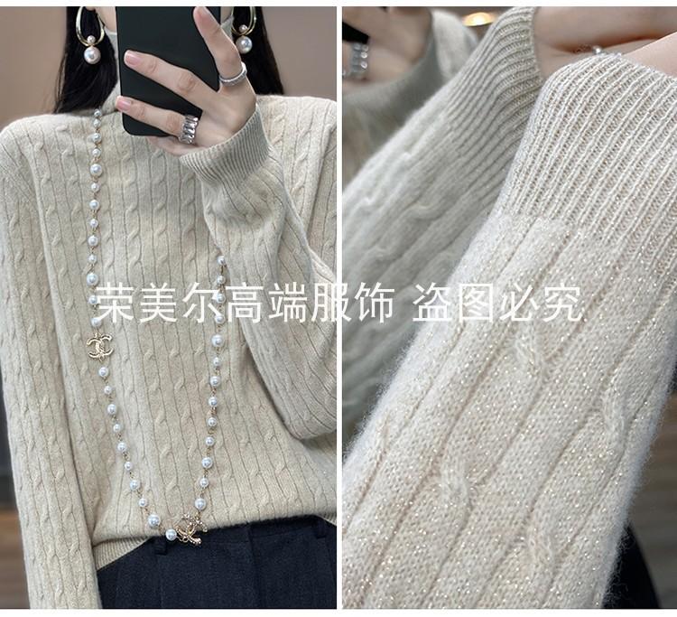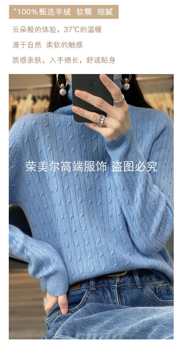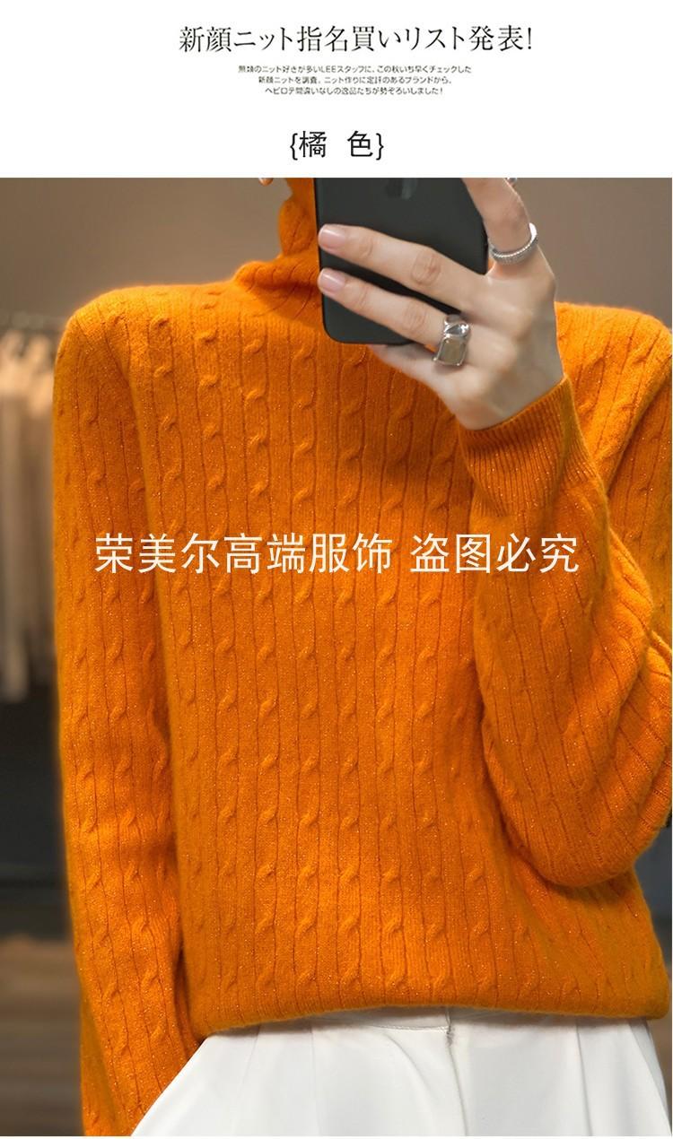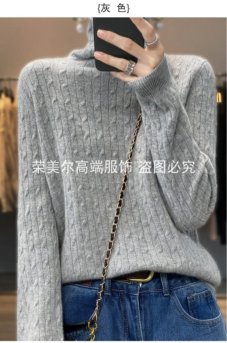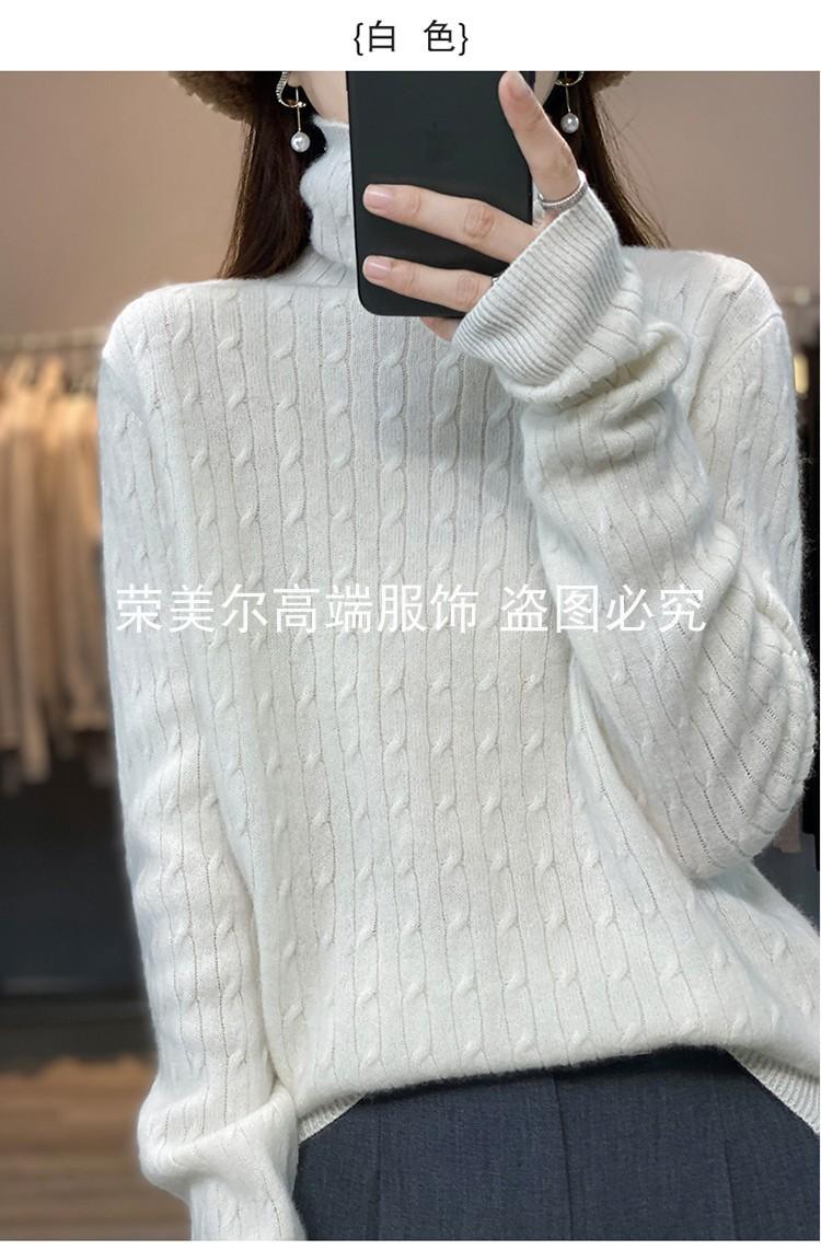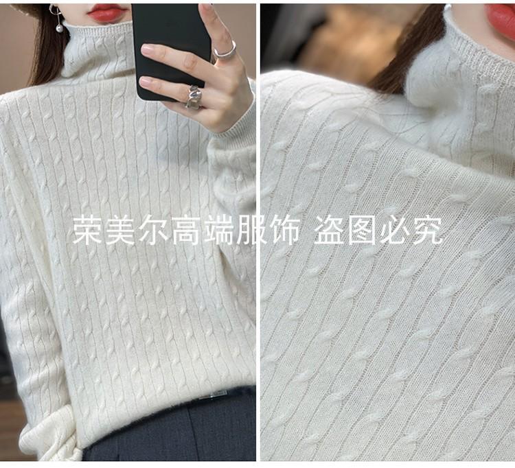 Otoño e invierno Nuevo suéter de cachemira para mujer cuello alto trenzado flor suéter pulóver moda coreana suelto lana tejido camiseta básica