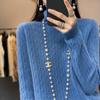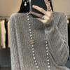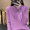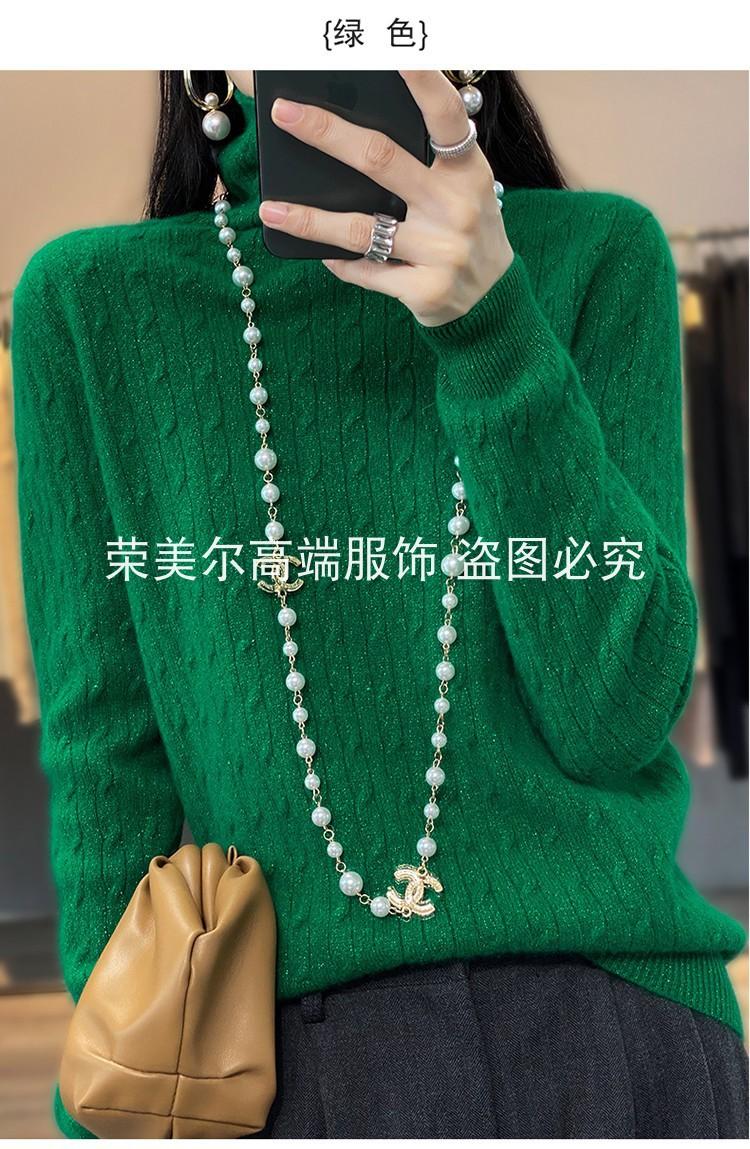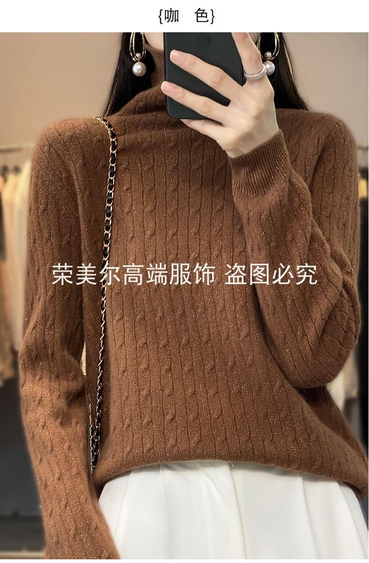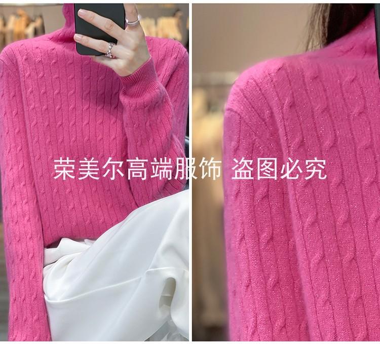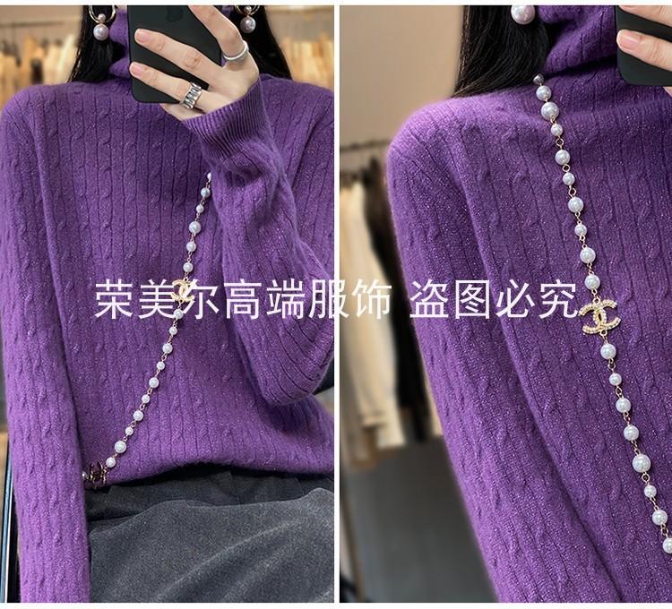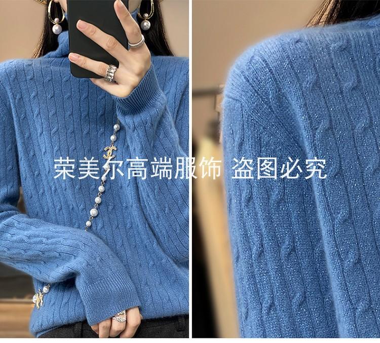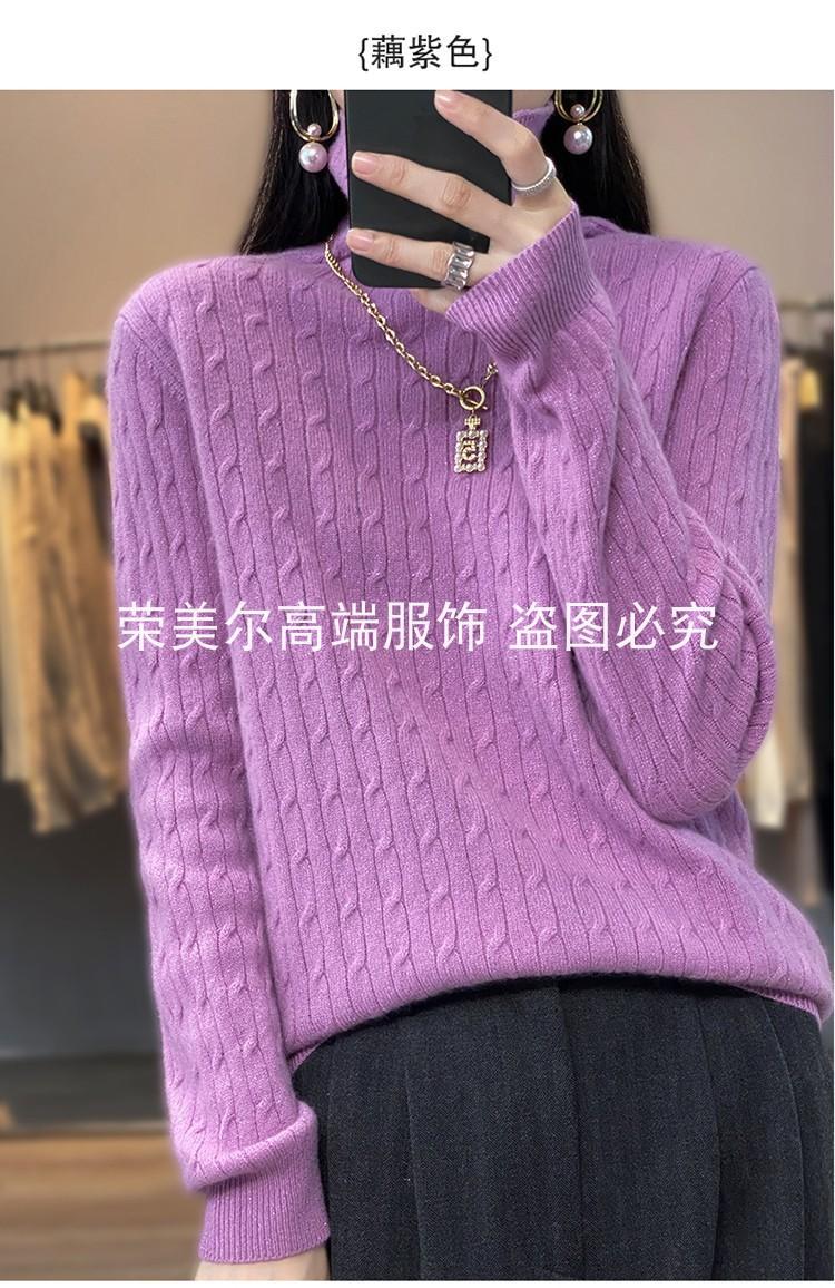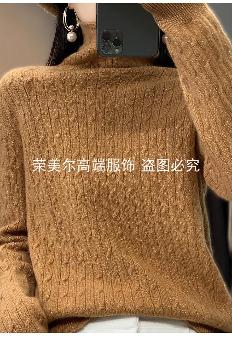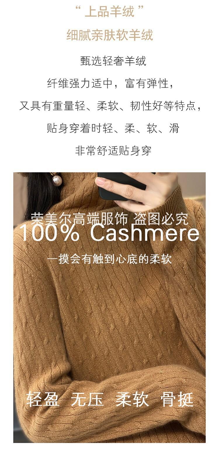 Otoño e invierno Nuevo suéter de cachemira para mujer cuello alto trenzado flor suéter pulóver moda coreana suelto lana tejido camiseta básica