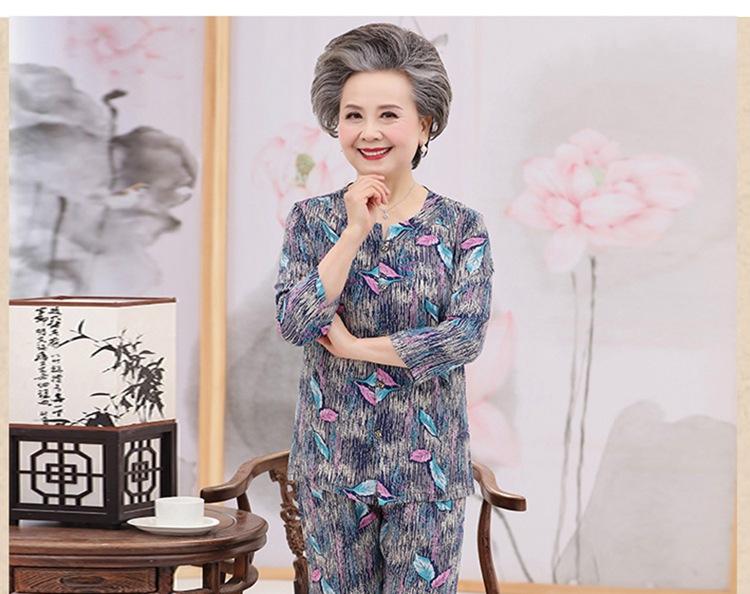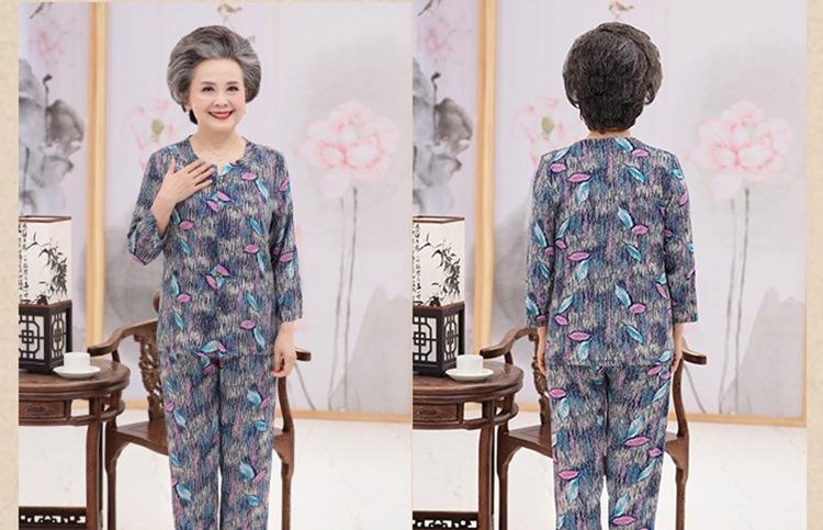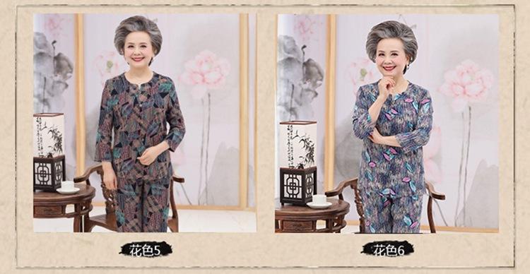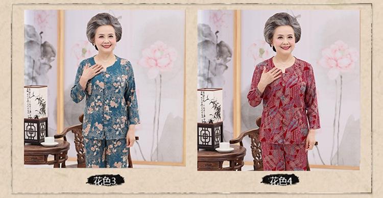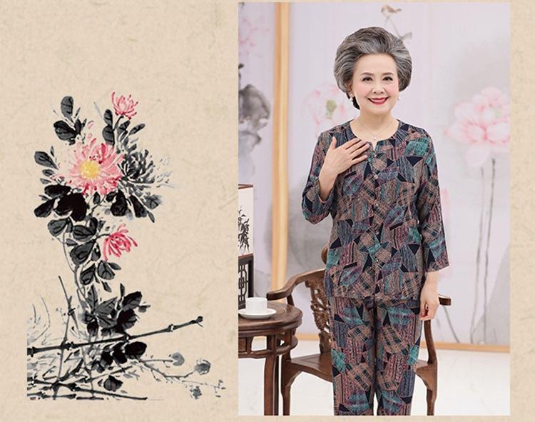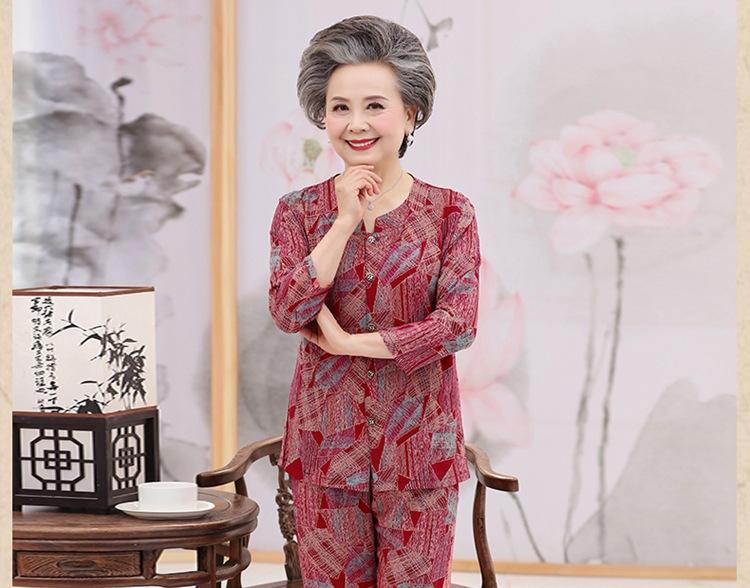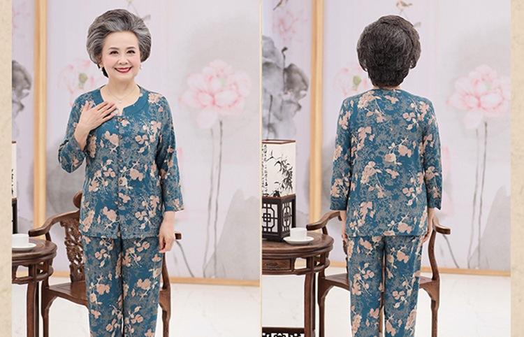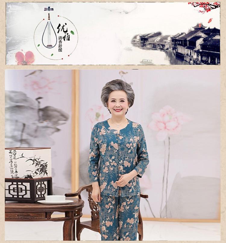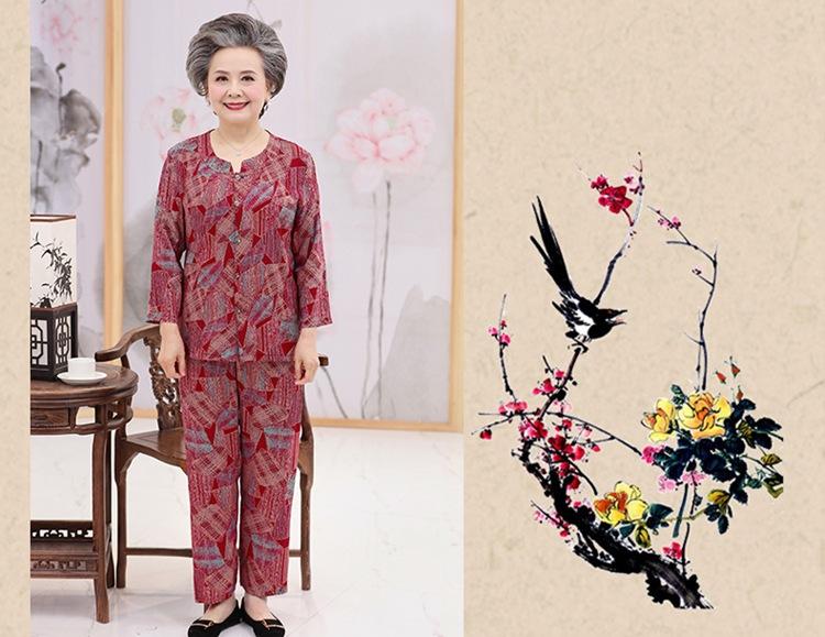 Pijamas de seda de algodón para personas de mediana edad y mayores, ropa de casa de manga larga de verano para madres, cárdigan de abuela, traje de dos piezas de seda fino