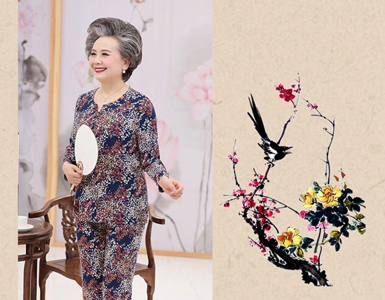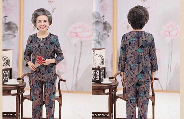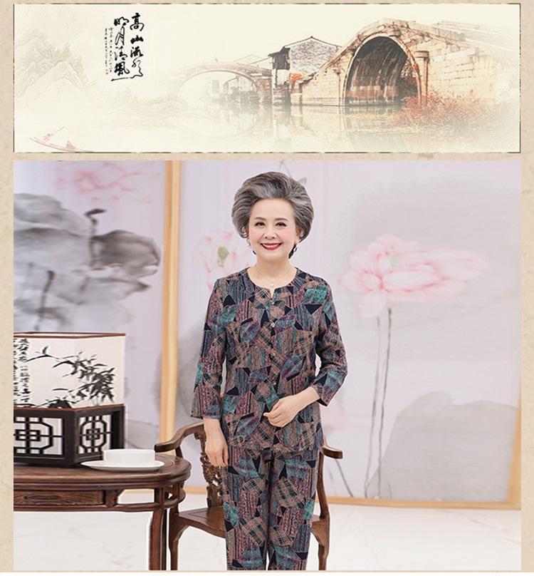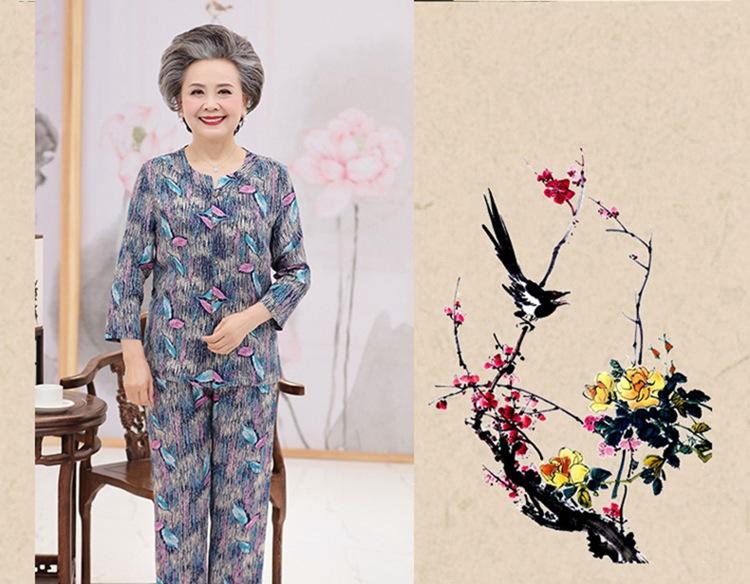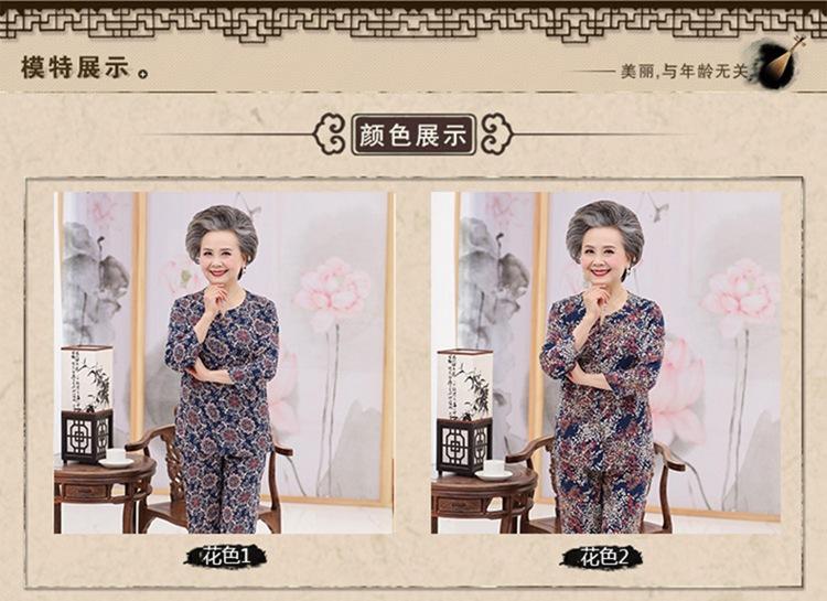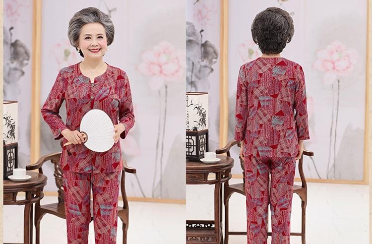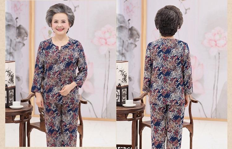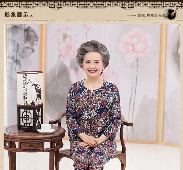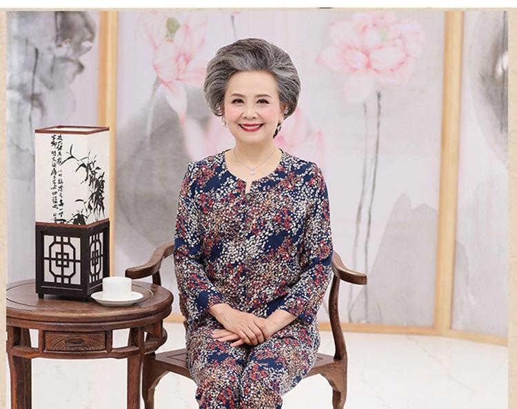 Pijamas de seda de algodón para personas de mediana edad y mayores, ropa de casa de manga larga de verano para madres, cárdigan de abuela, traje de dos piezas de seda fino