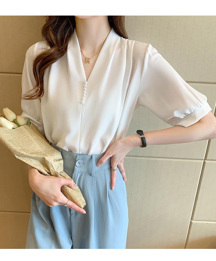 Camisa de Chifón de Manga Corta para Mujer Ropa de Verano para Mujer 2024 Nuevo Diseño de Tops Nicho Verano Camisa Delgada