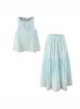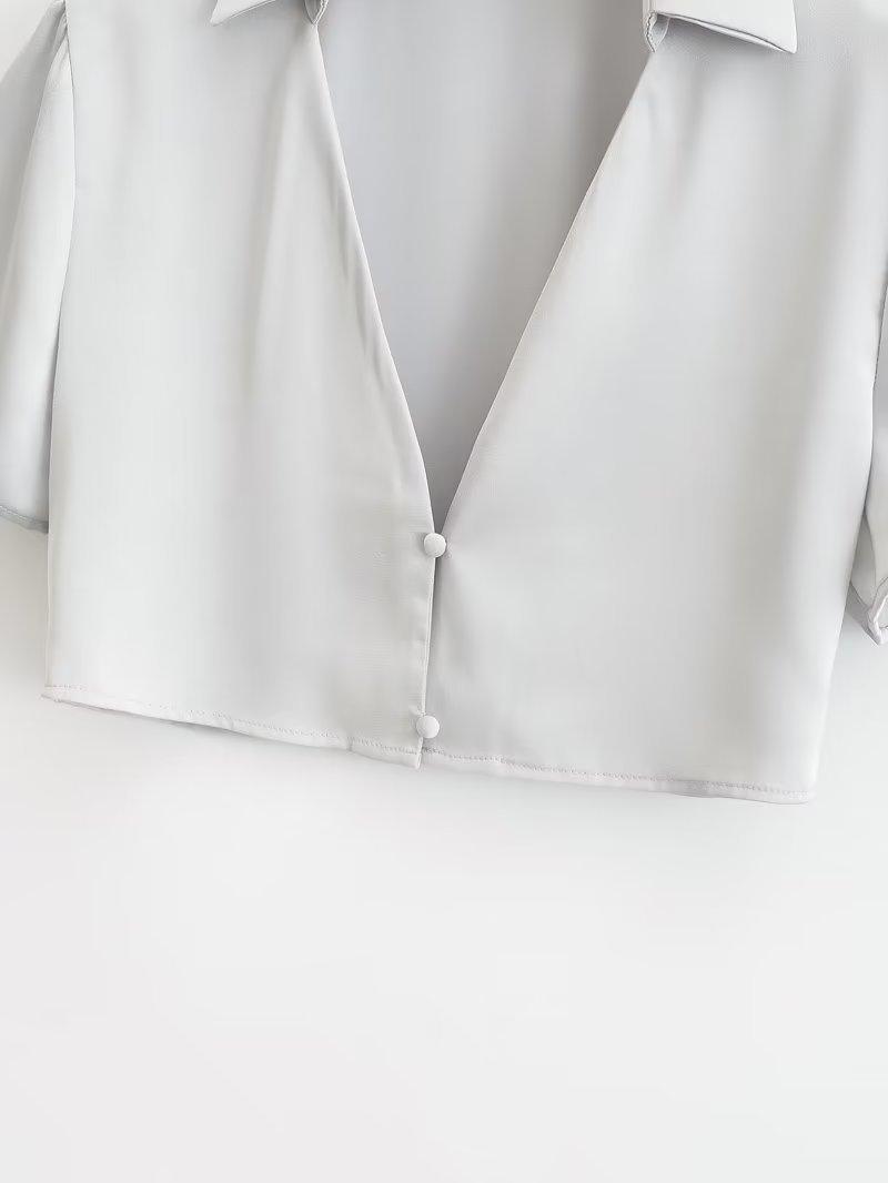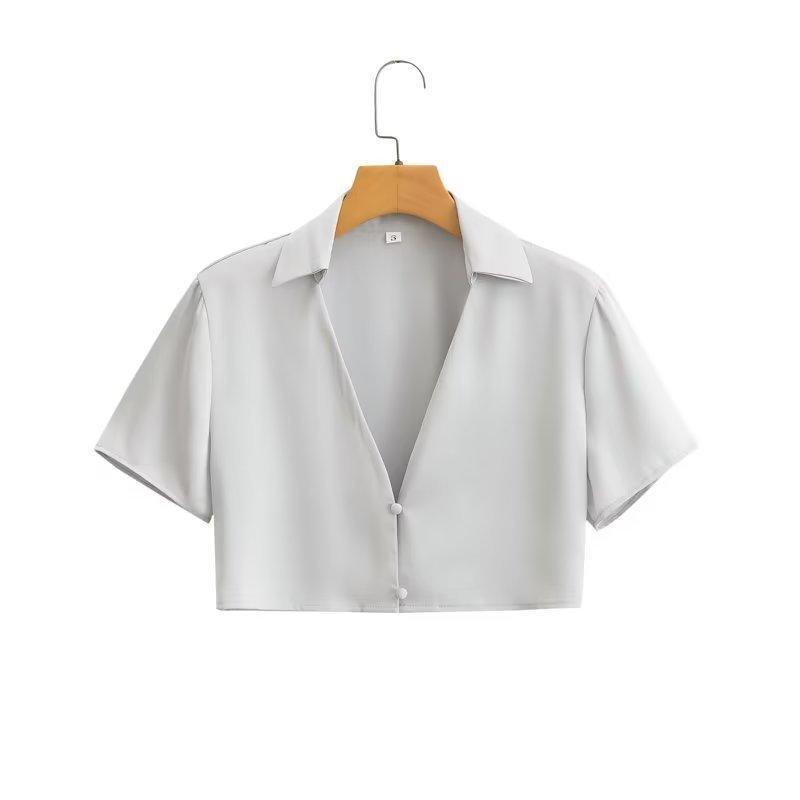 1513 Verano Nuevo Mujer Estilo Europeo y Americano Solapa Cuello en V Botón Top Corto + Set Falda Midi Cintura Alta