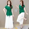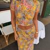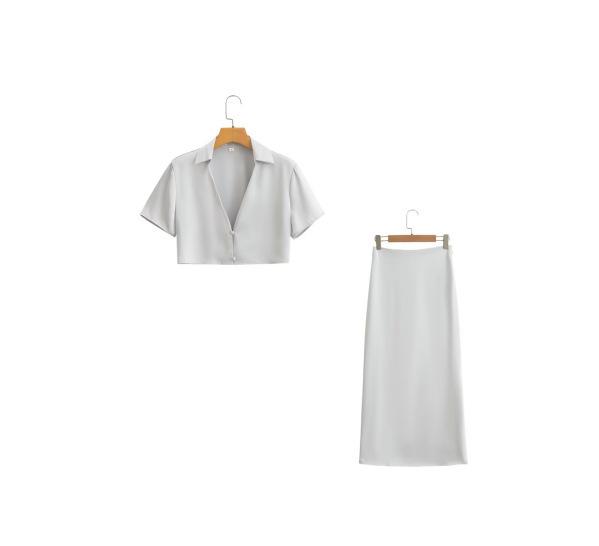 1513 Verano Nueva Ropa de Mujer Estilo Europeo y Americano Solapa Cuello en V Botones Top Corto Cintura Alta Falda de Longitud Media Traje