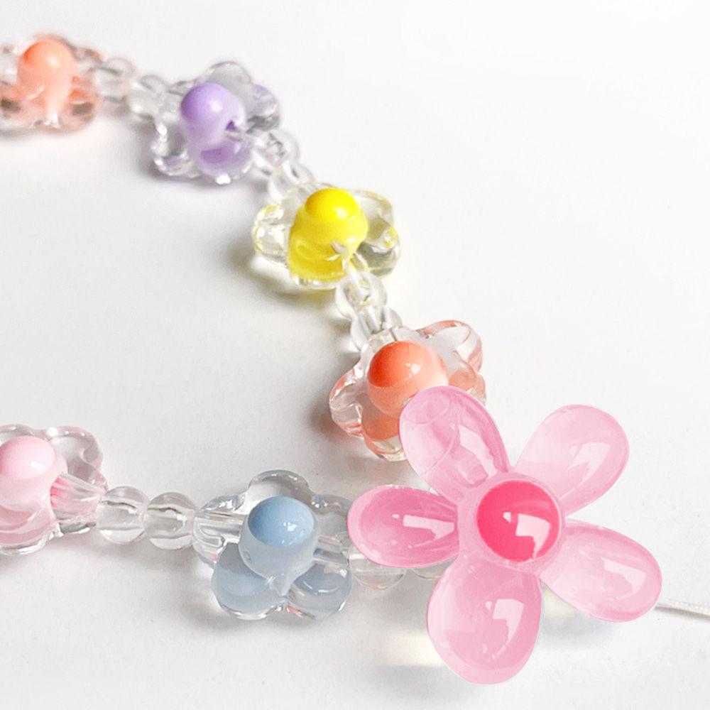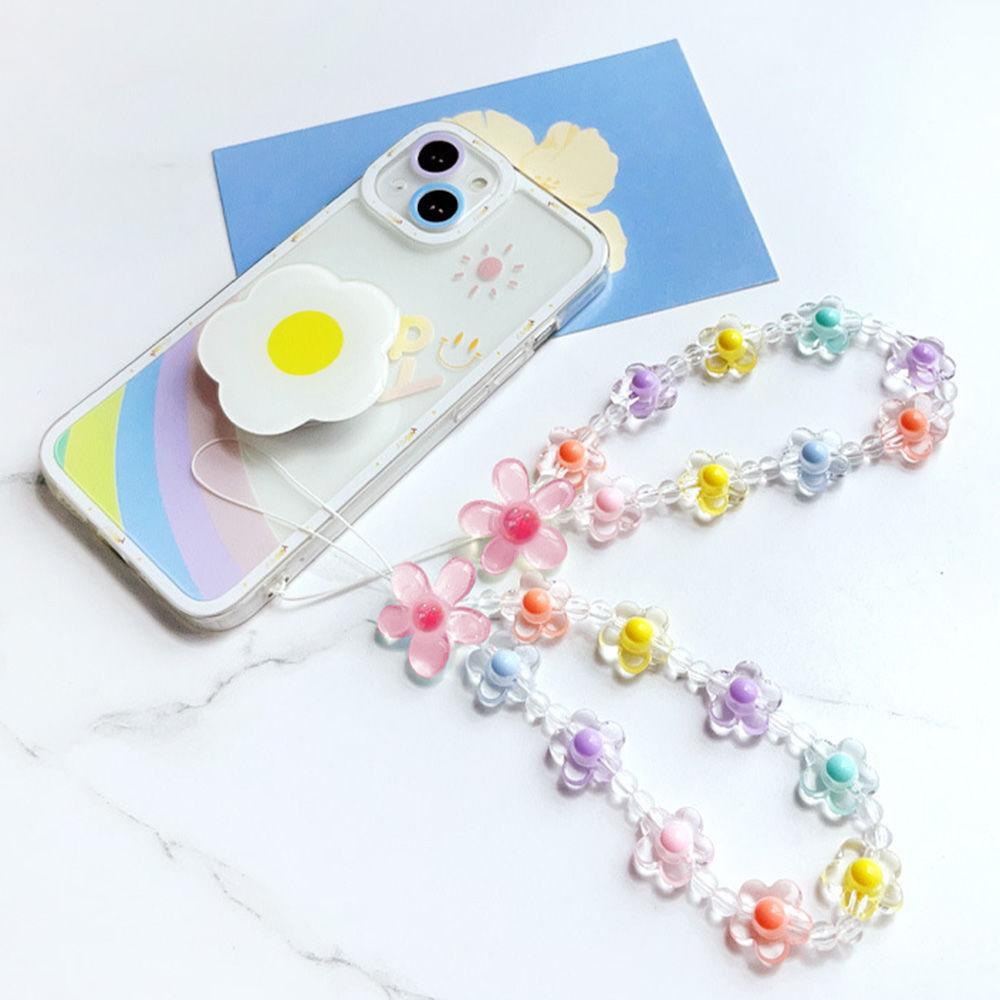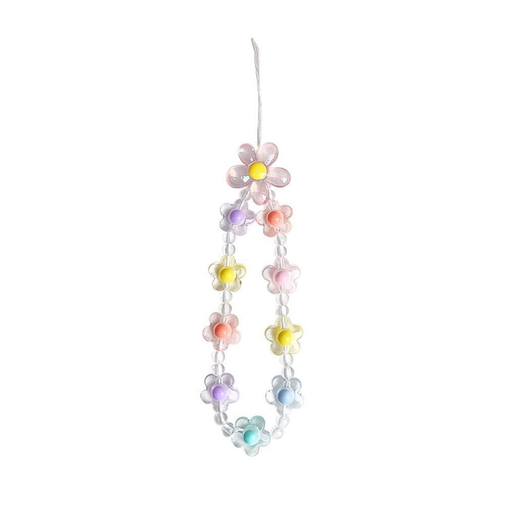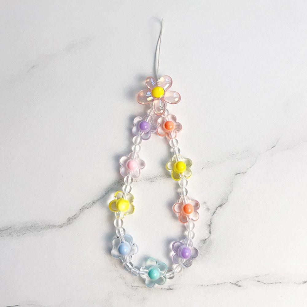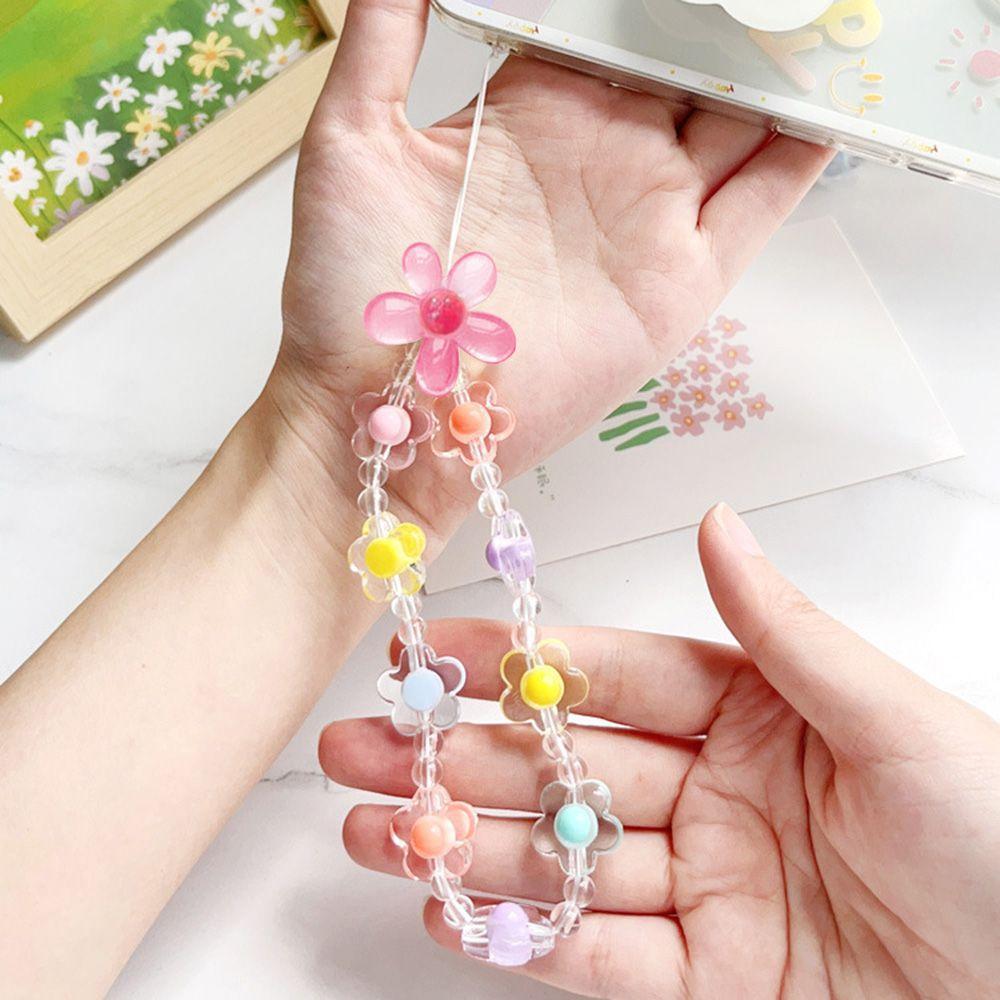 Pulsera de flores coloridas, cordón corto para teléfono móvil, cadena de muñeca creativa, colgante de muñeca de cadena de cuentas hecho a mano de alta calidad