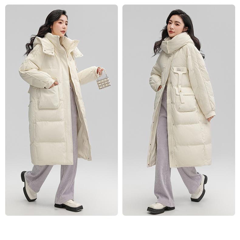 Chamarra de plumón de pato para mujer de longitud media 2024 Otoño e Invierno Nuevo con capucha Moda Más fácil de combinar Estilo coreano Ajustada Chamarra de plumón de pato