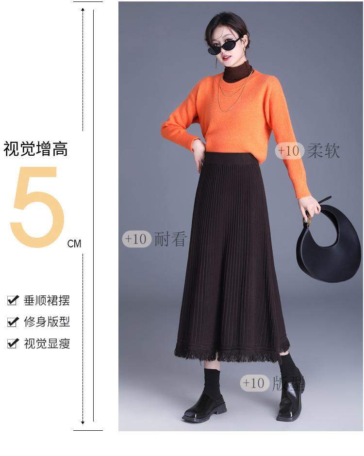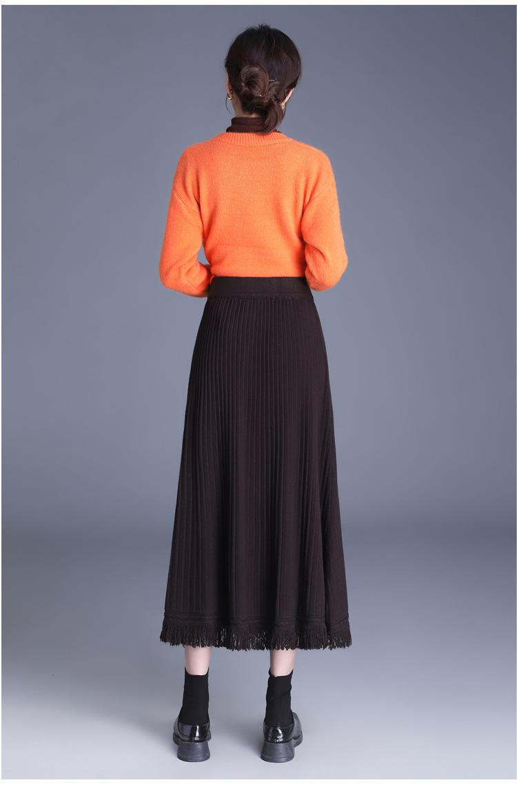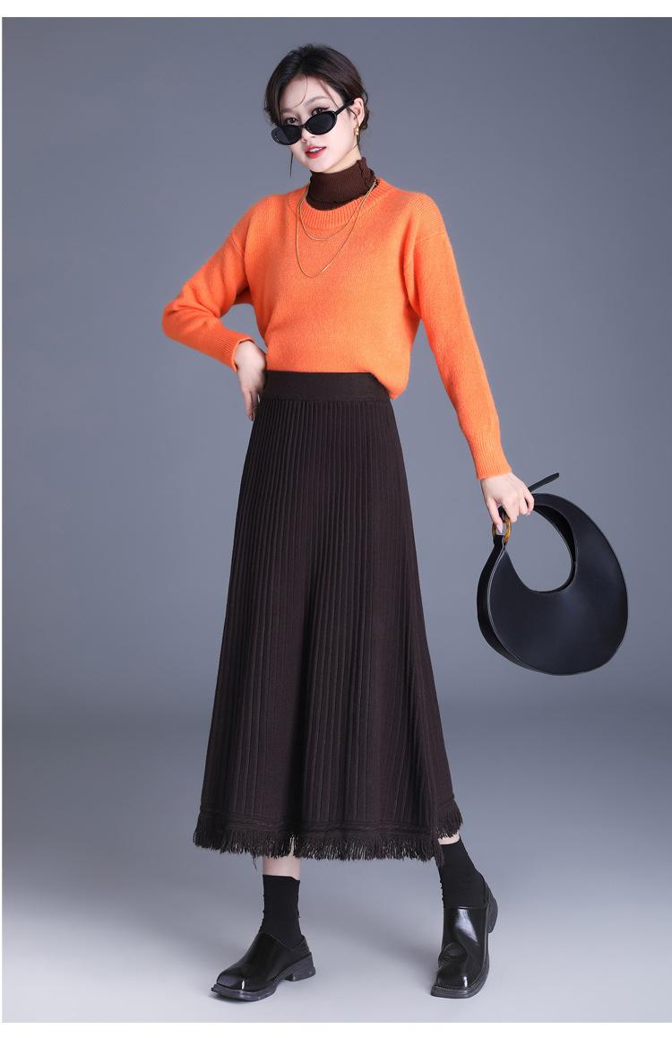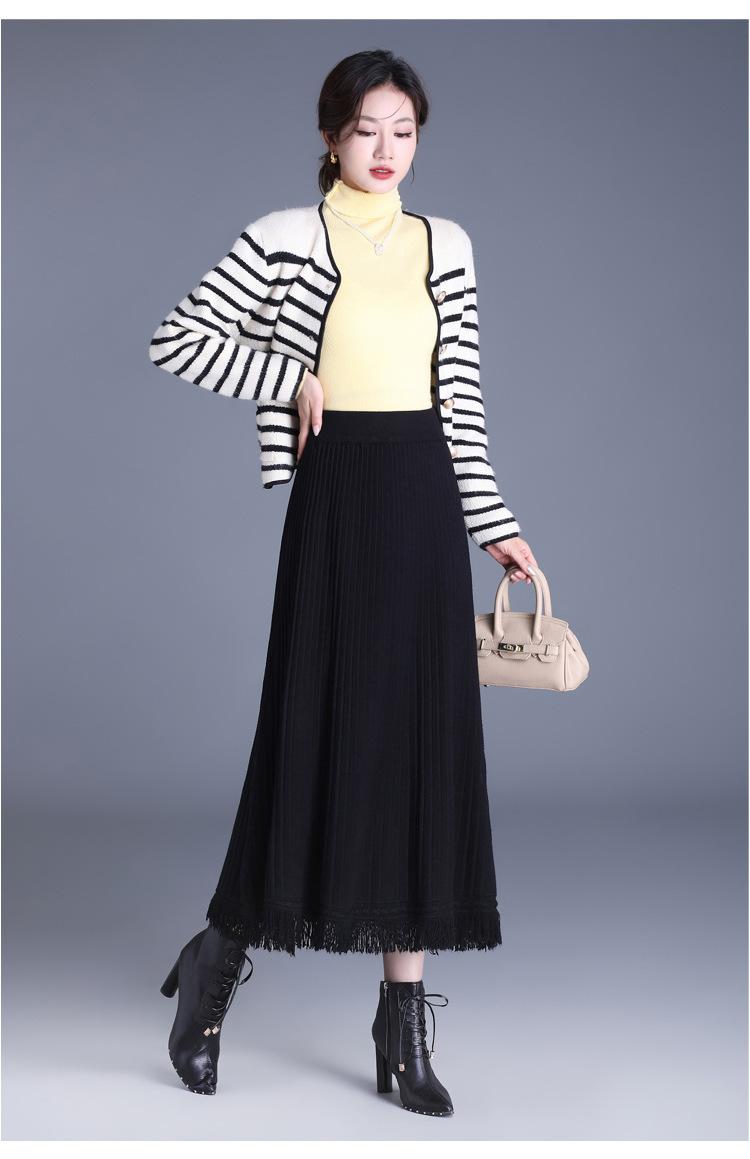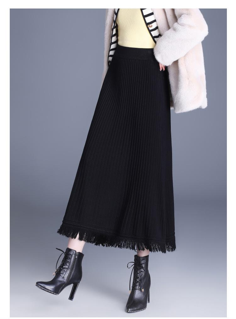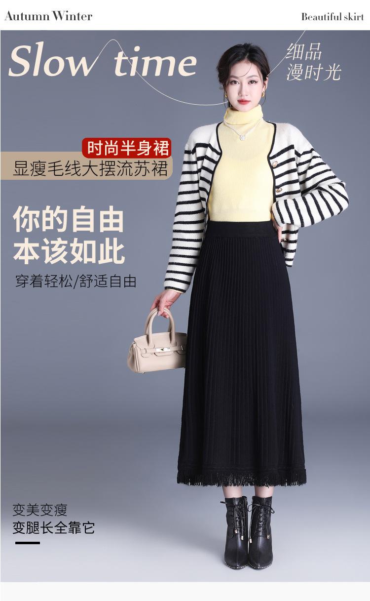 Falda Elegante Grande Acampanada de Lana Tejida Li Shubian para Mujer 2024 Otoño e Invierno Nuevo Estilo Coreano Línea A Cubridora Falda Midi