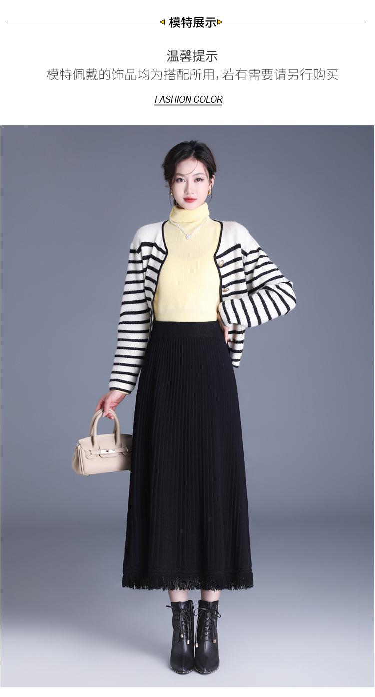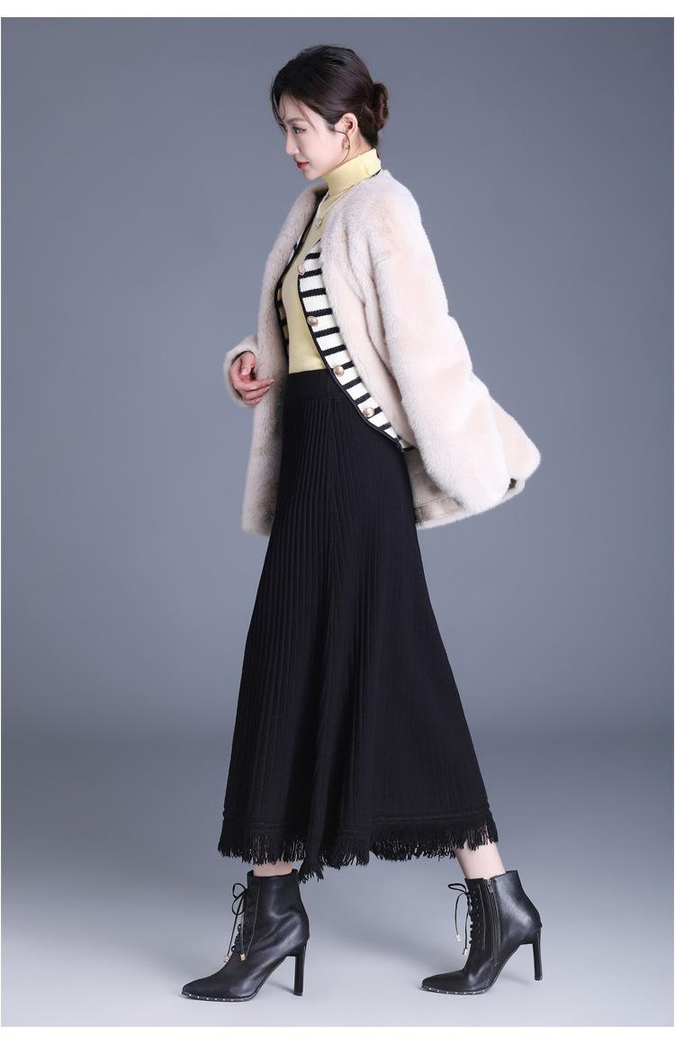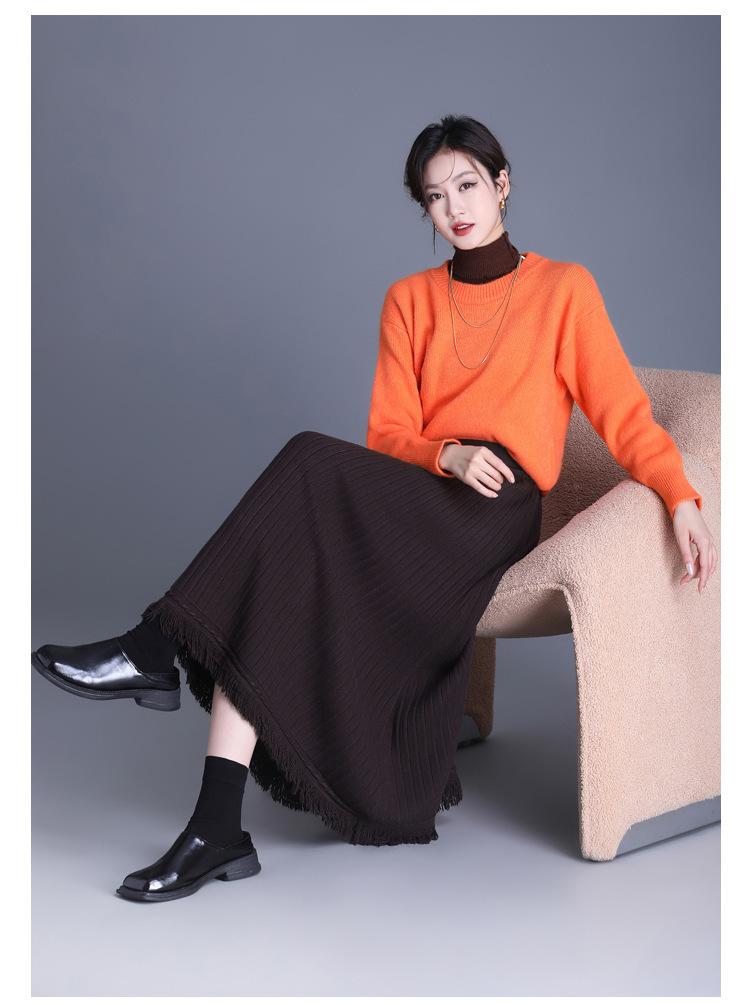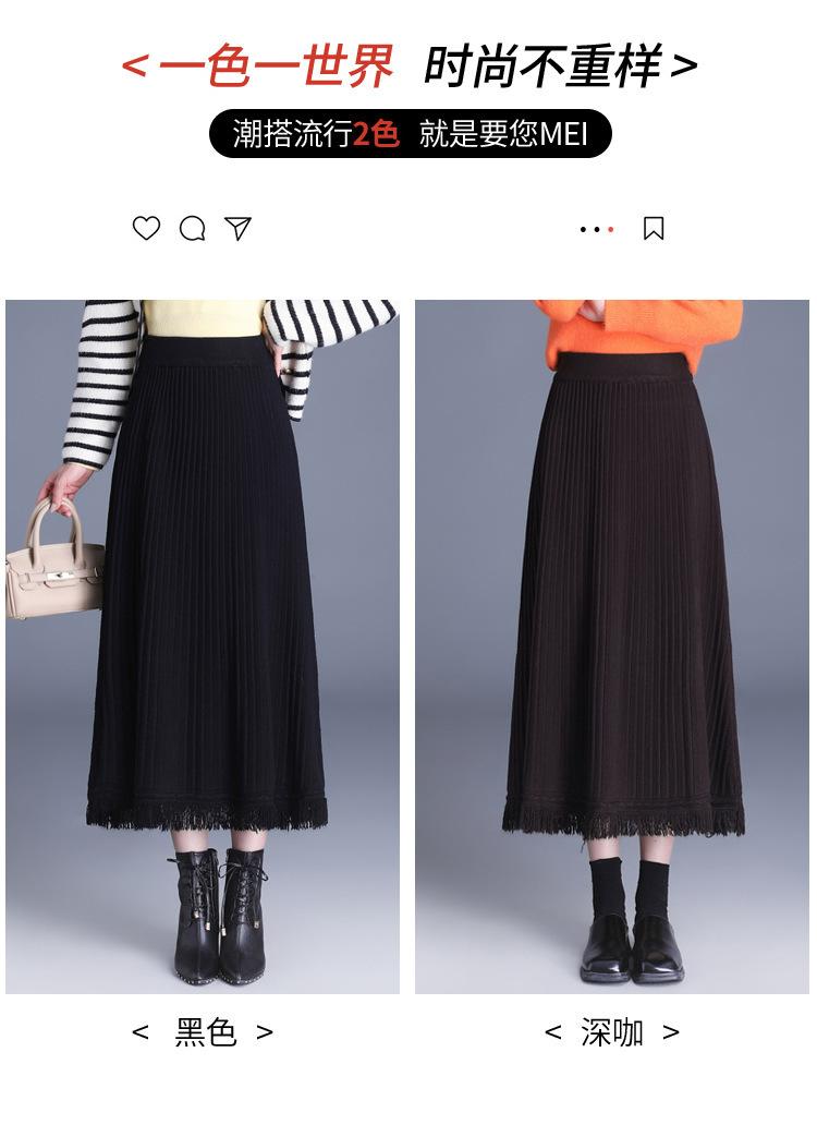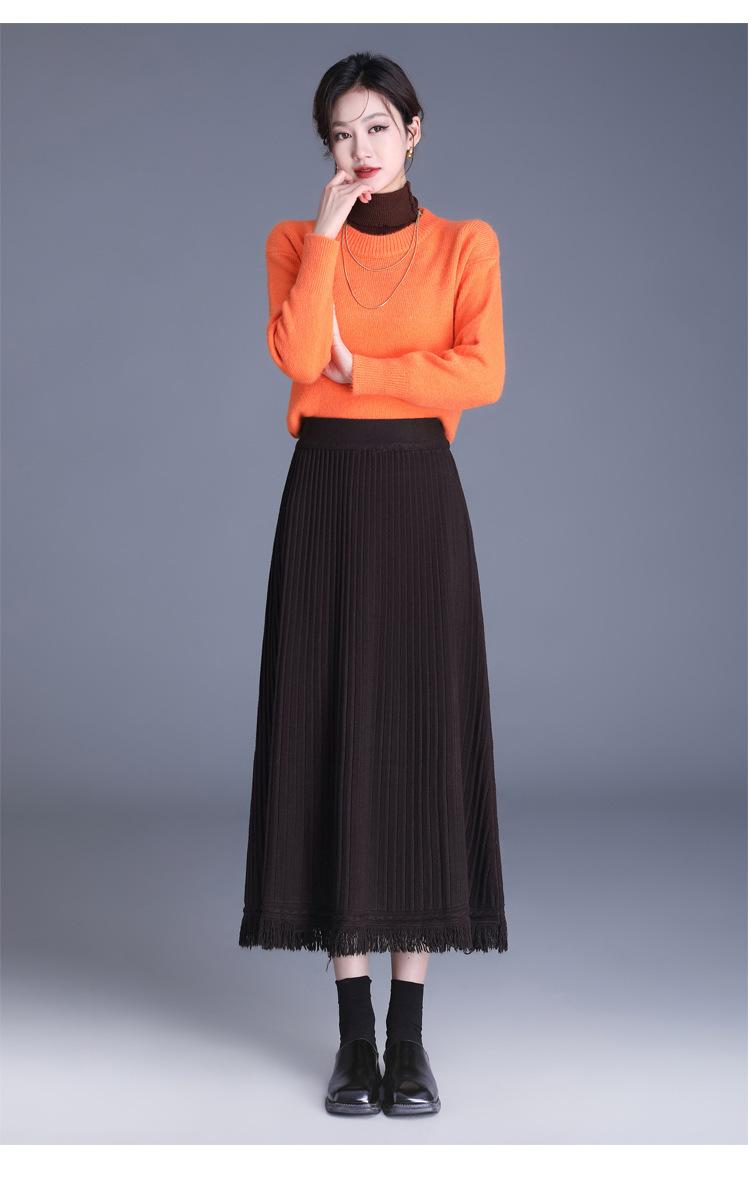 Falda Elegante Grande Acampanada de Lana Tejida Li Shubian para Mujer 2024 Otoño e Invierno Nuevo Estilo Coreano Línea A Cubridora Falda Midi