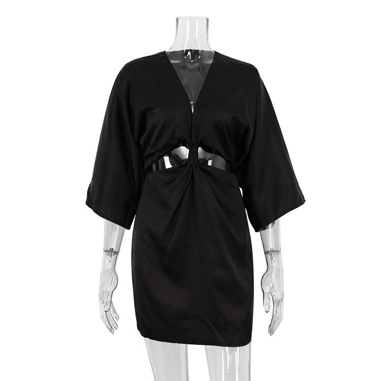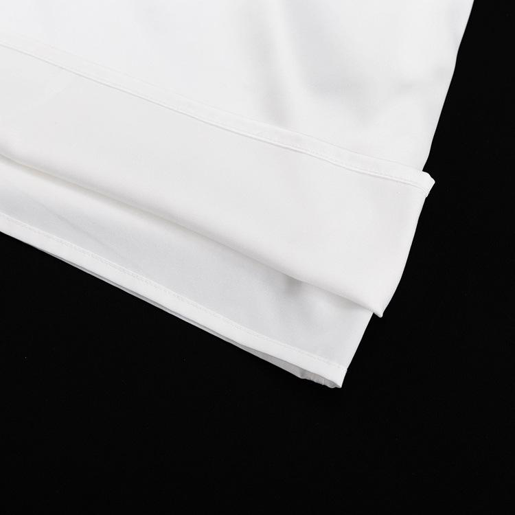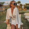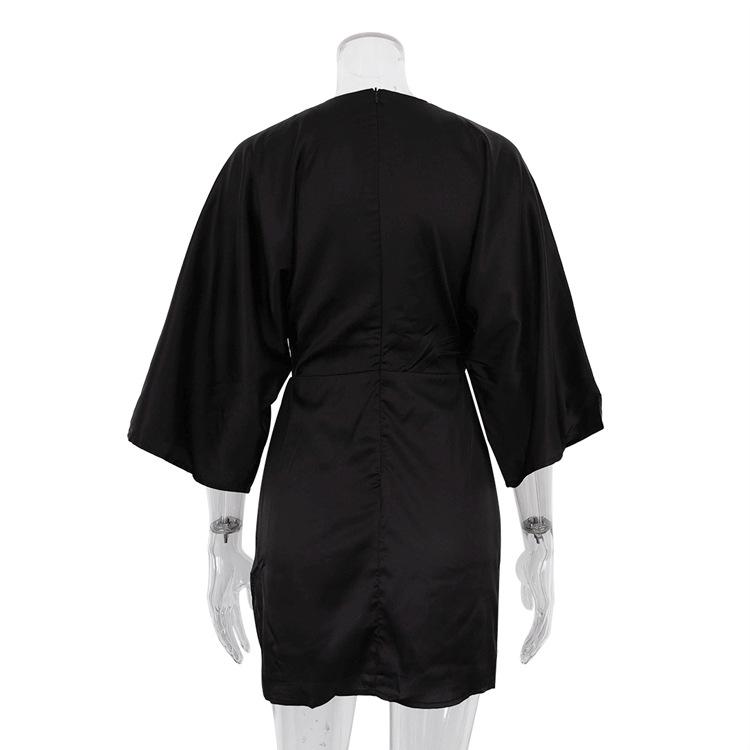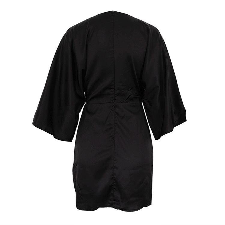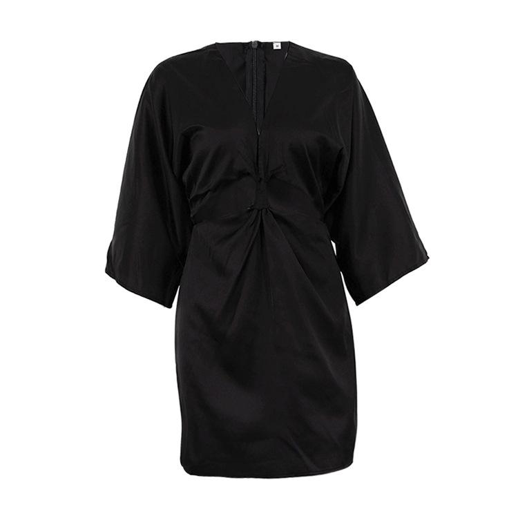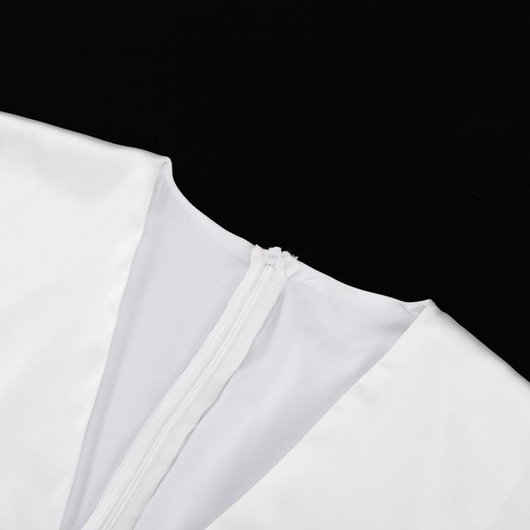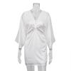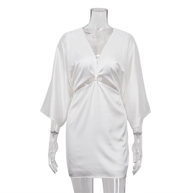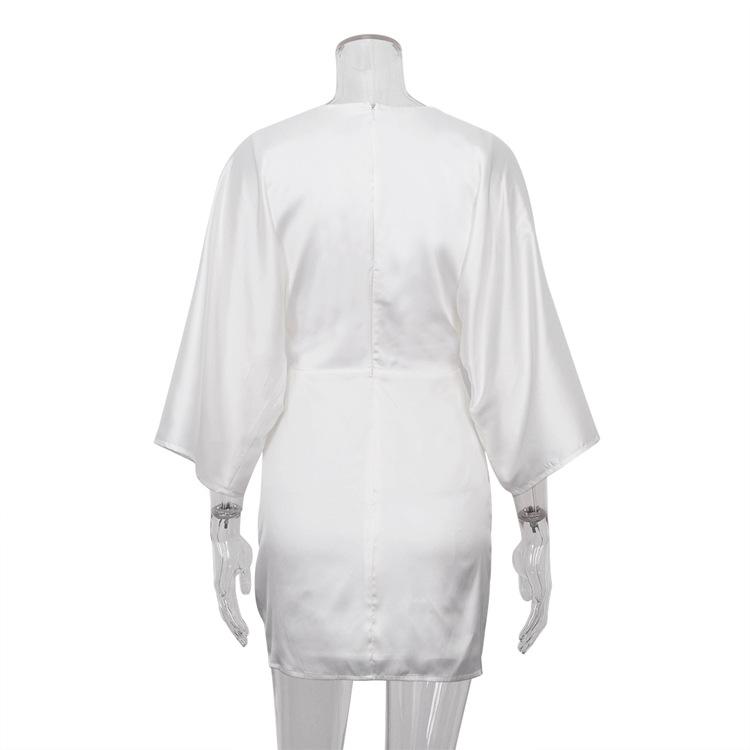 Vestido ajustado de manga tres cuartos torcido con escote en V profundo de satén blanco nuevo de verano 2024 estilo europeo y americano