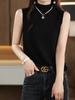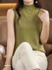 Chaleco de lana fina de estambre para primavera y verano, suéter sin mangas de cuello alto para mujer, camisa de base de punto interior de otoño e invierno para mujer