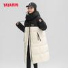 Chaqueta de plumón de pato para mujer larga 2024 otoño e invierno nueva engrosada por encima de la rodilla con capucha y cuello removibles color en contraste chaqueta de plumón de pato