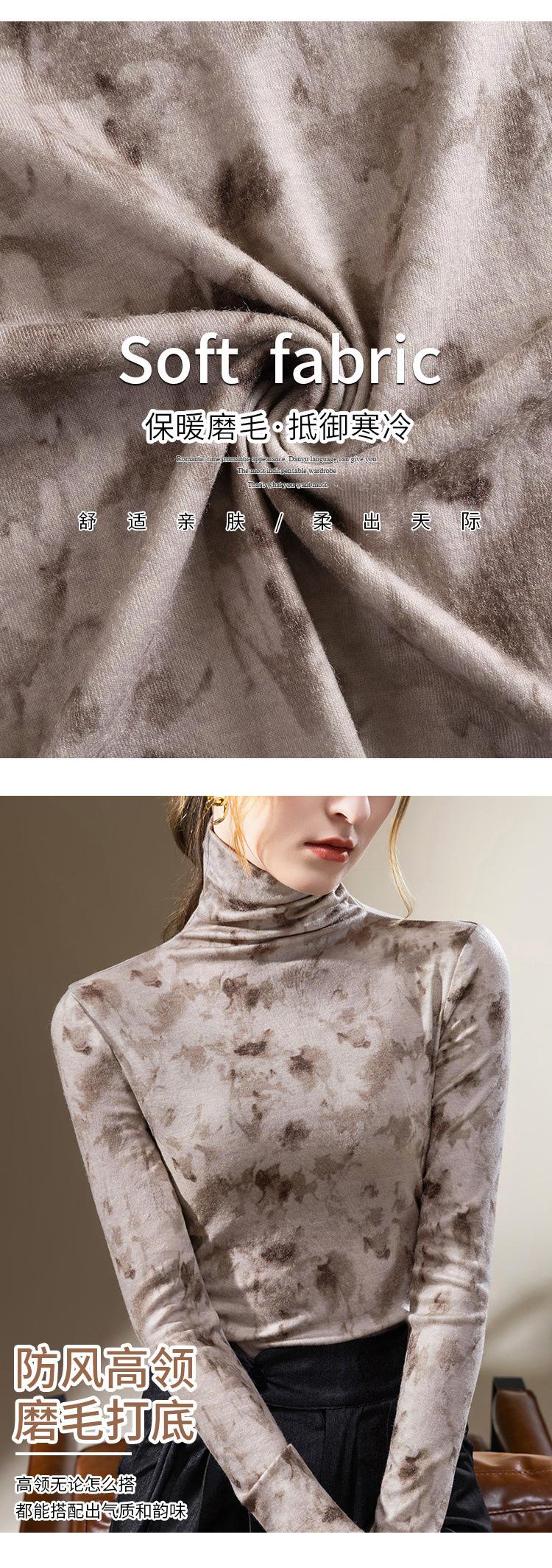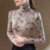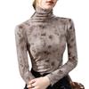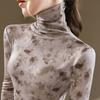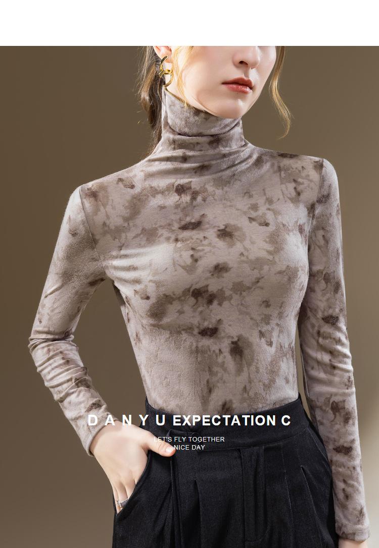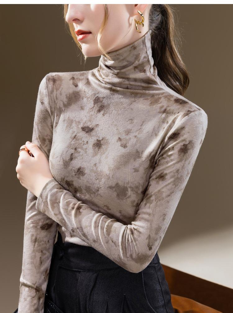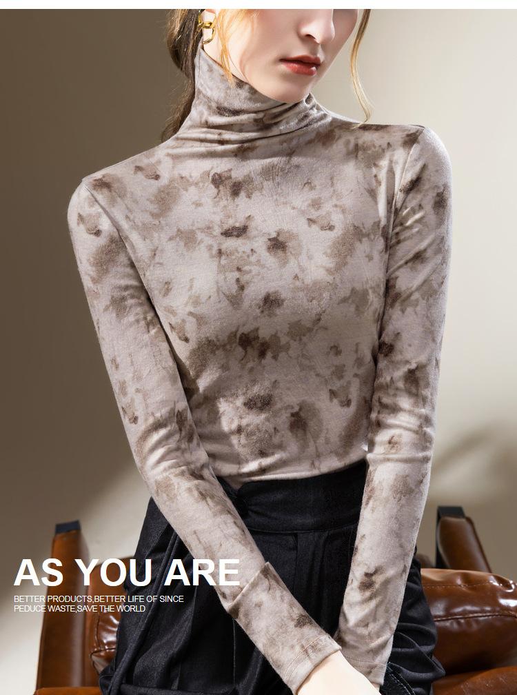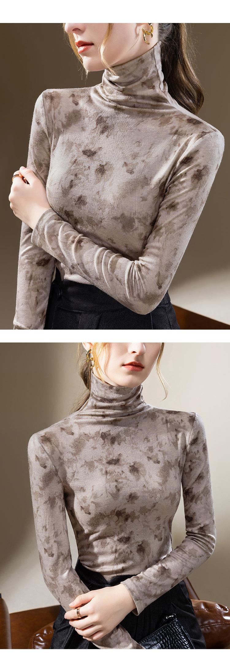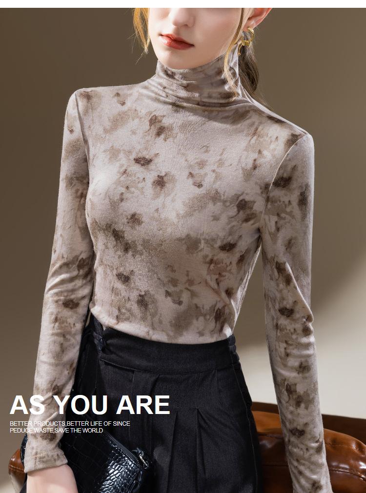 Camisa de cuello alto para mujer, nueva ropa de estilo europeo 2023, camiseta de manga larga cepillada con estampado de estilo occidental, top interior ajustado a la cintura