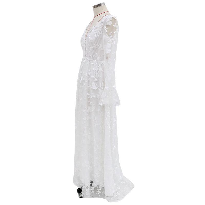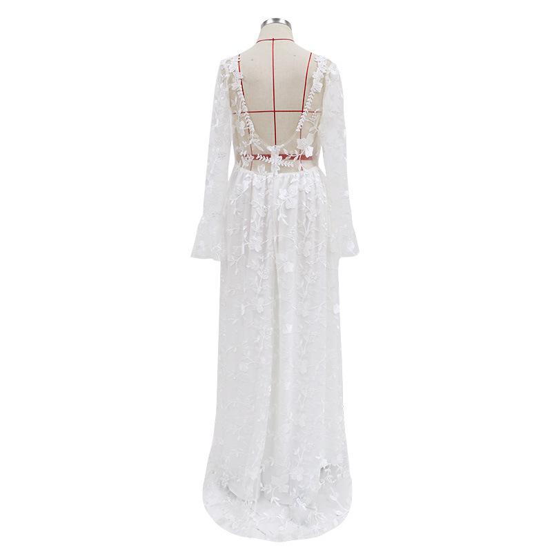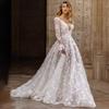 2025 Primavera y Verano Nuevo Transfronterizo Exportación Europea y Americana Vestido de Novia Amazon Sexy Encaje Vestido de Manga Larga Vestido de Noche