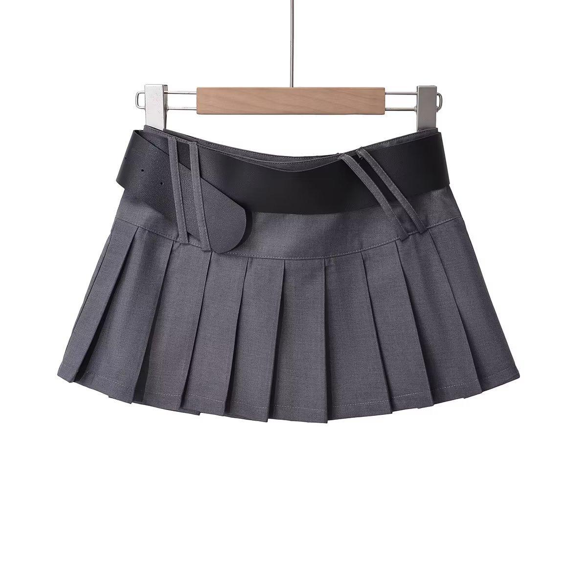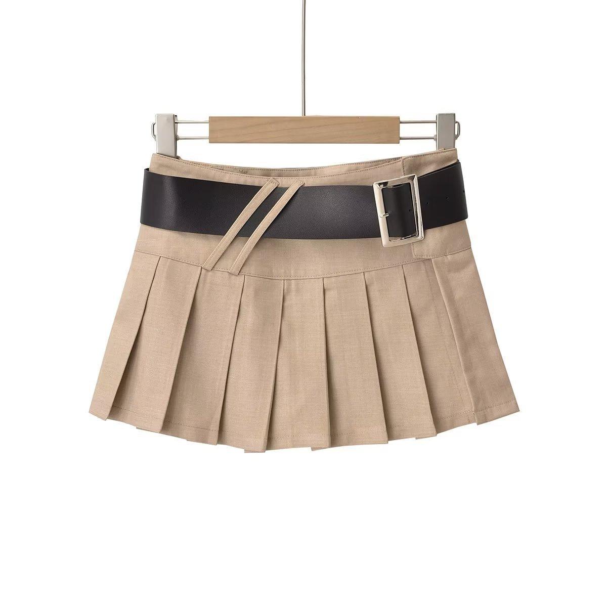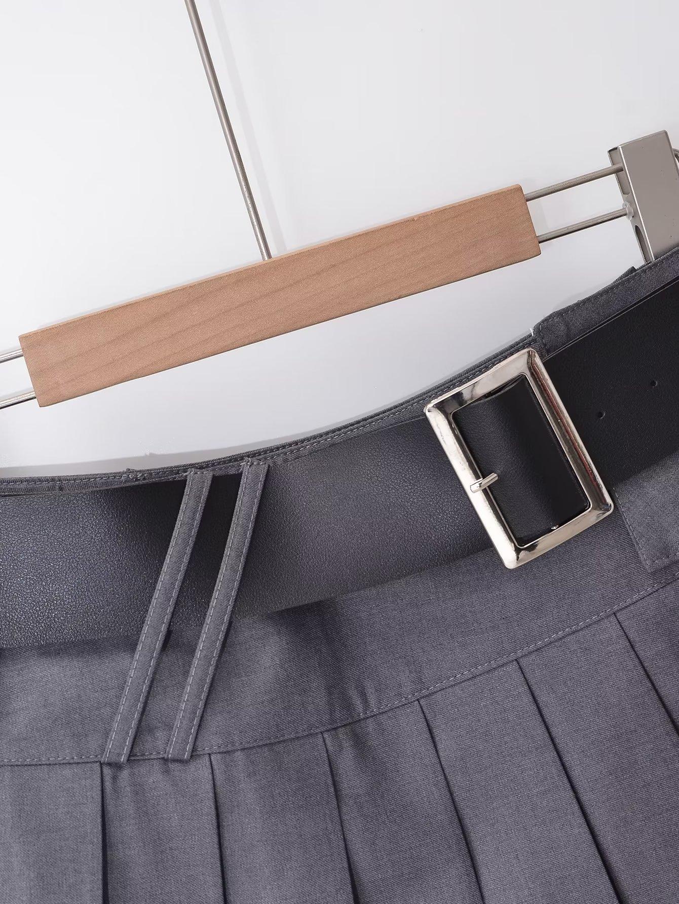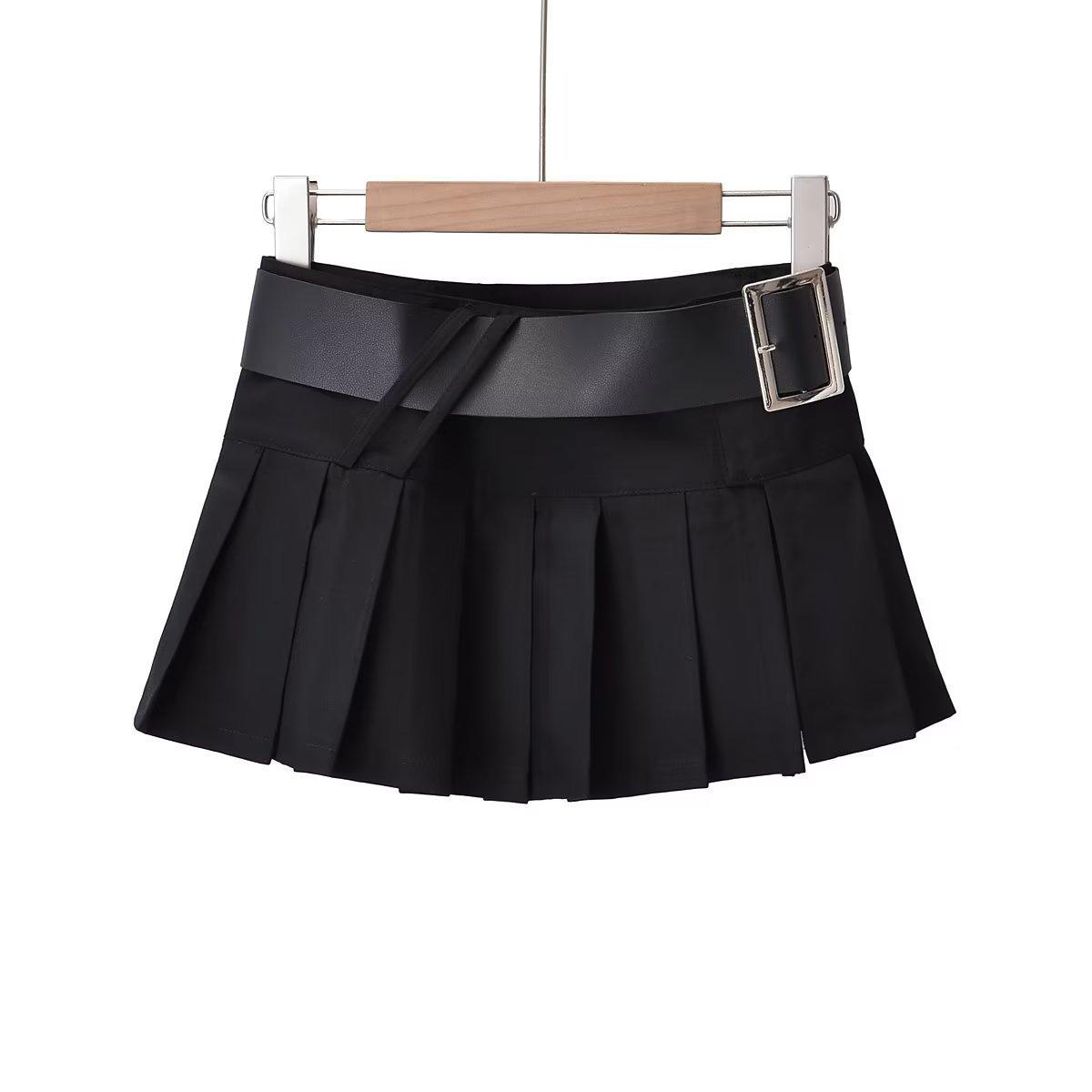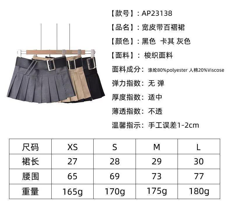 Verano 2023 Nuevo Estilo Europeo y Americano Falda Plisada con Cinturón Ancho para Mujer Falda Corta Antitransparente de Cintura Alta Adelgazante