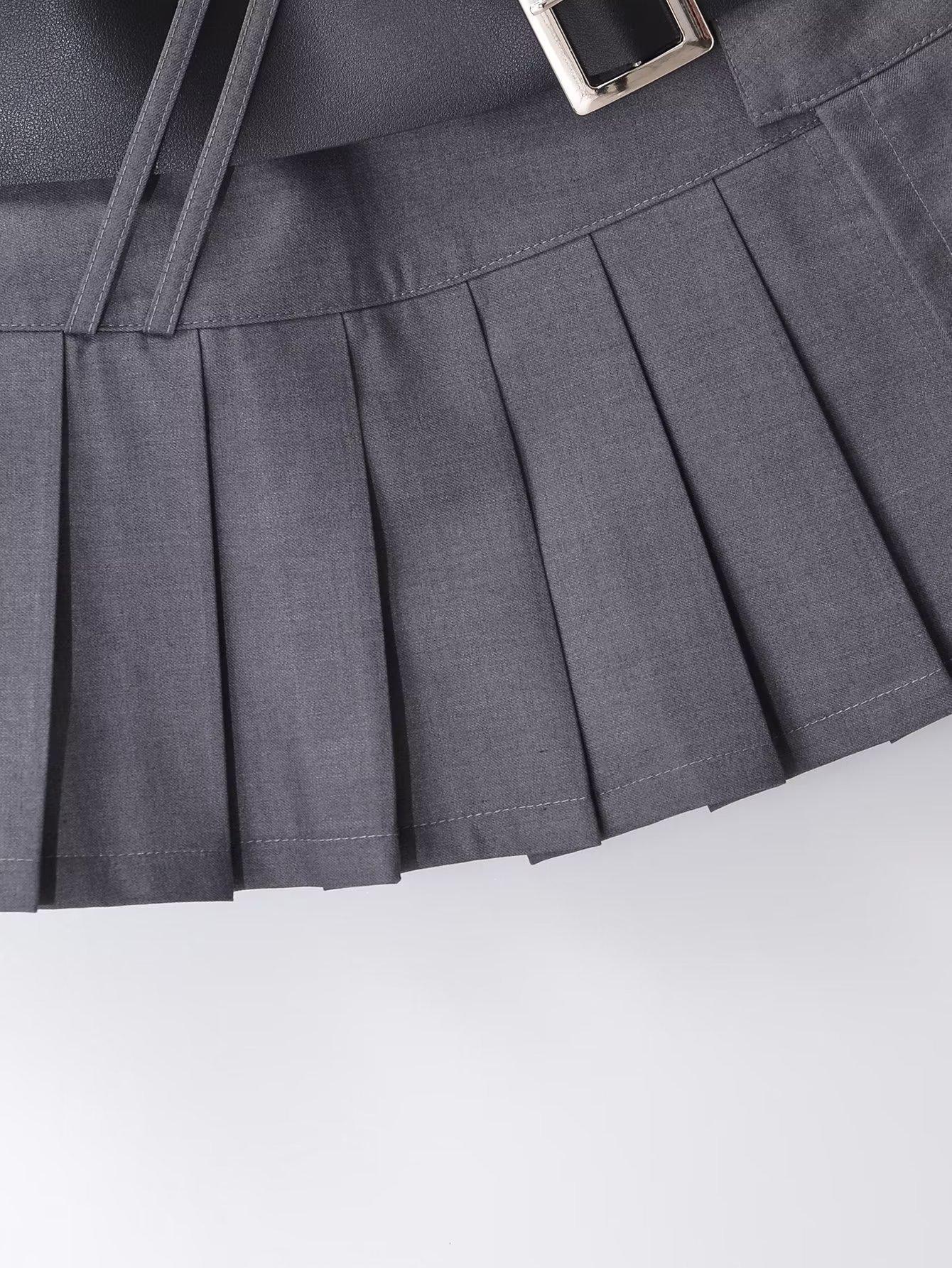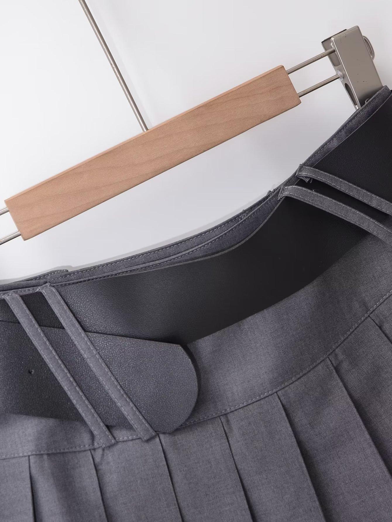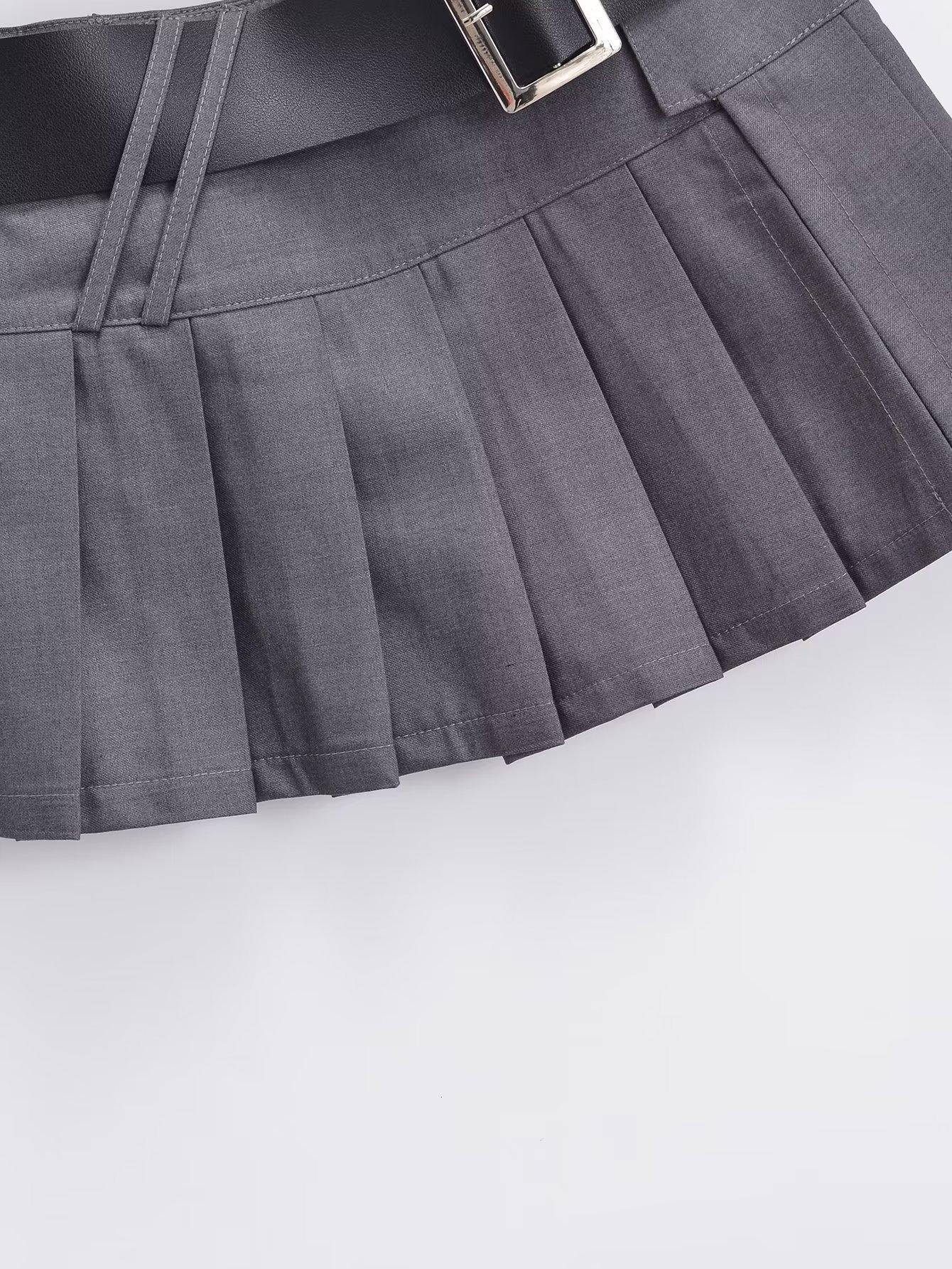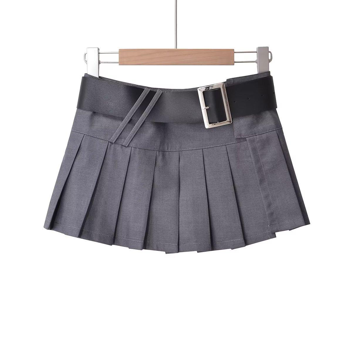 Verano 2023 Nuevo Estilo Europeo y Americano Falda Plisada con Cinturón Ancho para Mujer Falda Corta Antitransparente de Cintura Alta Adelgazante