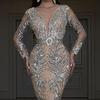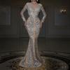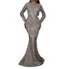 2025 Nuevo Vestido Europeo y Americano Transfronterizo Bronceado Manga Larga Slim Sexy Cola de Pez Largo Hasta el Piso Vestido de Noche
