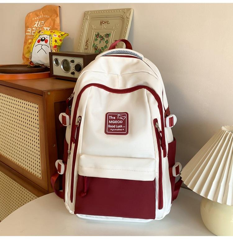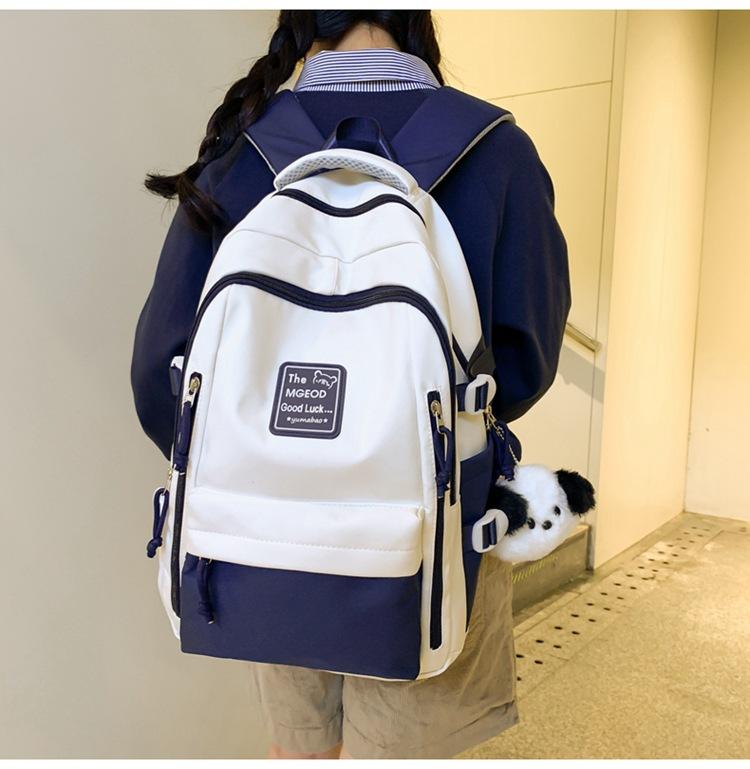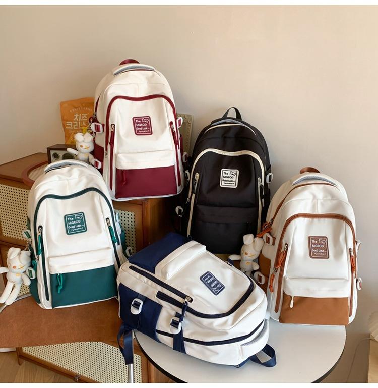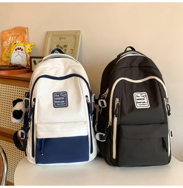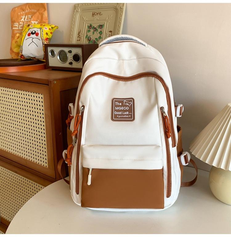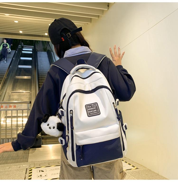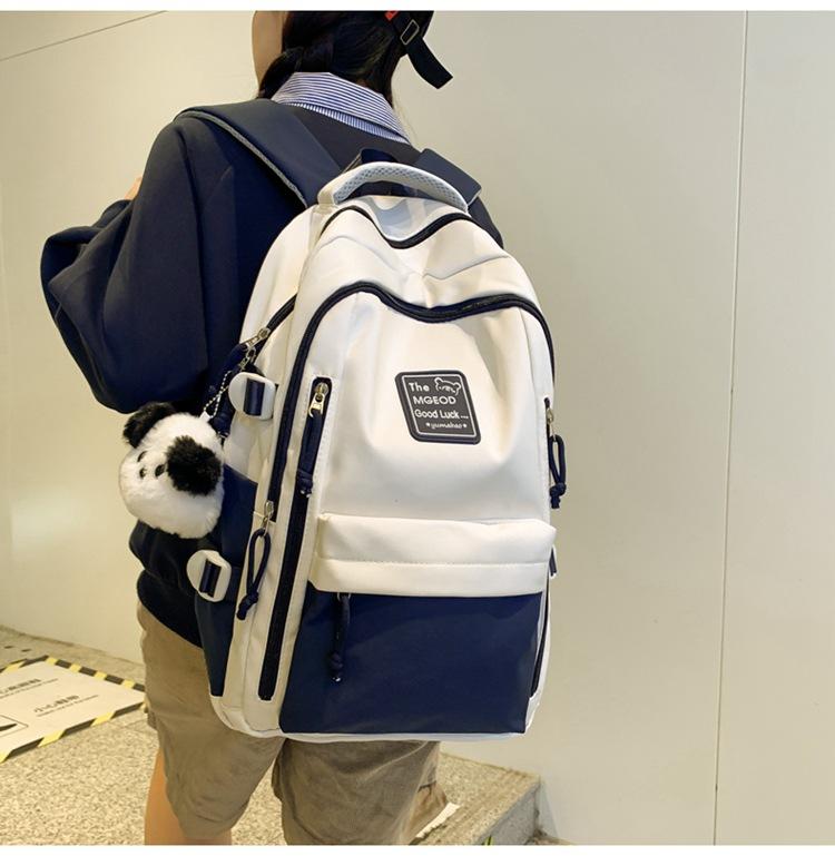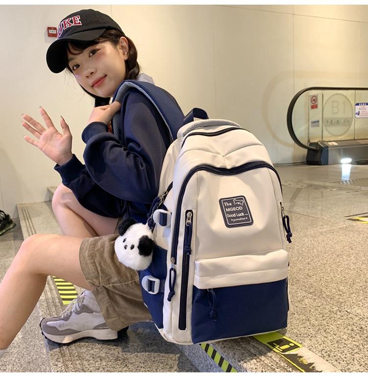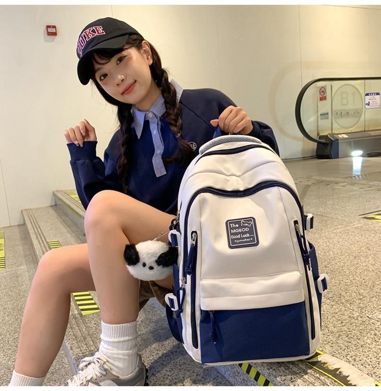 Mochila escolar para estudiante universitario, costuras en color contrastante, mochila para pareja 2024 nueva, multicapa para estudiantes de primaria y secundaria