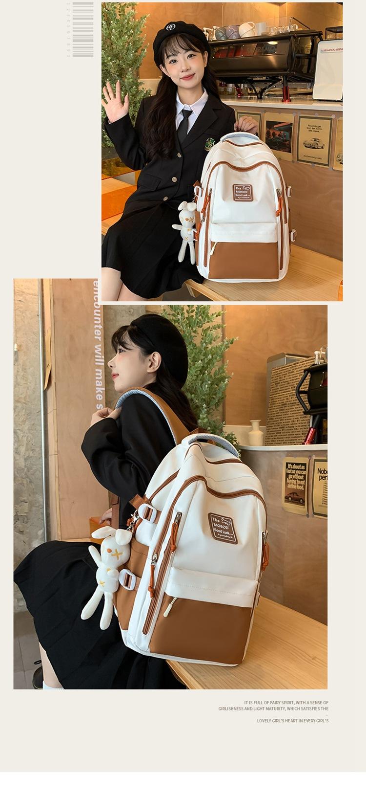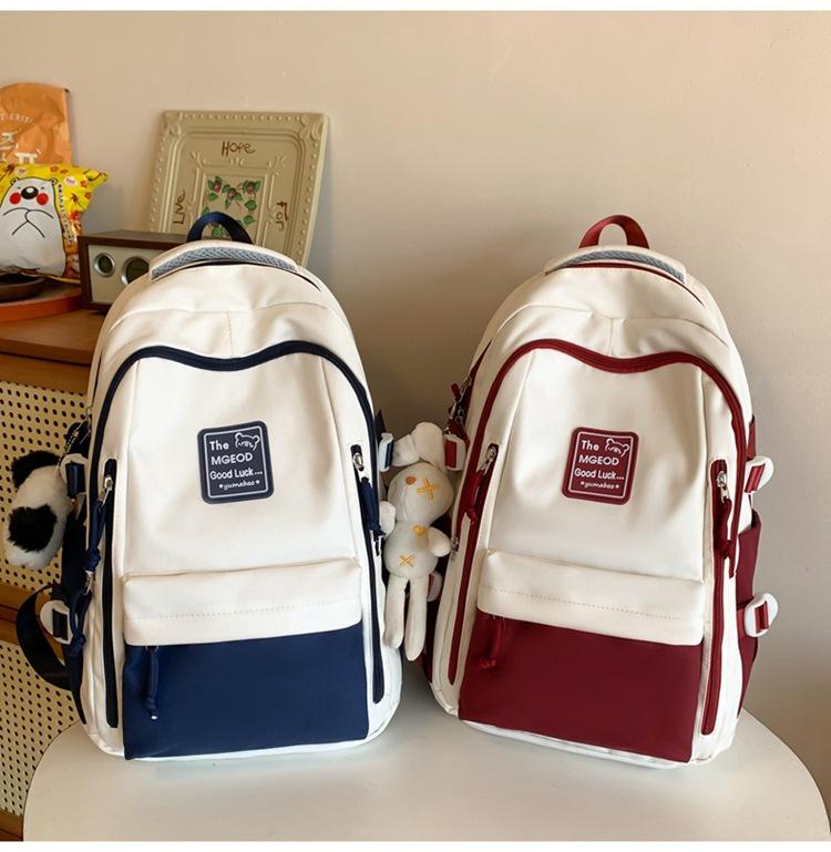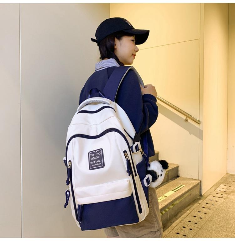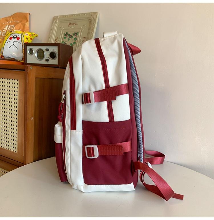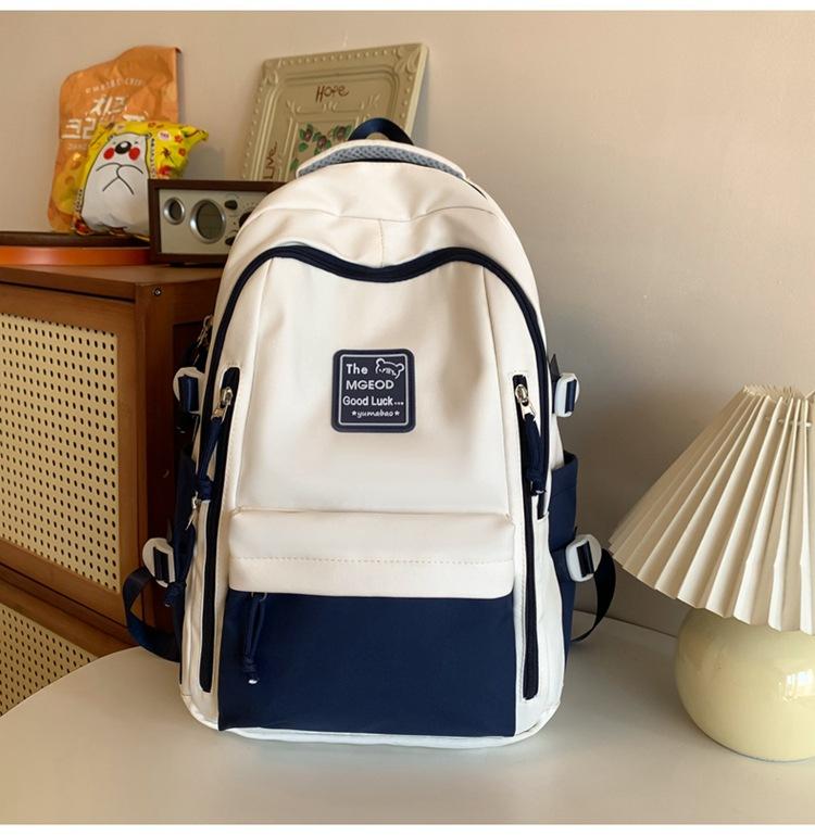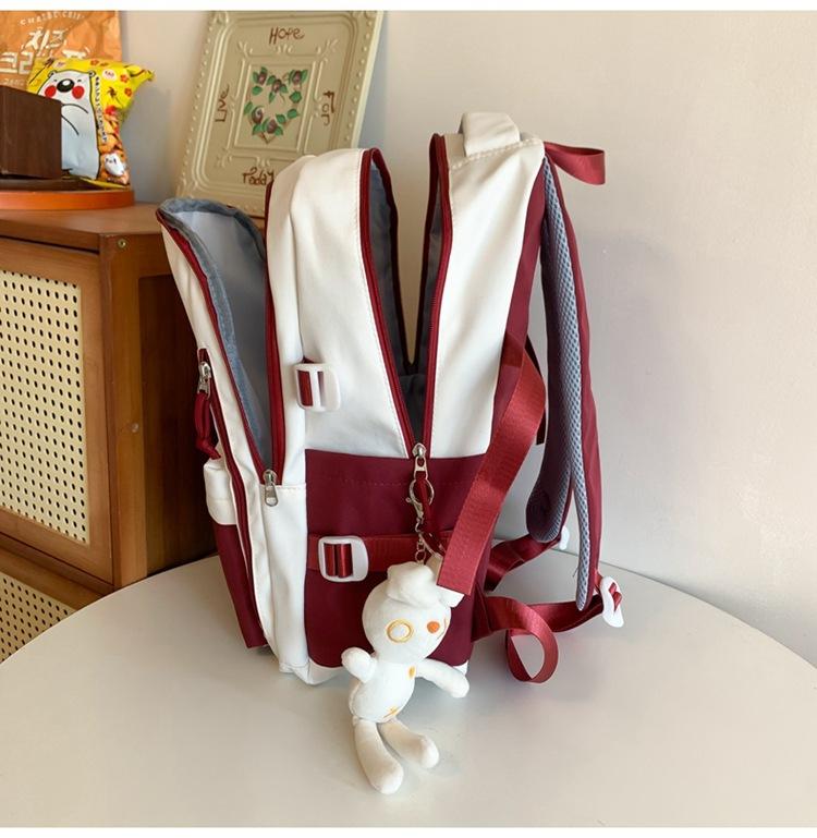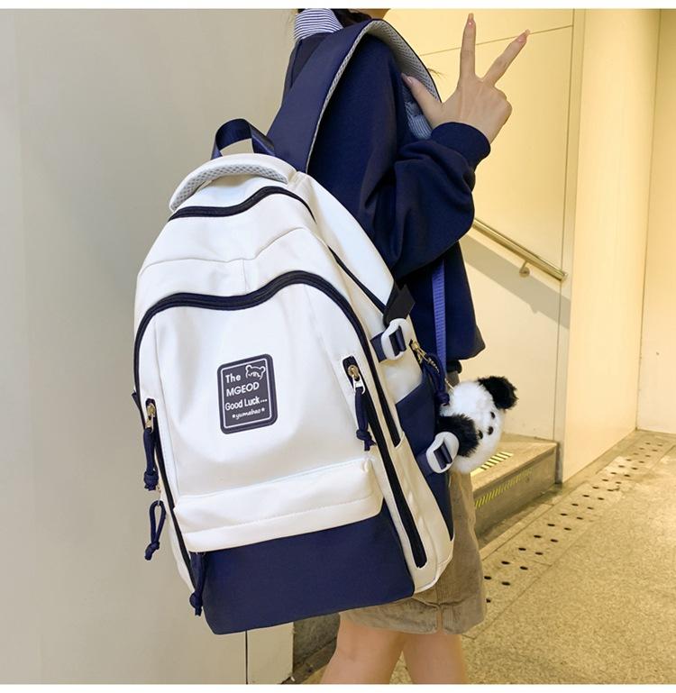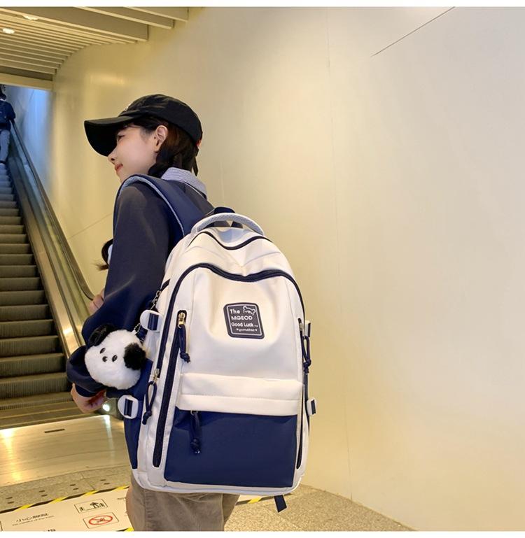 Mochila escolar para estudiante universitario, costuras en color contrastante, mochila para pareja 2024 nueva, multicapa para estudiantes de primaria y secundaria
