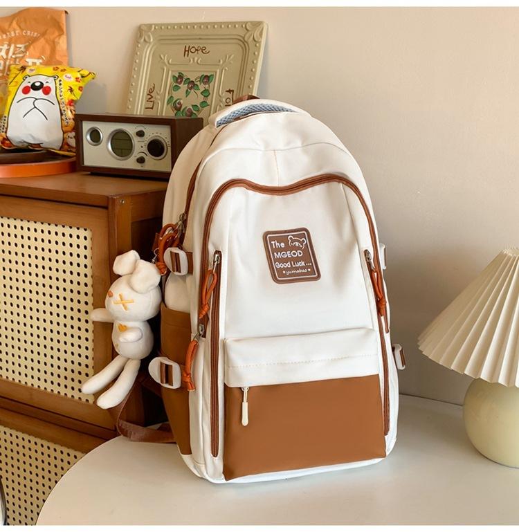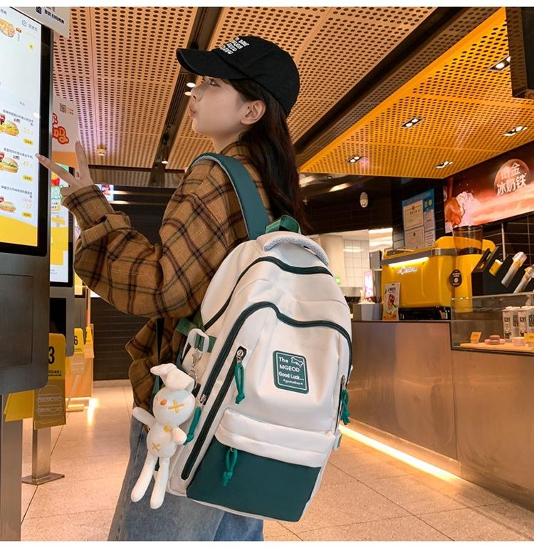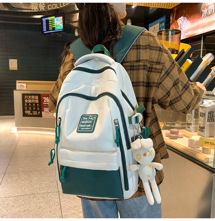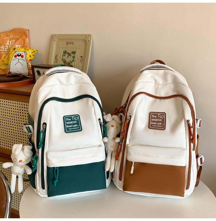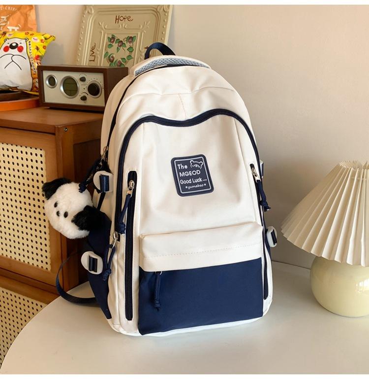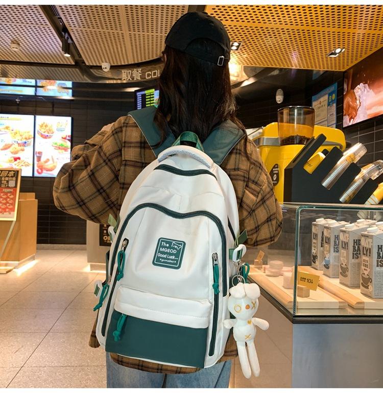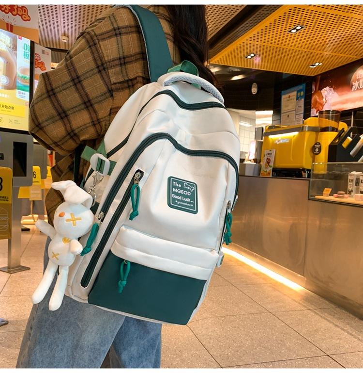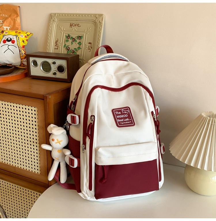 Mochila escolar para estudiante universitario, costuras en color contrastante, mochila para pareja 2024 nueva, multicapa para estudiantes de primaria y secundaria