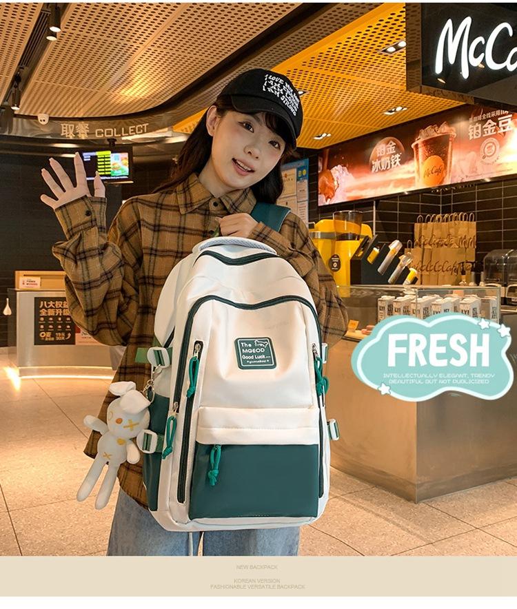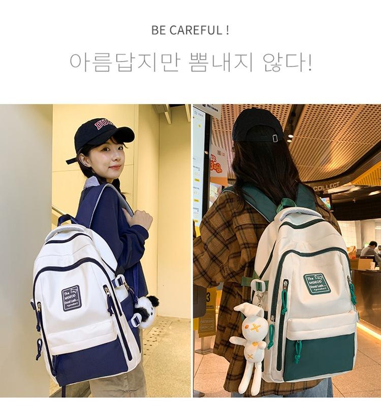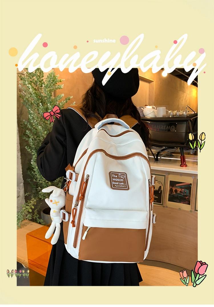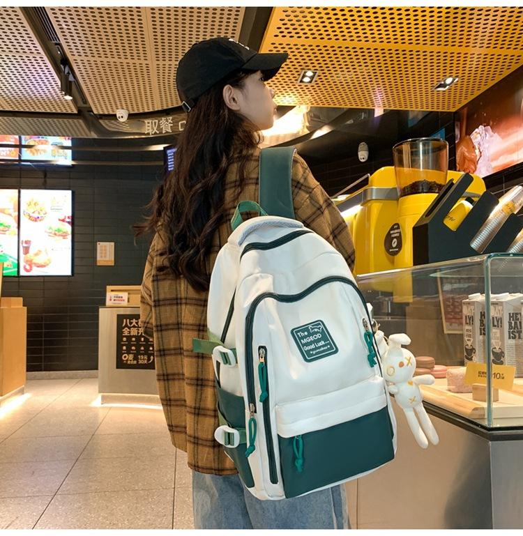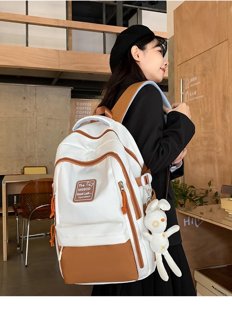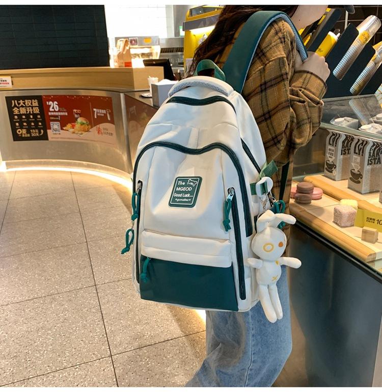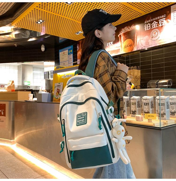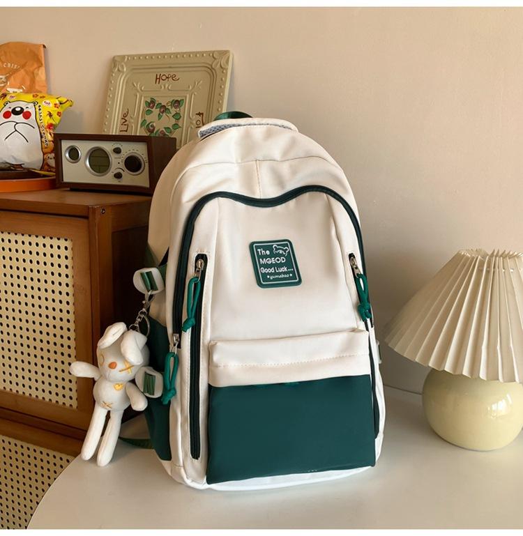 Mochila escolar para estudiante universitario, costuras en color contrastante, mochila para pareja 2024 nueva, multicapa para estudiantes de primaria y secundaria