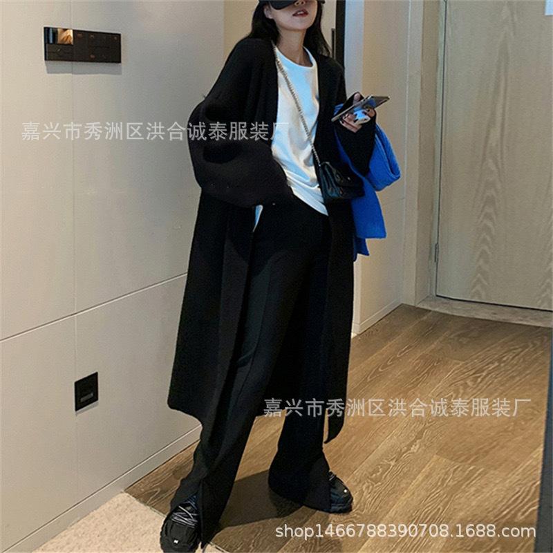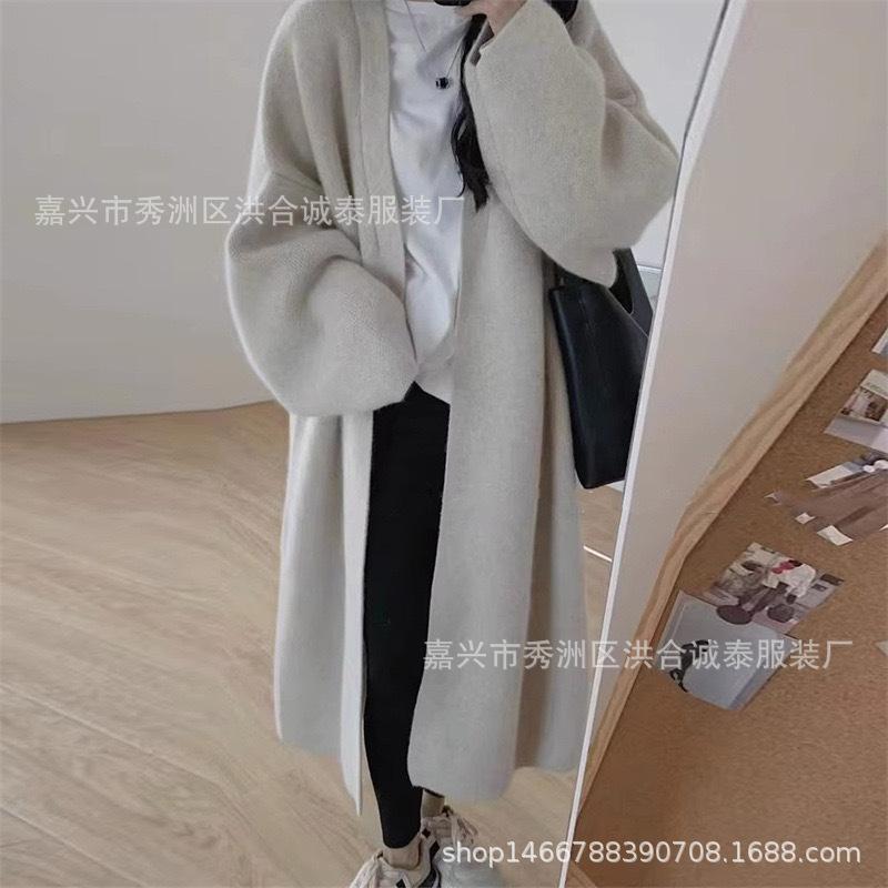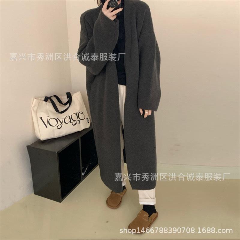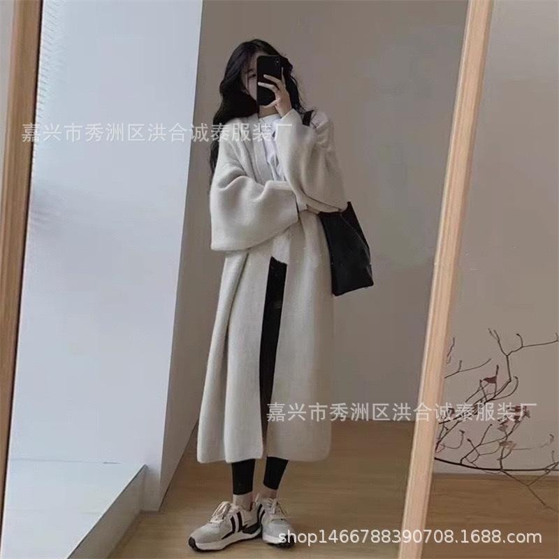 Abrigo suéter para mujer de alta calidad Estilo retro japonés estilo holgazán suelto largo medio 2023 otoño e invierno Nuevo cárdigan de punto