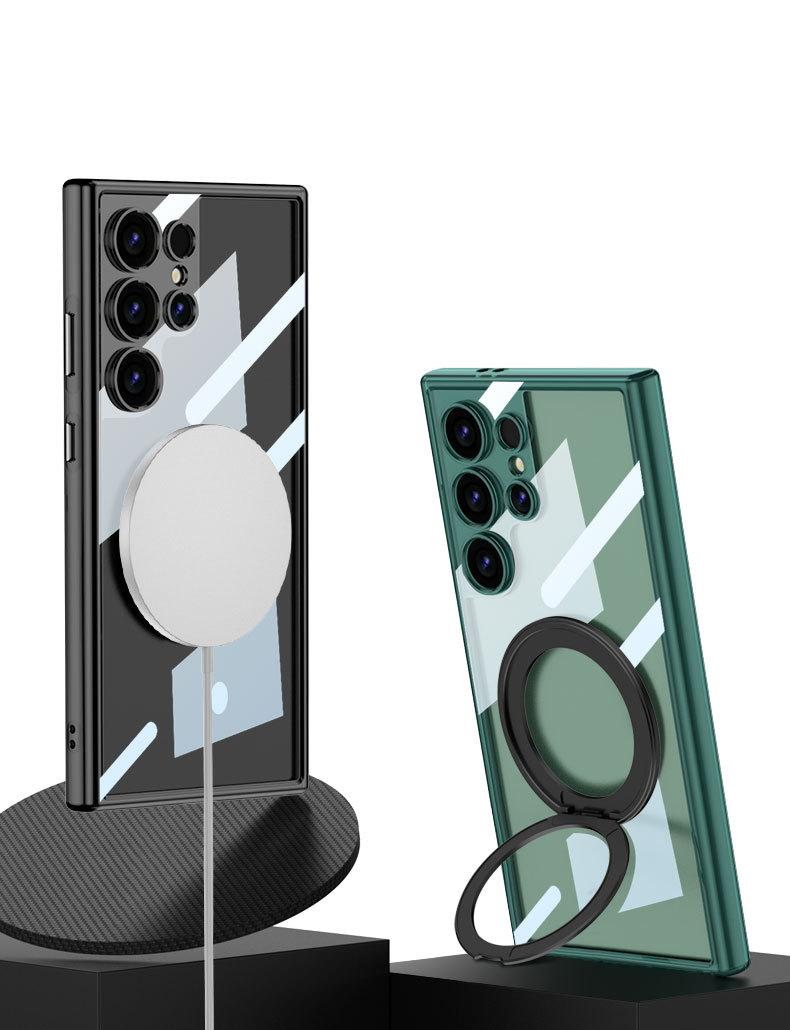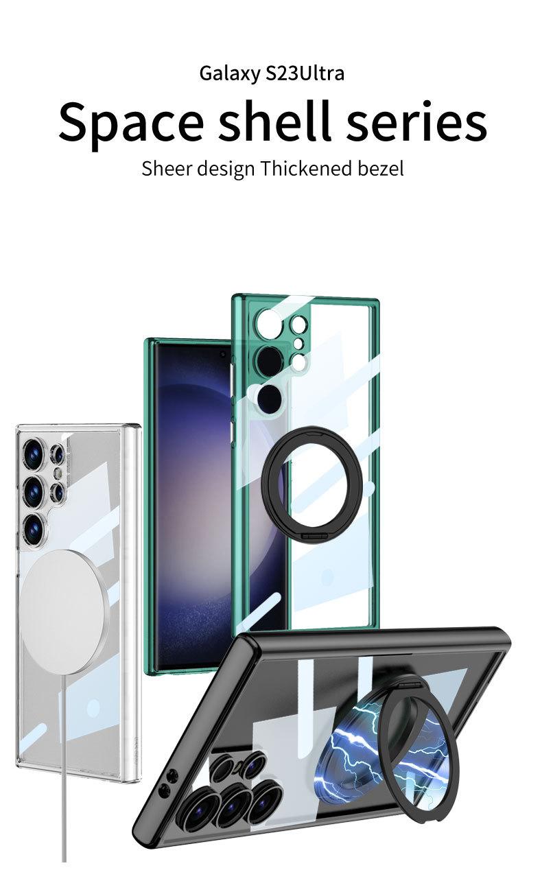 Adecuado para Funda de Teléfono Móvil Samsung S23Ultra, Soporte Transparente S23Ultra, Cubierta Protectora para Carga Inalámbrica Magnética, Funda Espacial