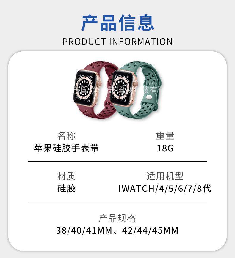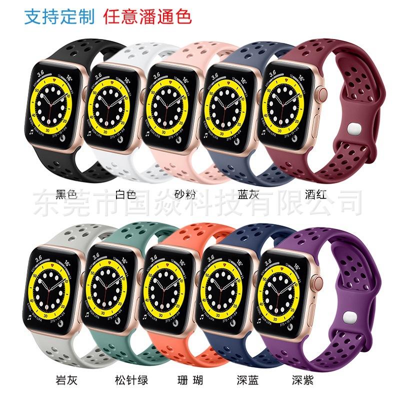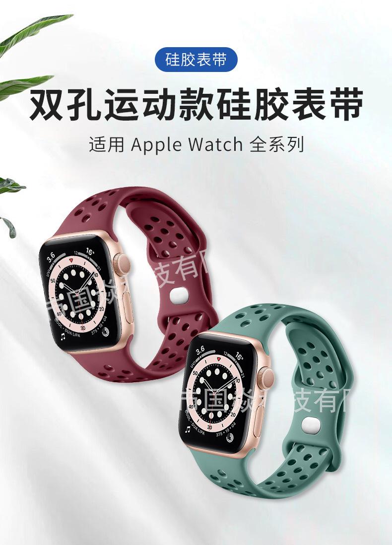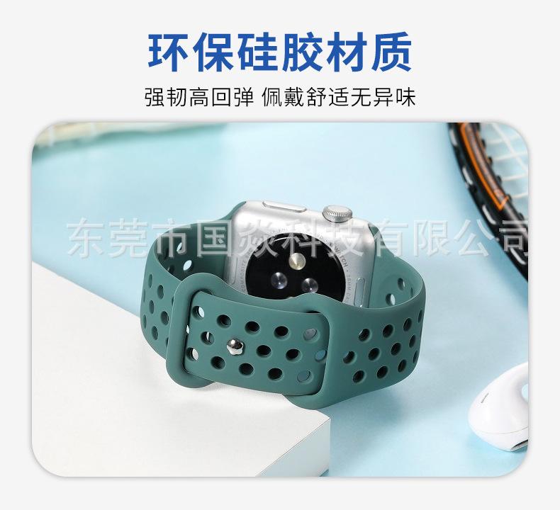 Adecuado para iWatch Correa Apple Watch Color Puro Doble Agujero Correa de Reloj de Silicona Deportiva Hebilla de 8 Caracteres Correa de Reloj Deportivo