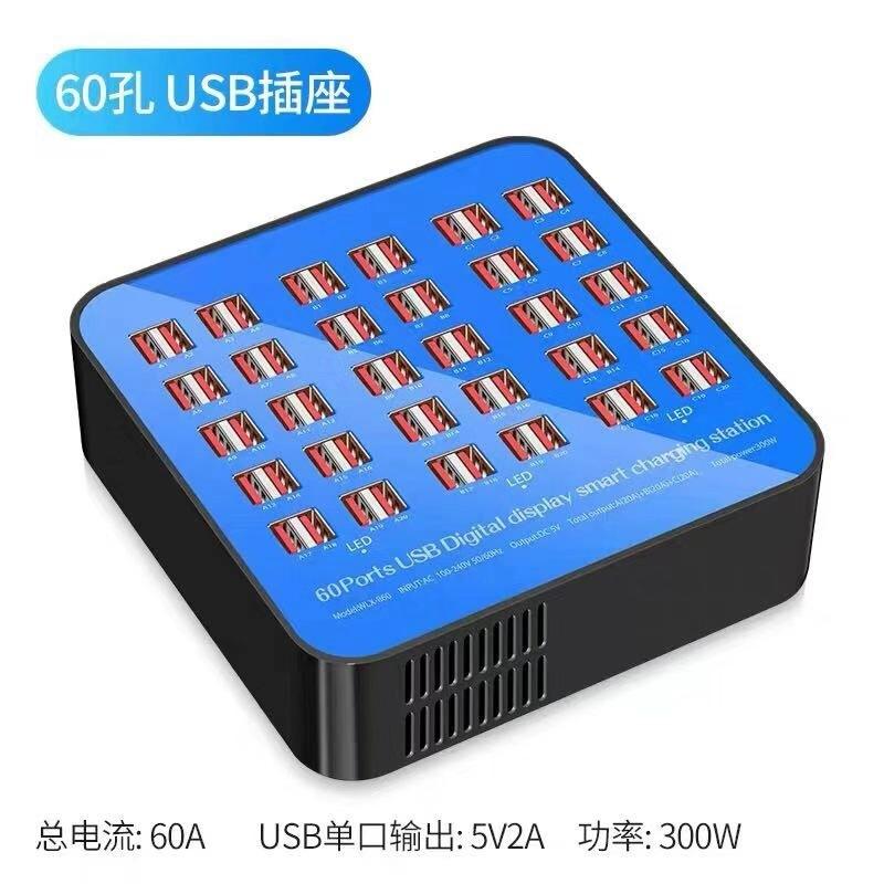 Cargador USB Multipuerto de 60 Puertos de Alta Potencia 300W con Múltiples Ranuras Cargador de Estudio Cargador de Escritorio USB Multipuerto