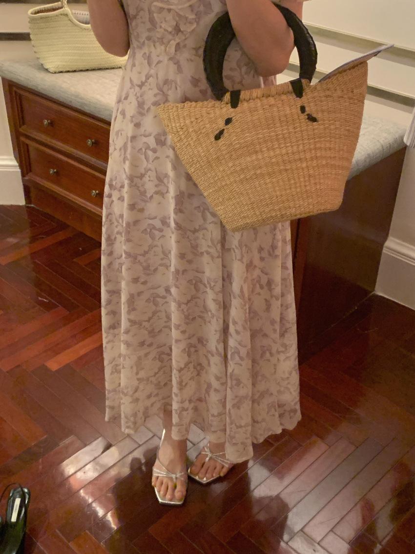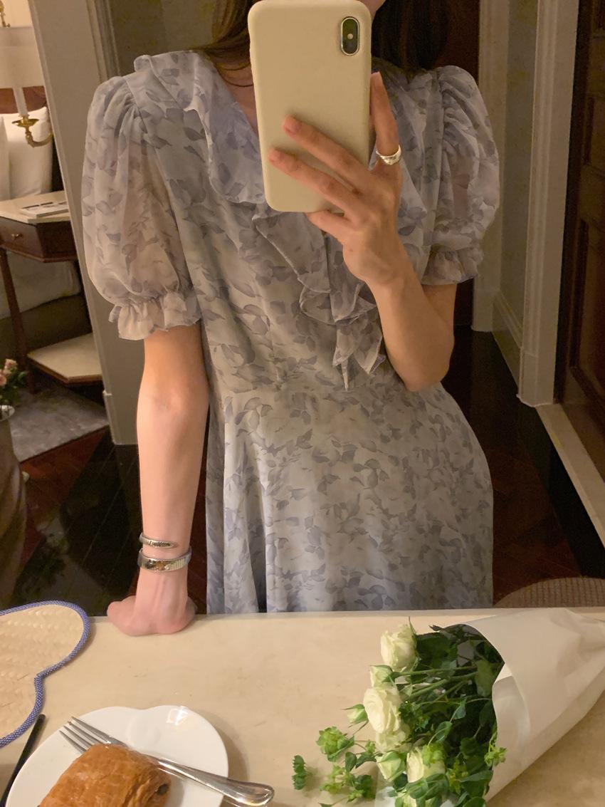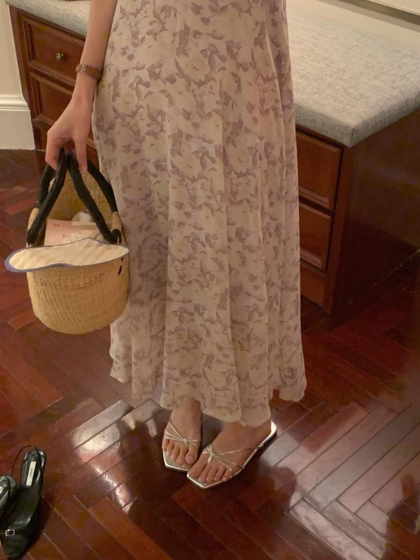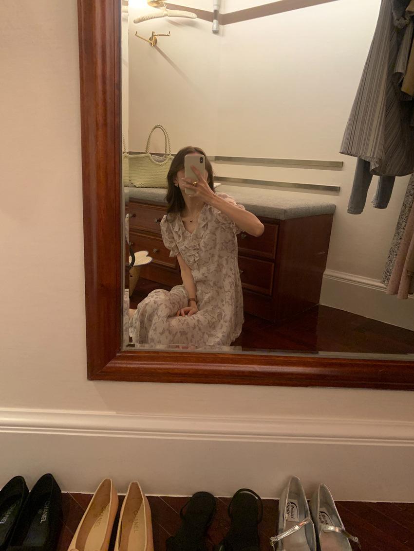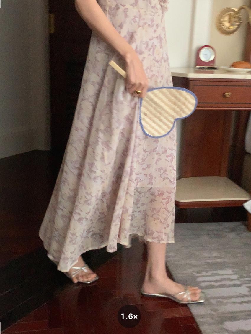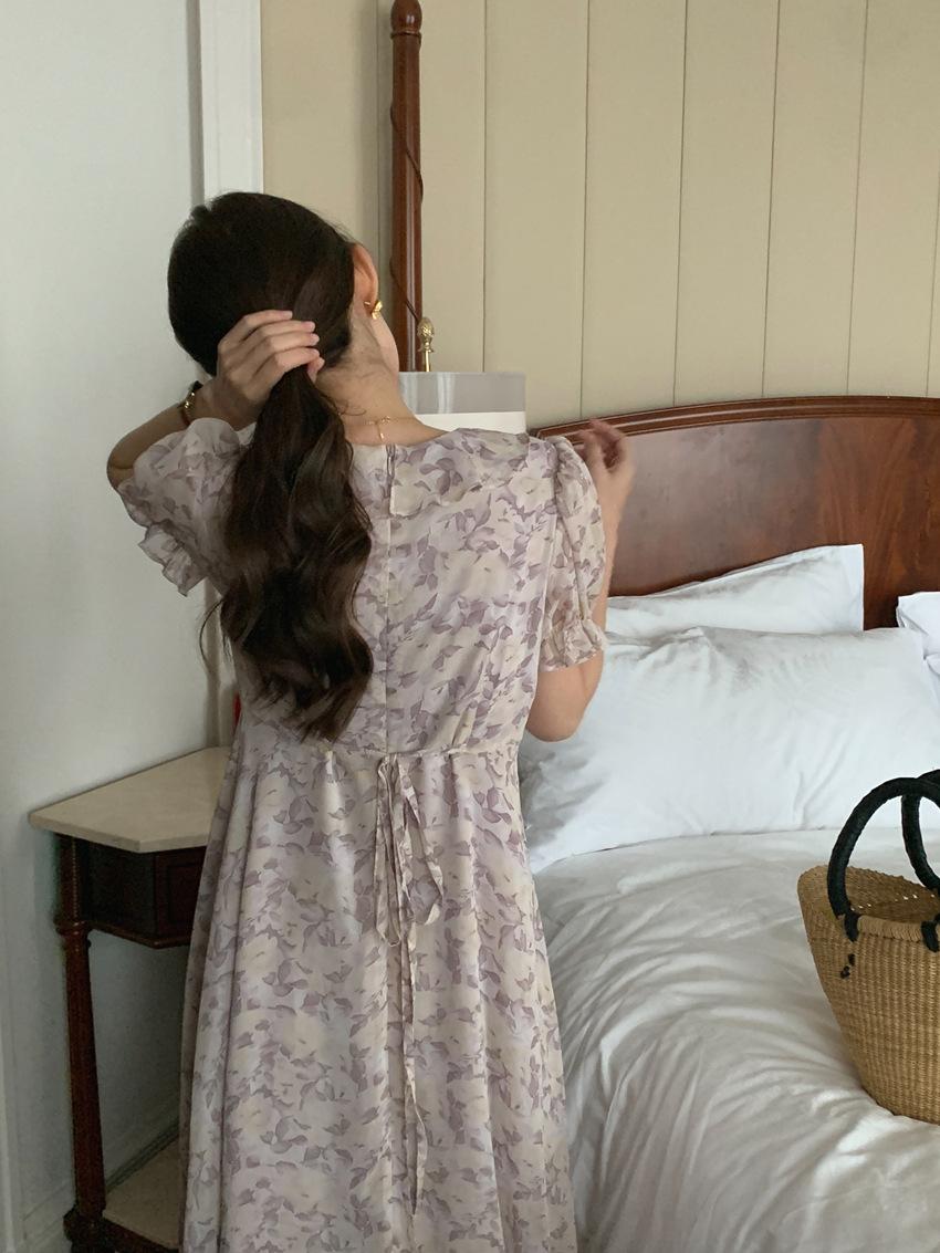 Vestido de gasa con cordones y mangas abullonadas con cuello en V y estampado floral retro francés suave de tiro real, ropa de mujer nueva