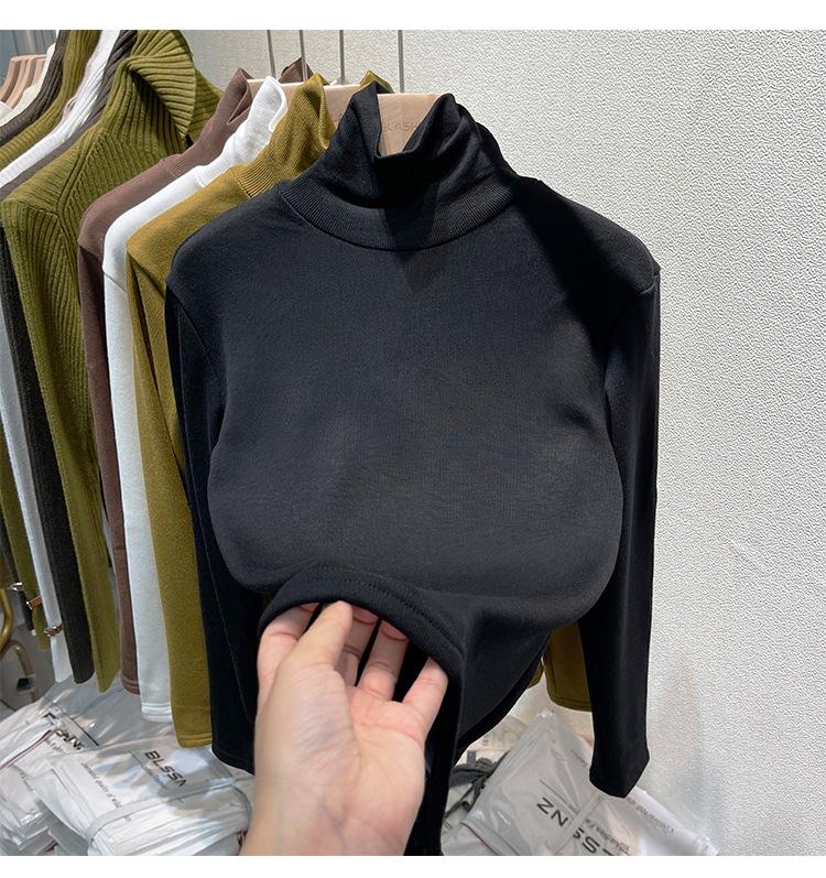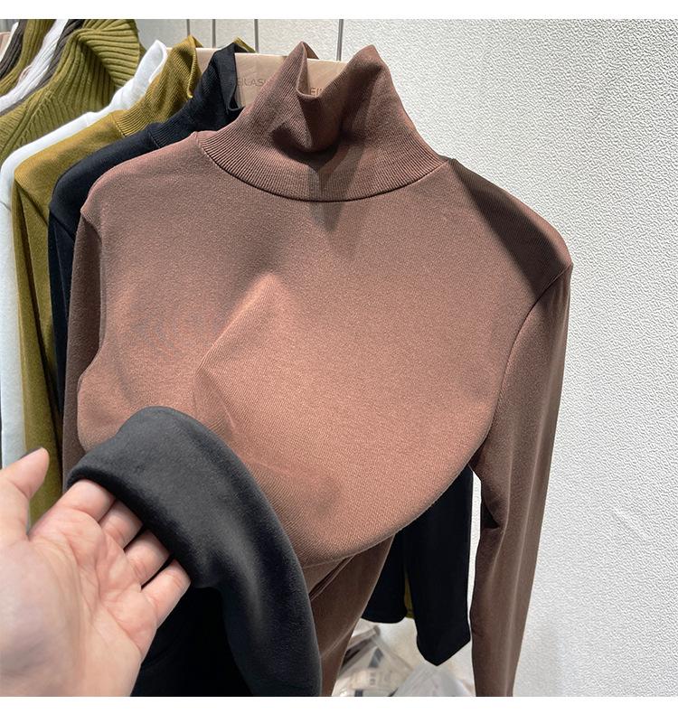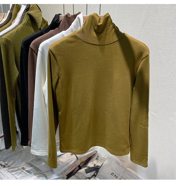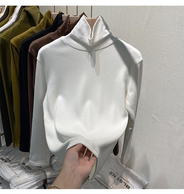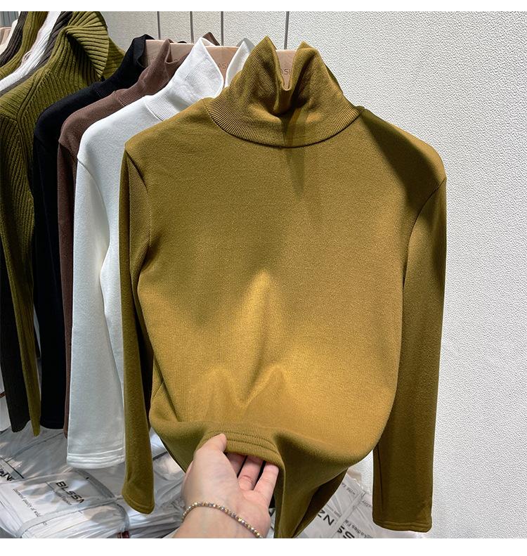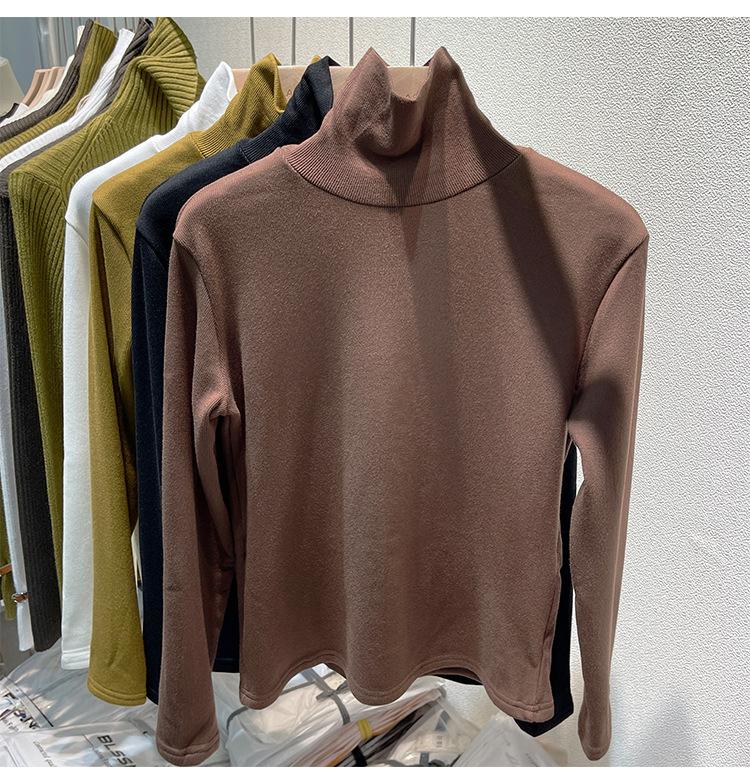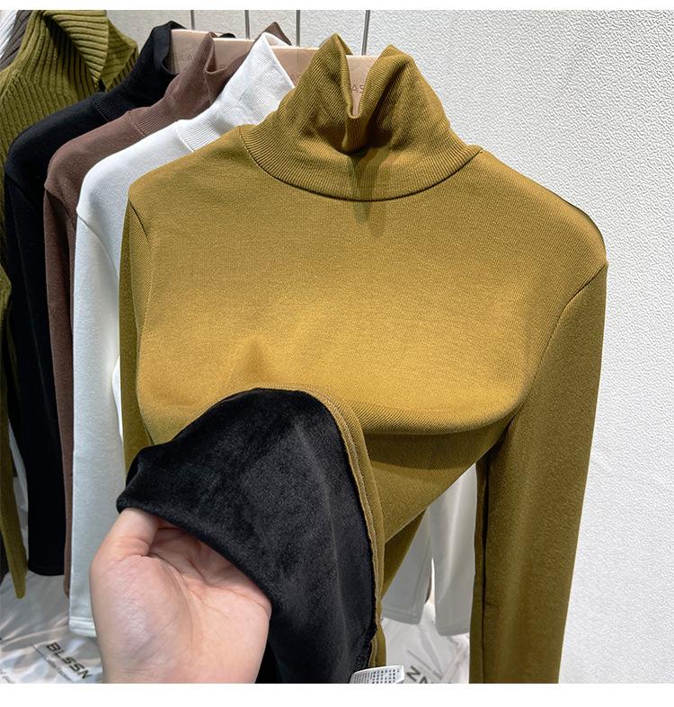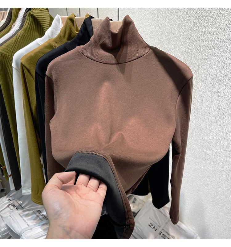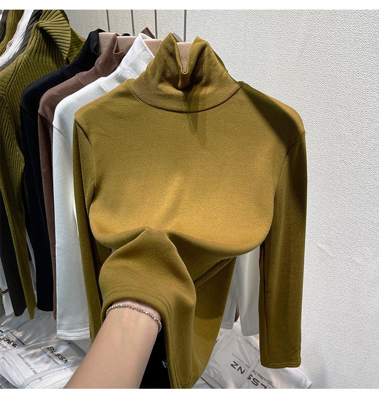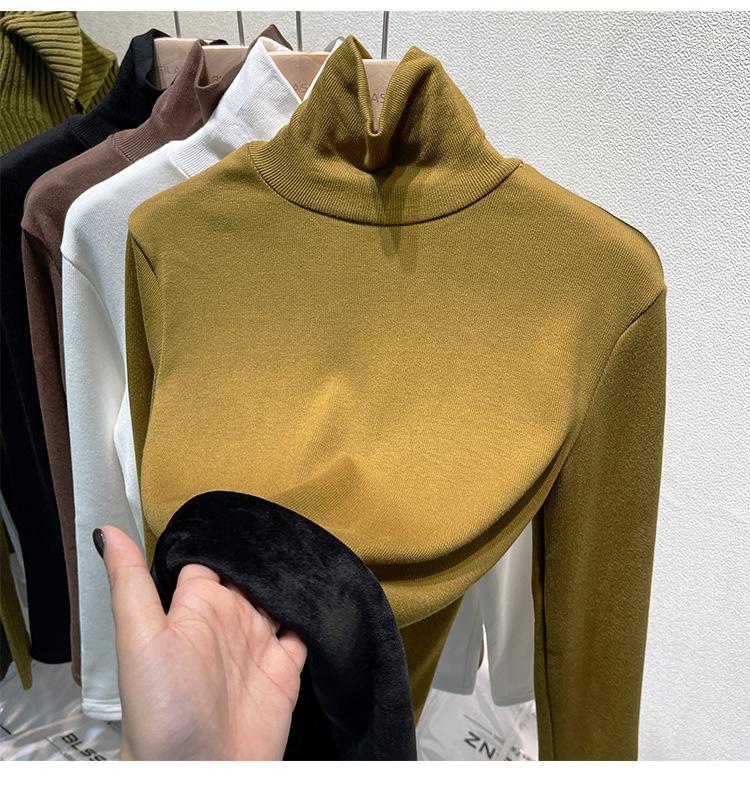Camisa de terciopelo con cuello alto para mujer, otoño e invierno 2023, nuevo estilo occidental, cálida, gruesa, de manga larga.