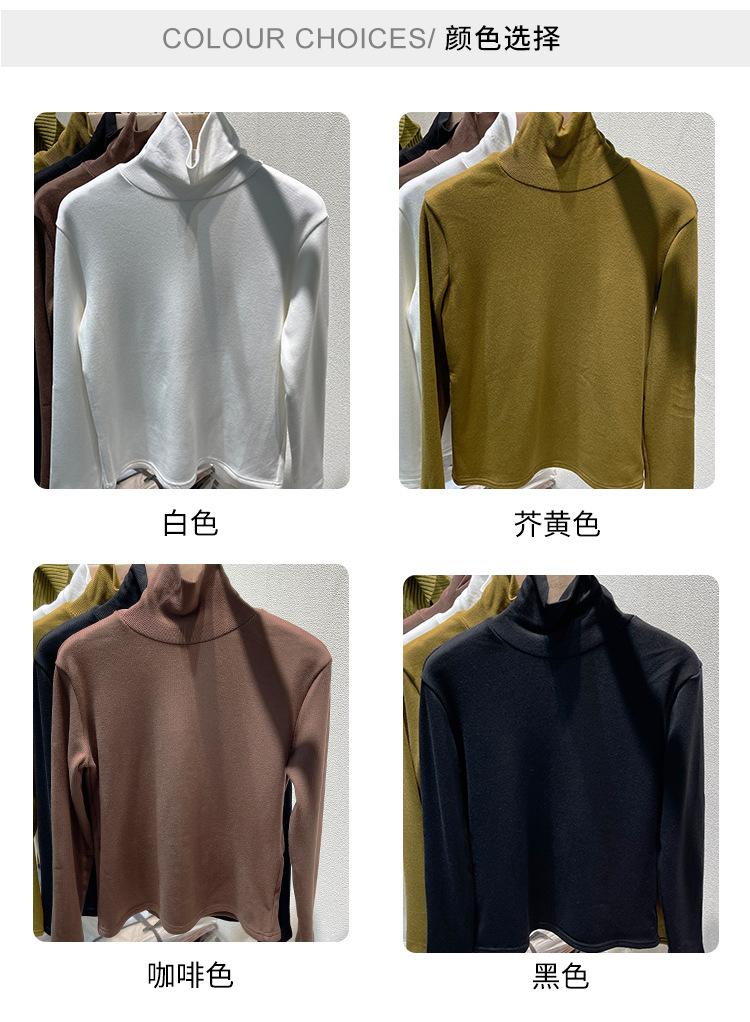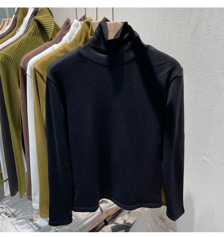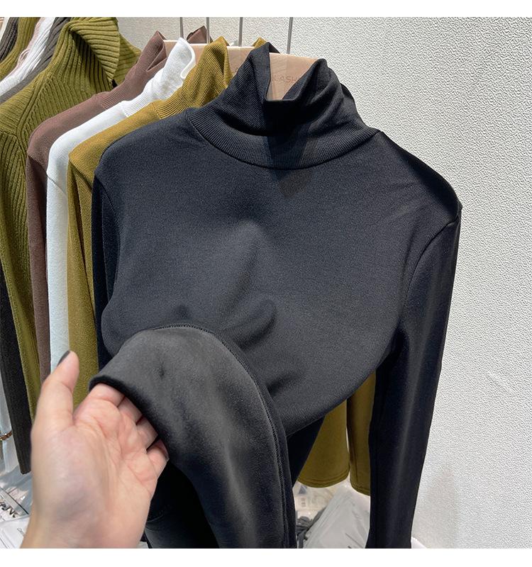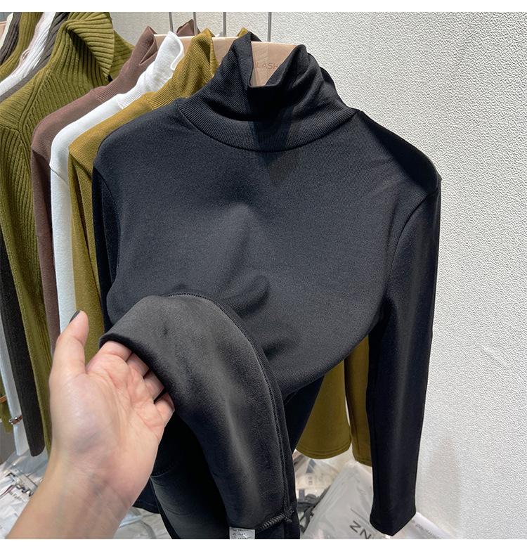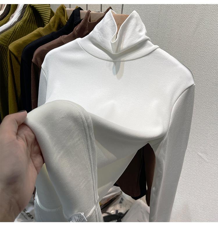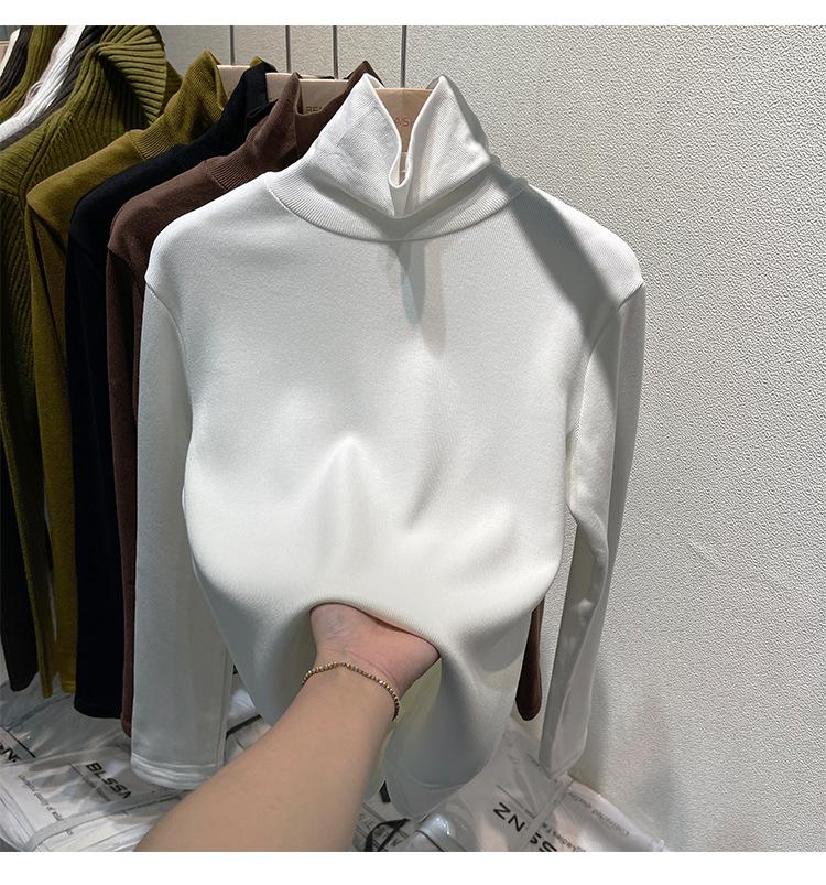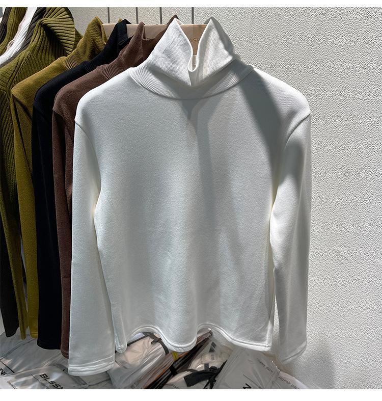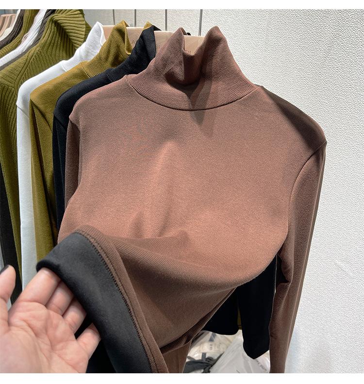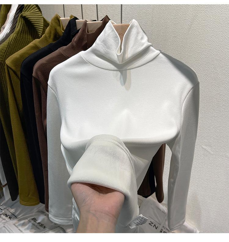 Camisa de terciopelo con cuello alto para mujer, otoño e invierno 2023, nuevo estilo occidental, cálida, gruesa, de manga larga.