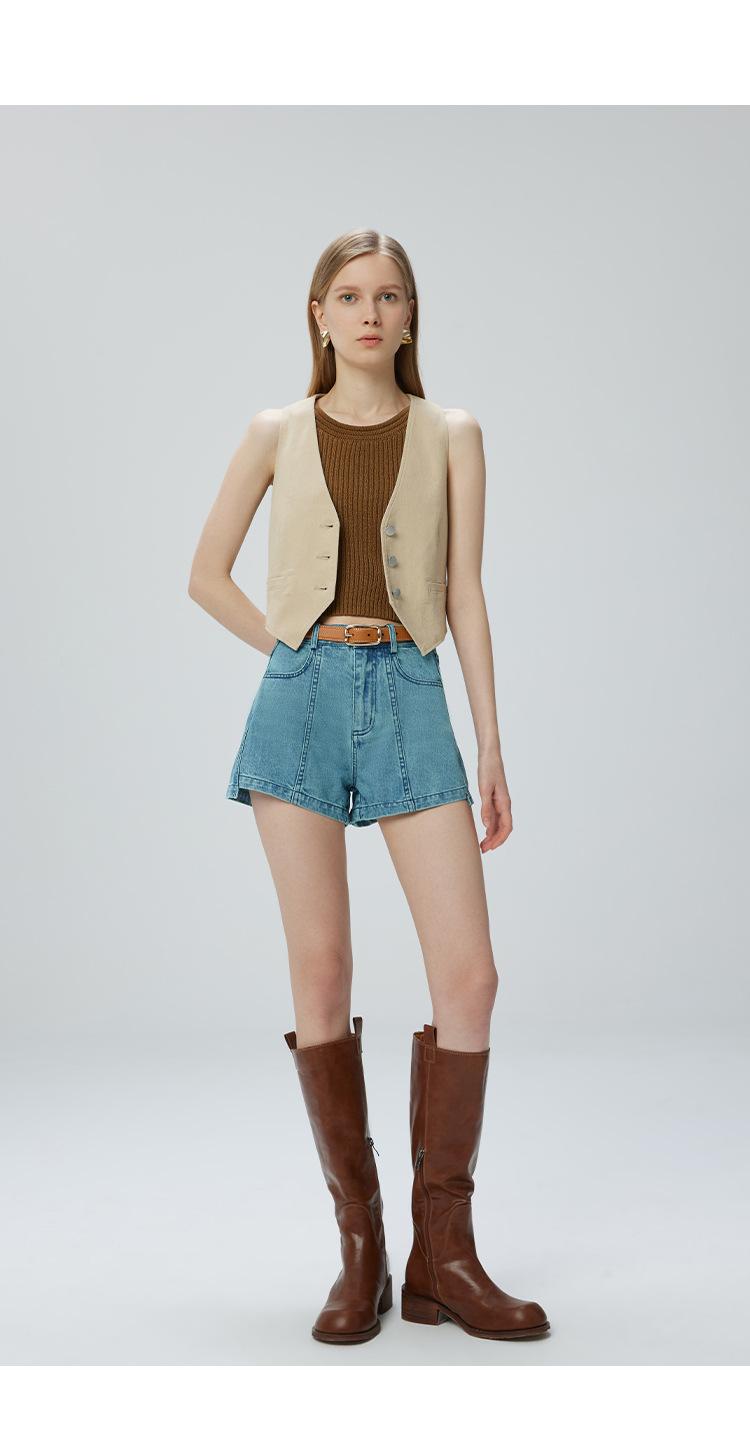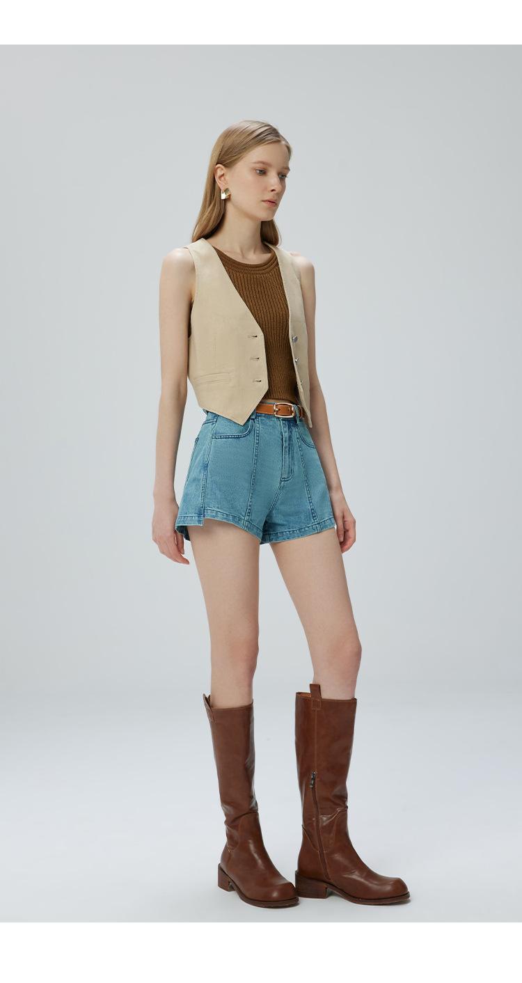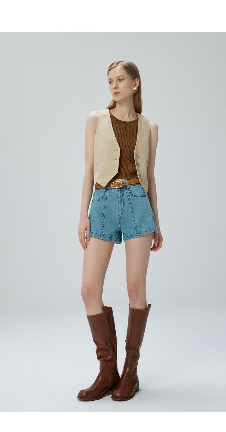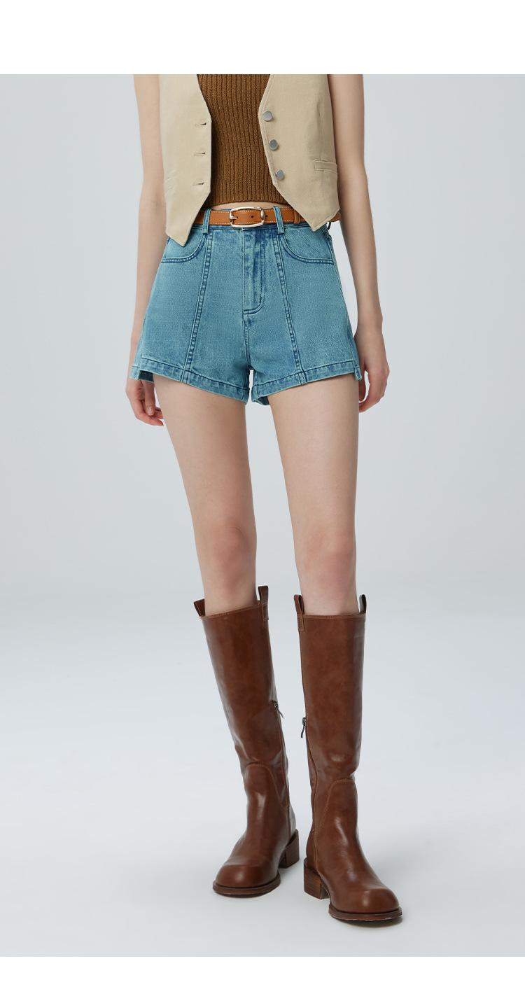 Pantalones cortos vaqueros para mujer, de Xinjiang, largos, de terciopelo y algodón, de cintura alta, con diseño retro, edición A, novedad de verano de 2024