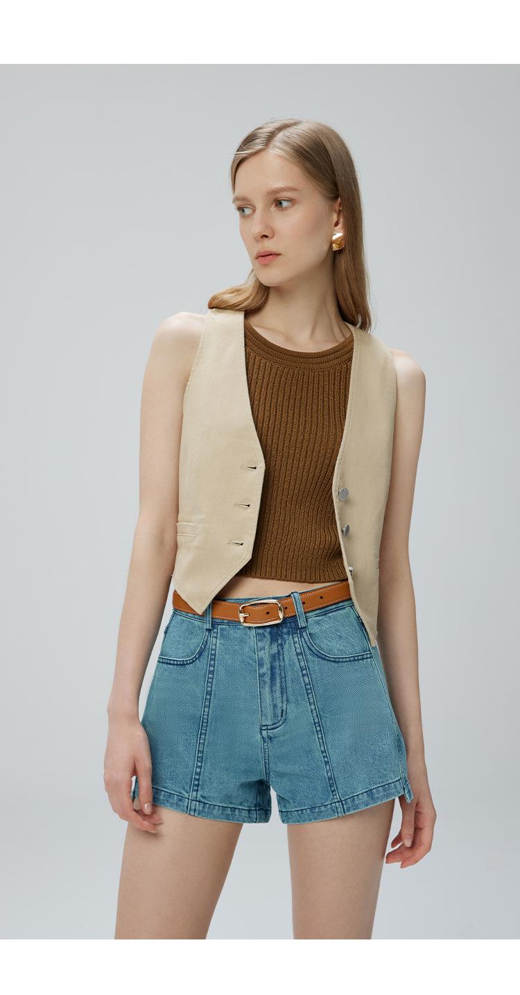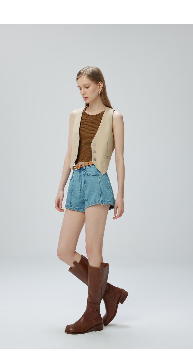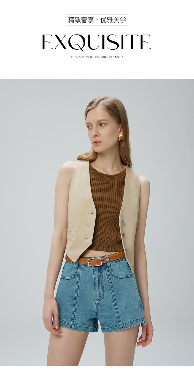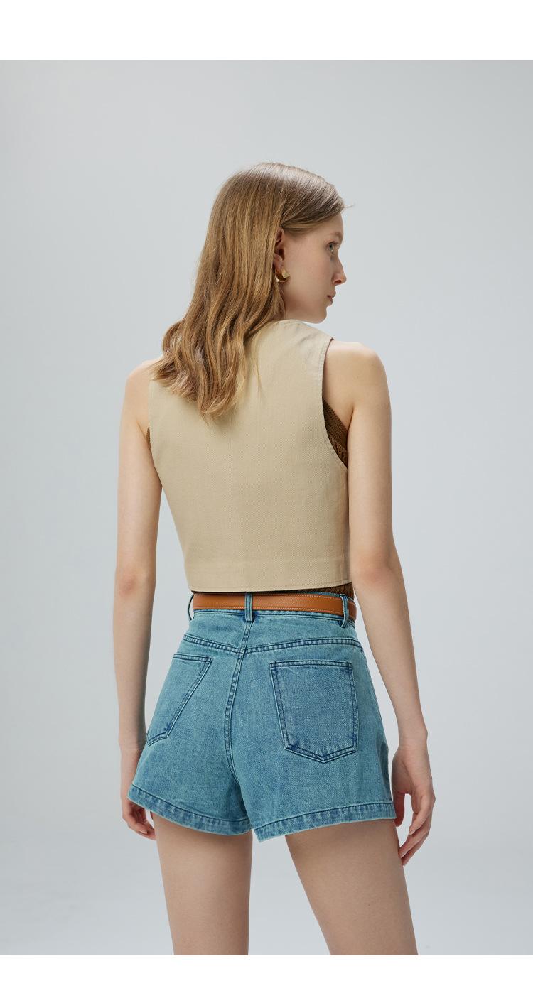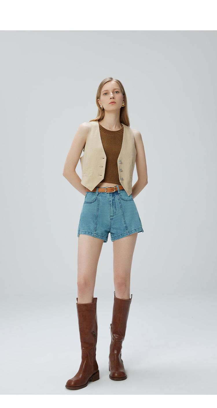 Pantalones cortos vaqueros para mujer, de Xinjiang, largos, de terciopelo y algodón, de cintura alta, con diseño retro, edición A, novedad de verano de 2024