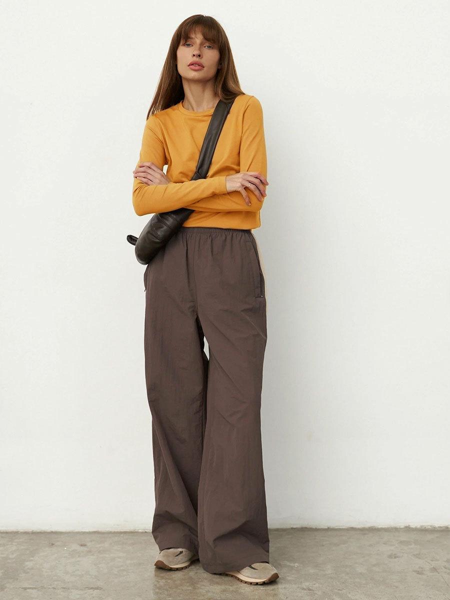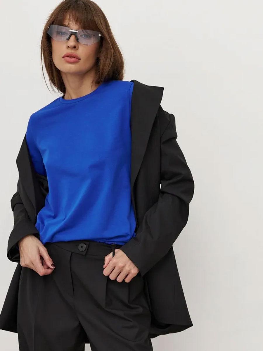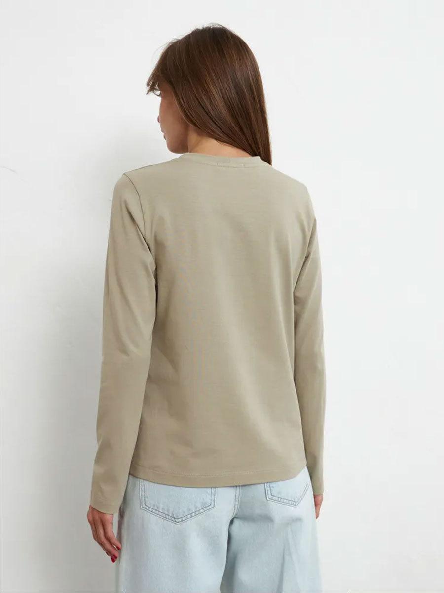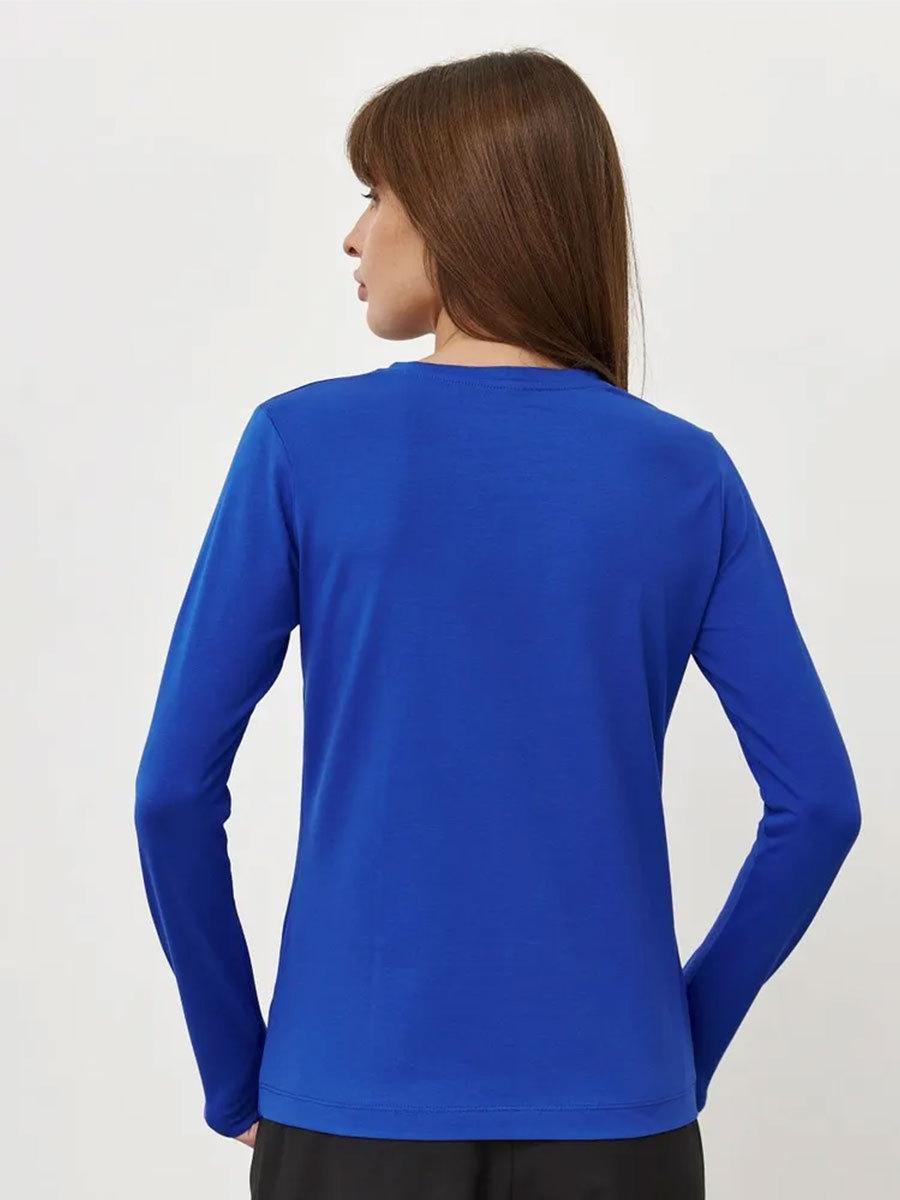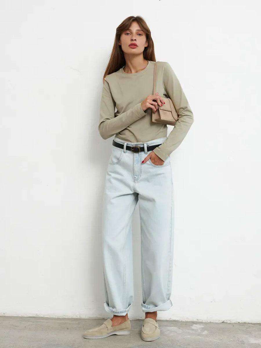 Playera de Algodón Puro Transfronteriza Europea y Americana 2025 Primavera Nueva Moda Femenina Casual Versátil Ropa de Trabajo Jersey Cuello Redondo Manga Larga