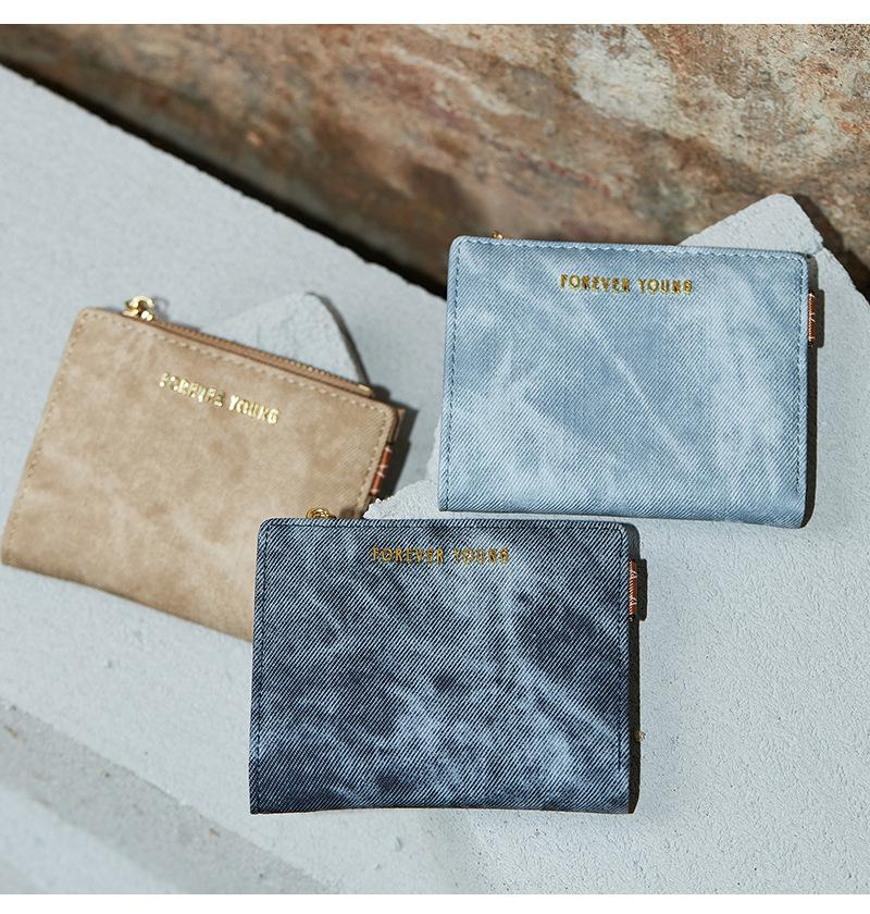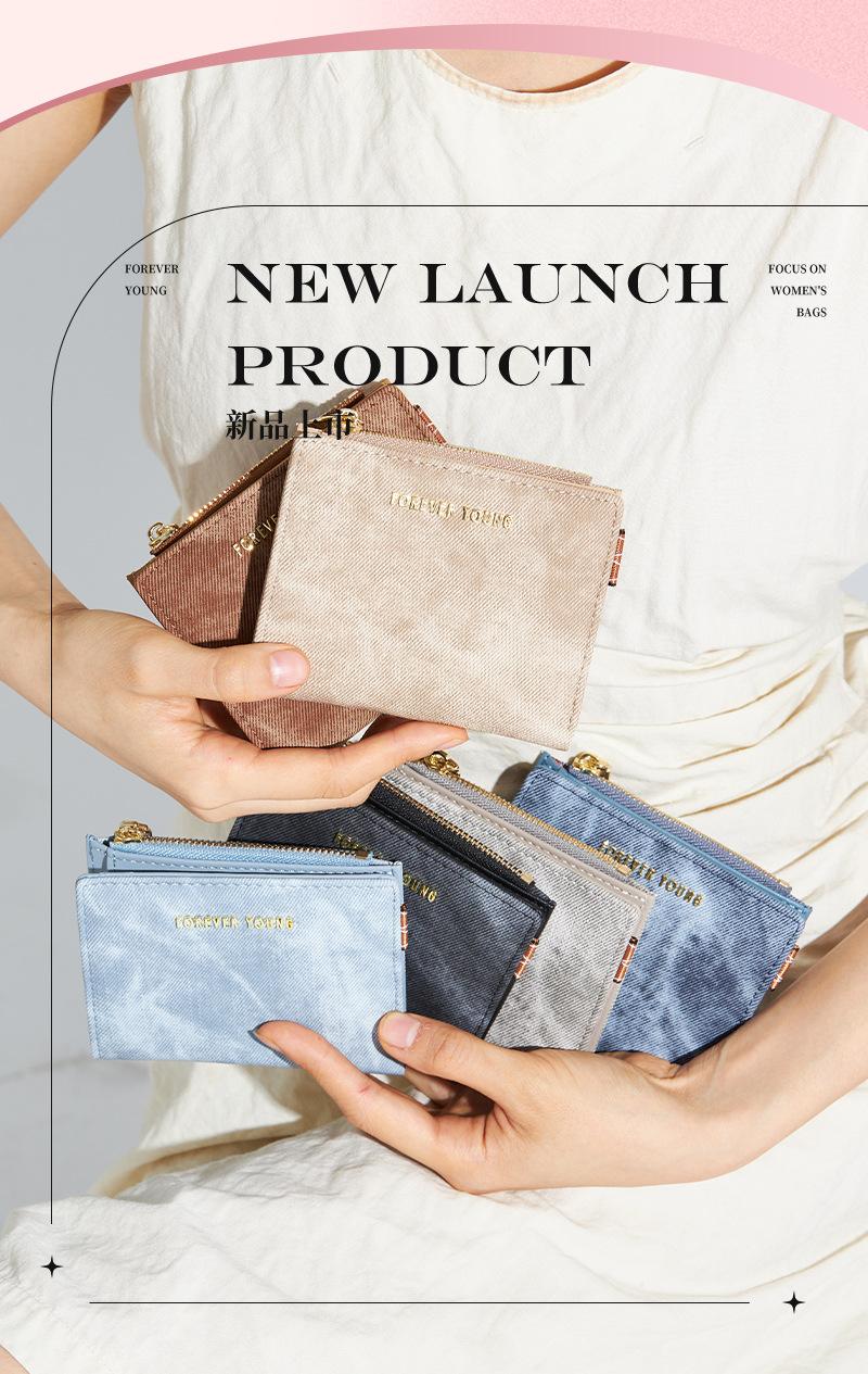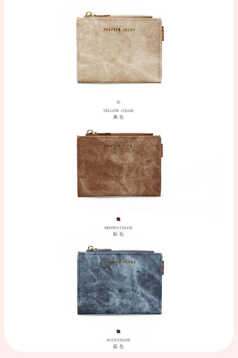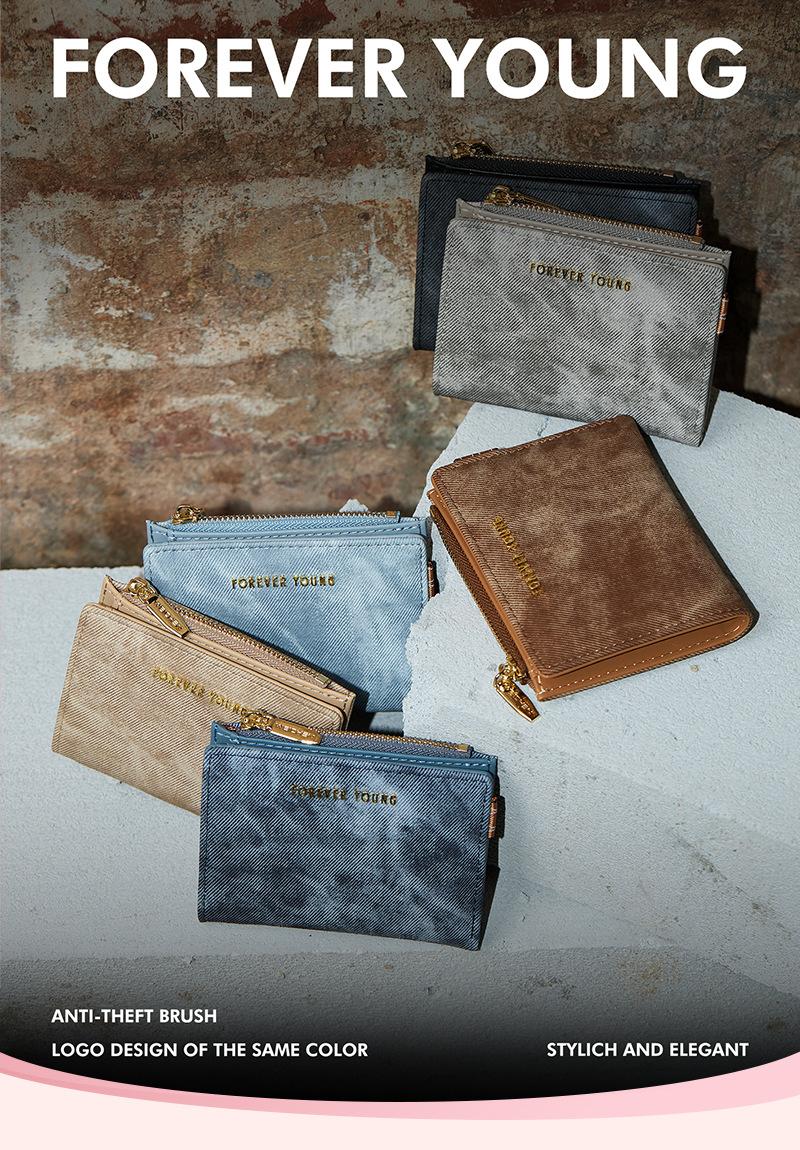 Cartera Forever Young para mujer, estilo coreano corto, monedero de alta calidad con dos pliegues y tarjetero de PU.